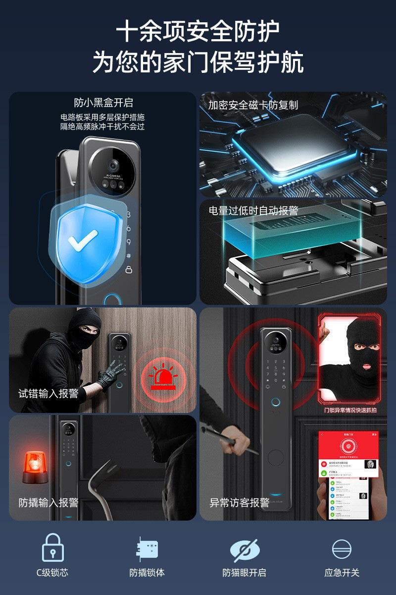 Cerradura de puerta inteligente con huella digital y cámara de vigilancia, cerradura de huella digital, cerradura de reconocimiento facial