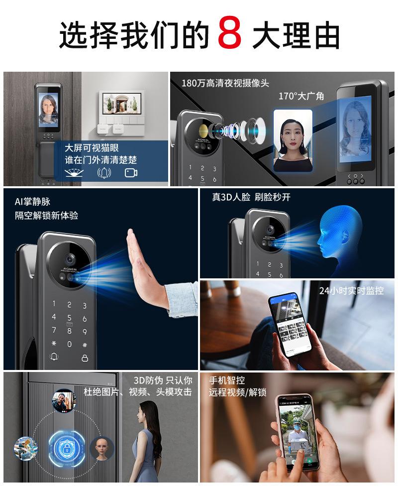 Cerradura de puerta inteligente con monitoreo Cerradura inteligente reconocimiento facial Cerradura de huella dactilar Vena palmar cerradura inteligente de doble puerta Cerradura de huella dactilar Hogar antirrobo cerradura electrónica inteligente Mirilla cerradura inteligente Cerradura de huella dactilar inteligente totalmente automática Cerradura de huella dactilar Cerradura inteligente de huella dactilar