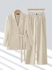 Conjunto de dos piezas para mujer, primavera, otoño e invierno, nuevo traje informal profesional rosa de manga larga con cuello pequeño, chaqueta y pantalones anchos.