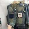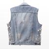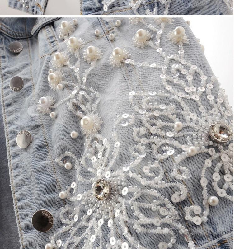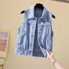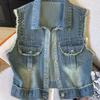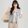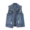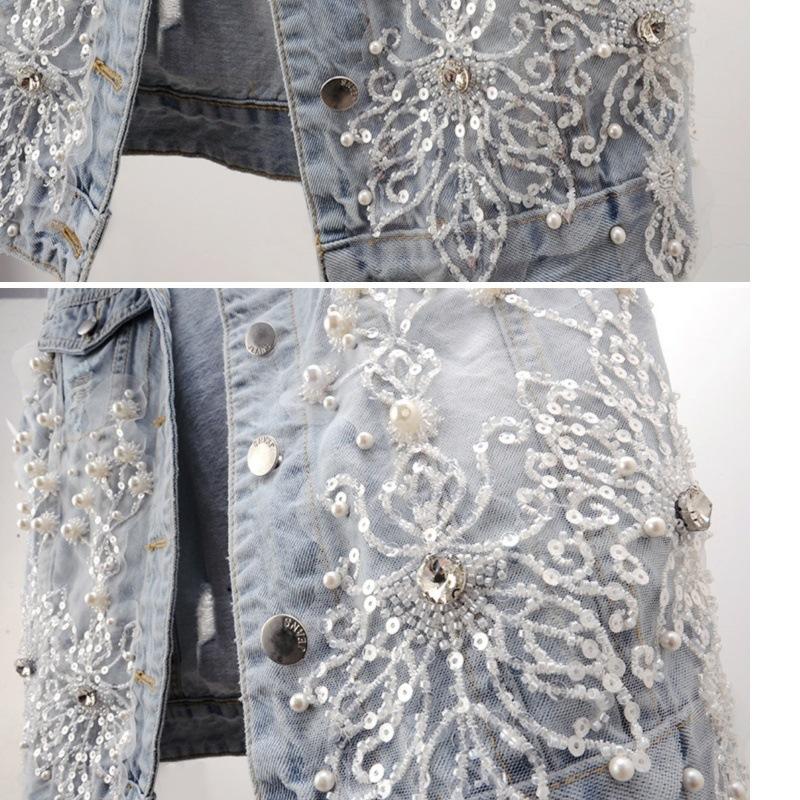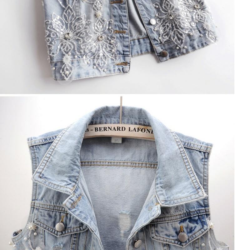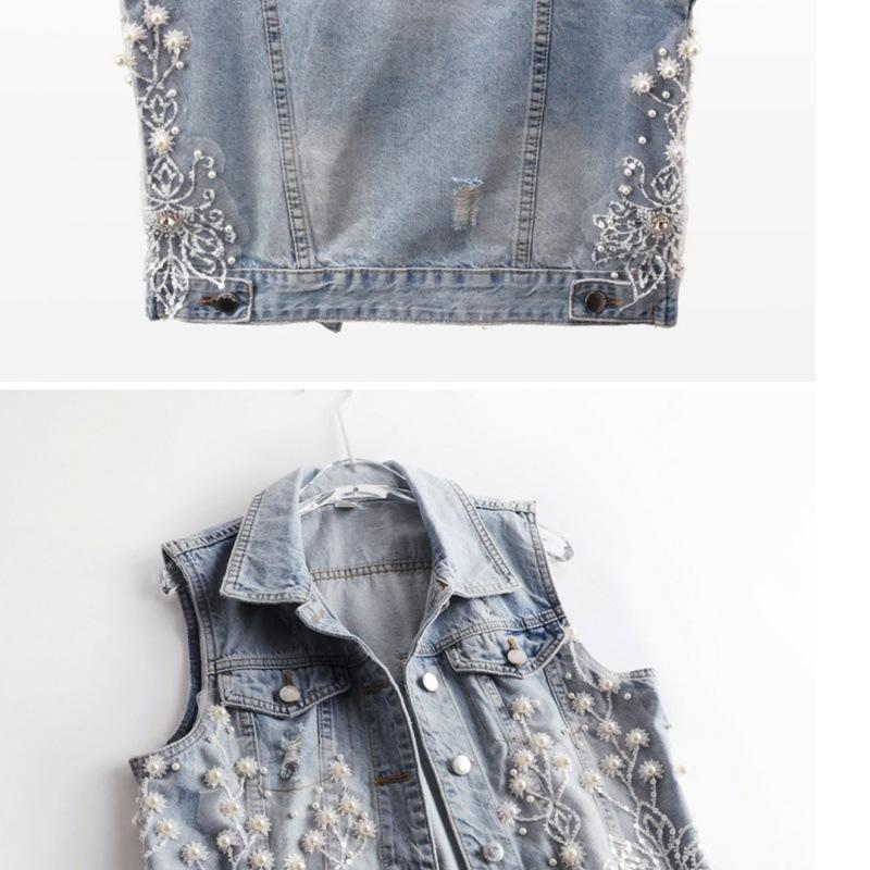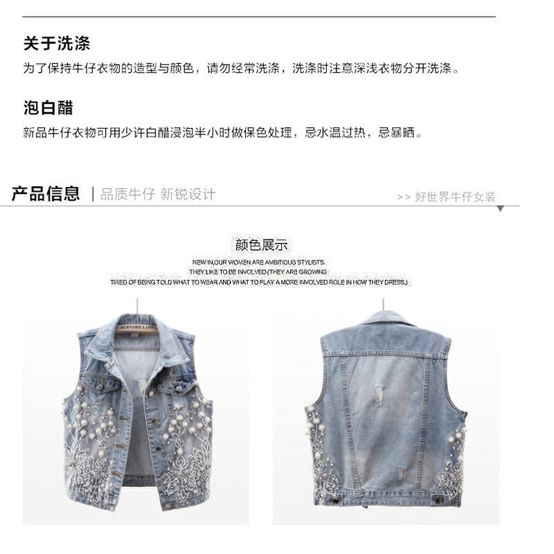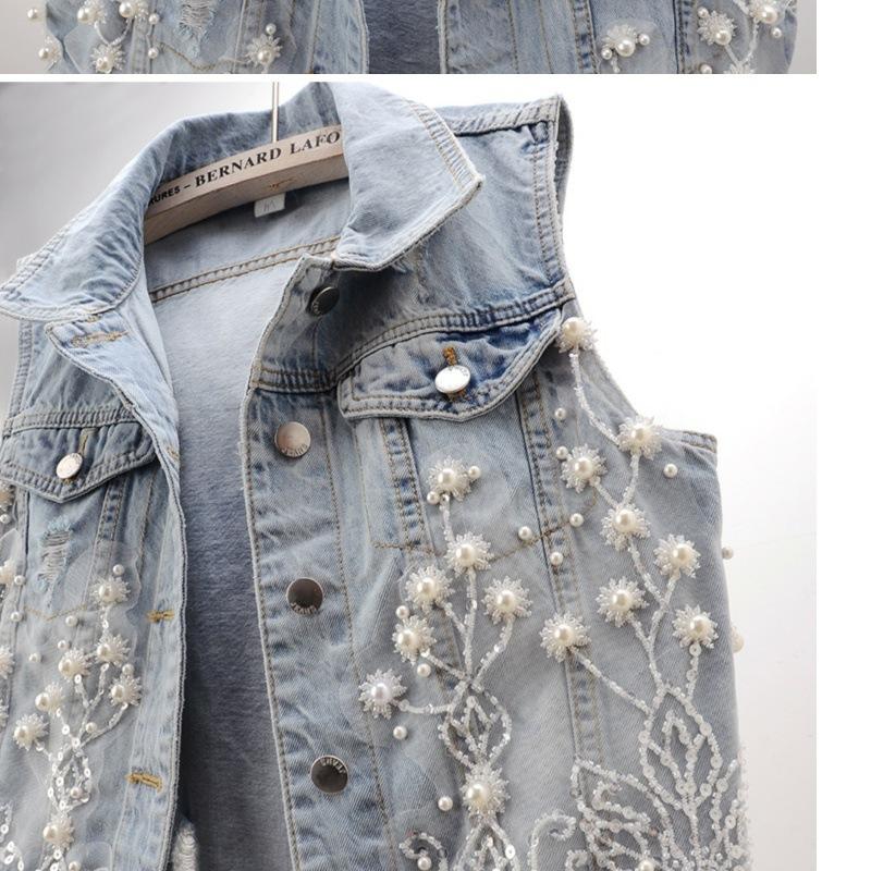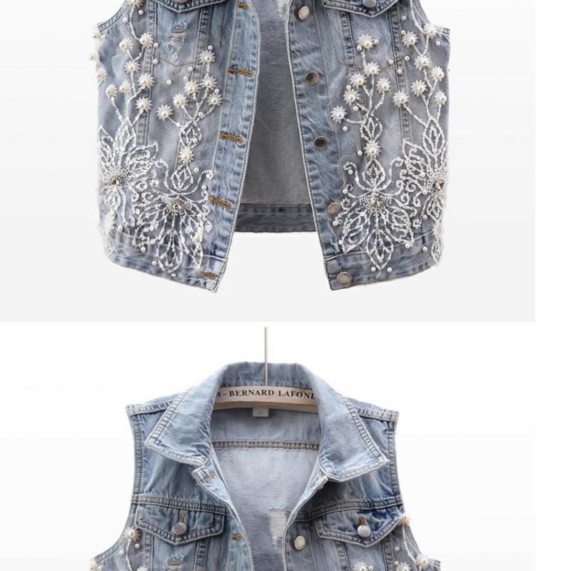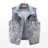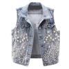 Primavera/Verano 2023 Nuevo Estilo Industria Pesada Flor con Cuentas Chaleco de Mezclilla Corto para Mujer Chaleco de Carnero