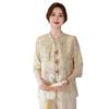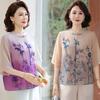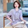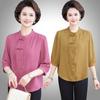 Nueva Madre de estilo chino Verano 2025 Nueva Camisa pequeña de estilo nacional de manga media para mujeres de mediana edad y mayores Camisa de gasa de moda para mujer
