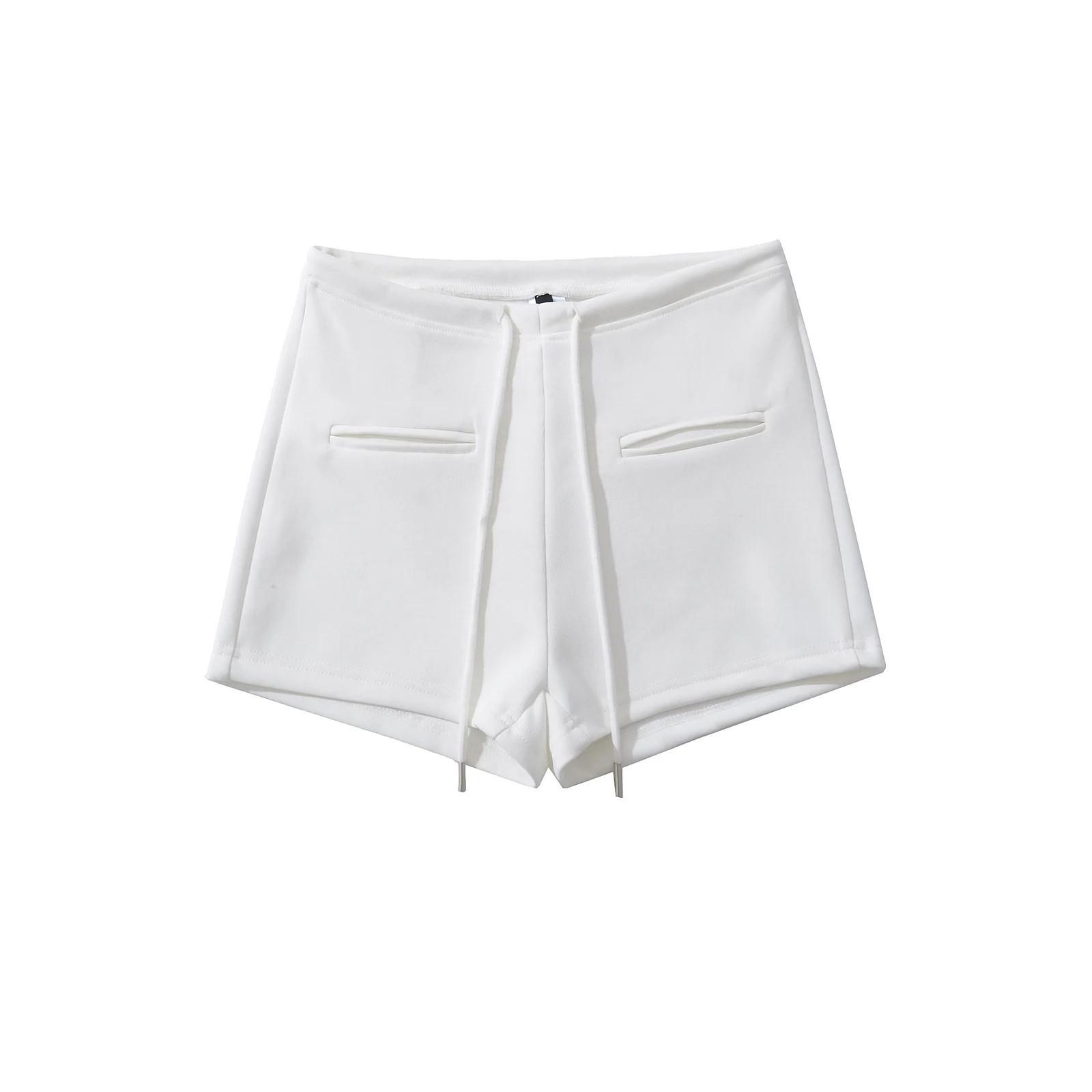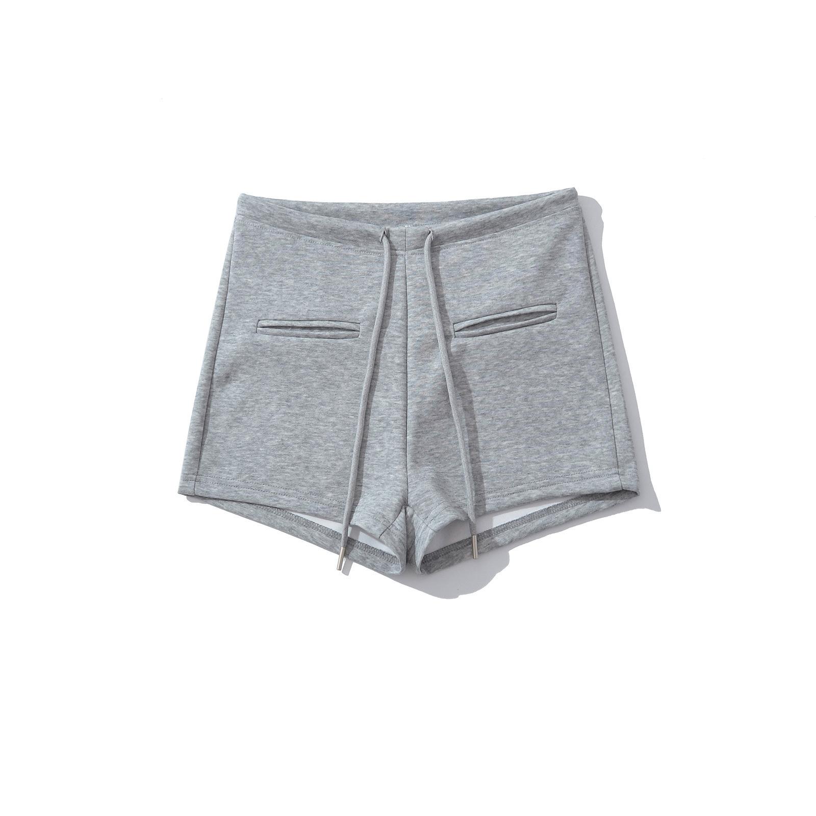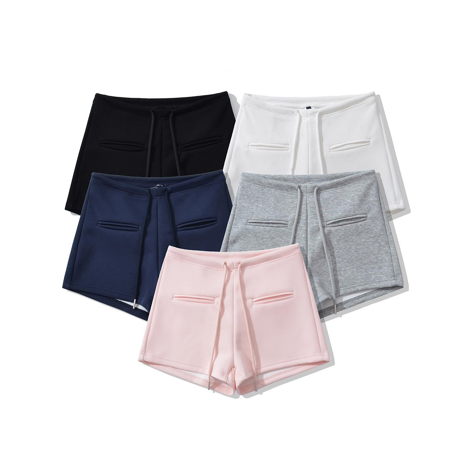 Pantalones cortos deportivos de cintura baja con cordón, estilo americano, ajustados, para mujer, que combinan con todo, adelgazantes, de tres puntos, informales, para mujer