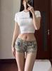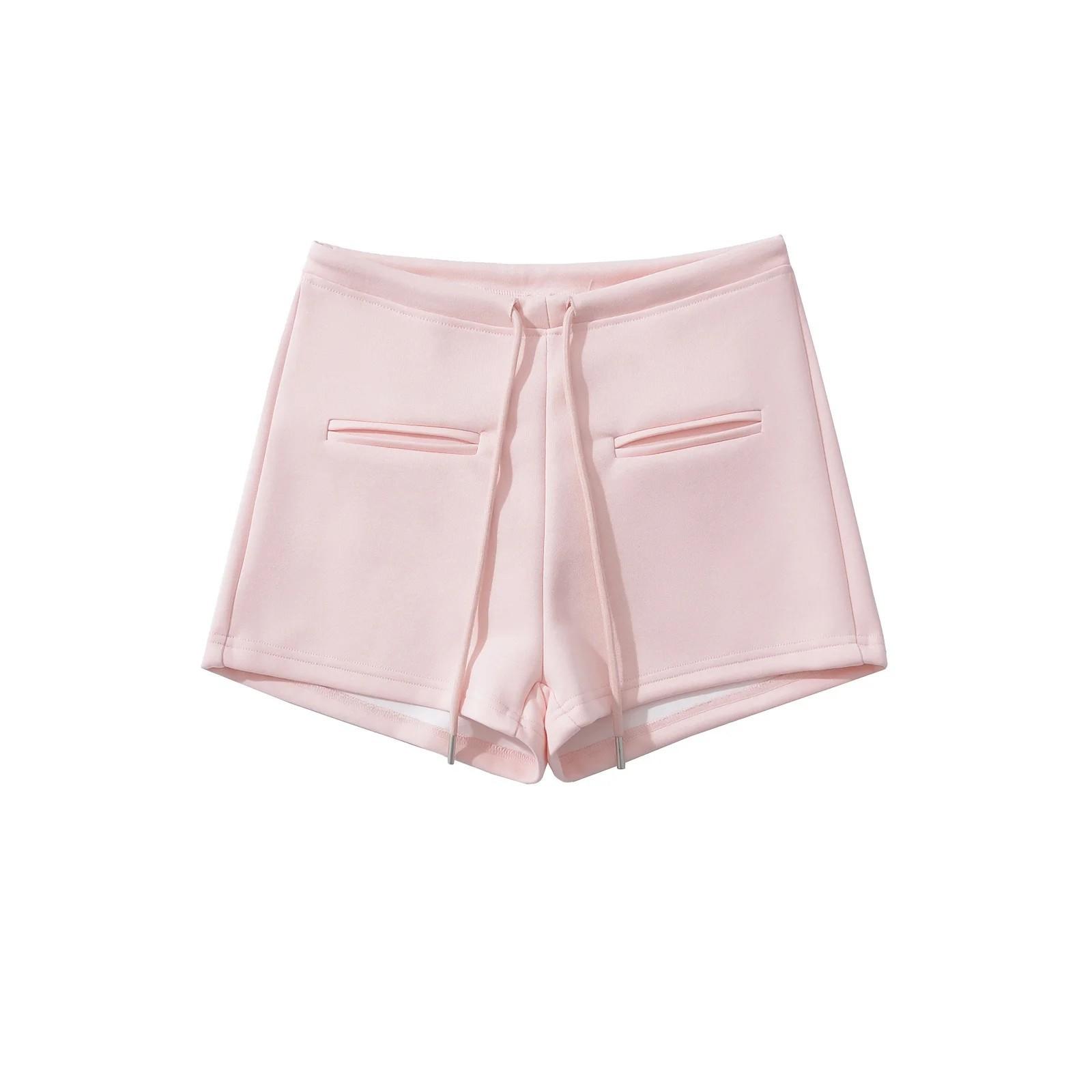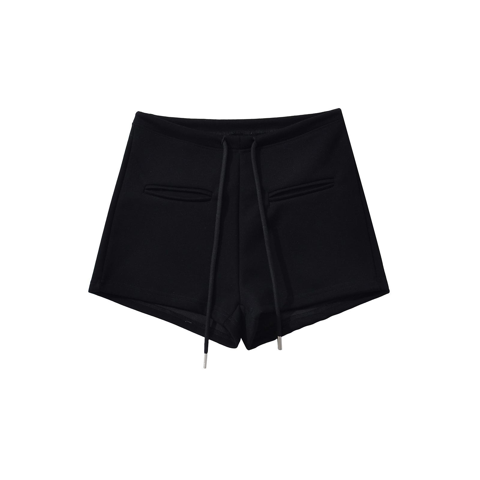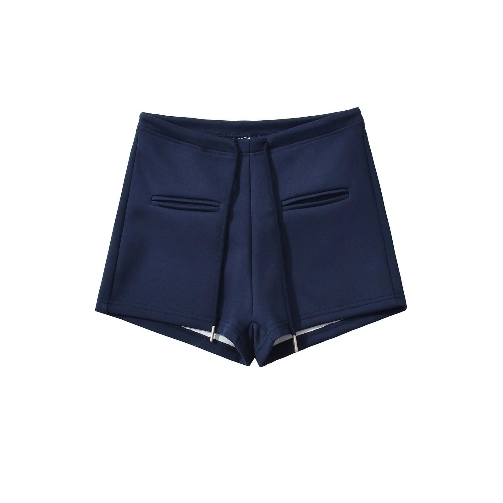 Pantalones cortos deportivos de cintura baja con cordón, estilo americano, ajustados, para mujer, que combinan con todo, adelgazantes, de tres puntos, informales, para mujer