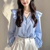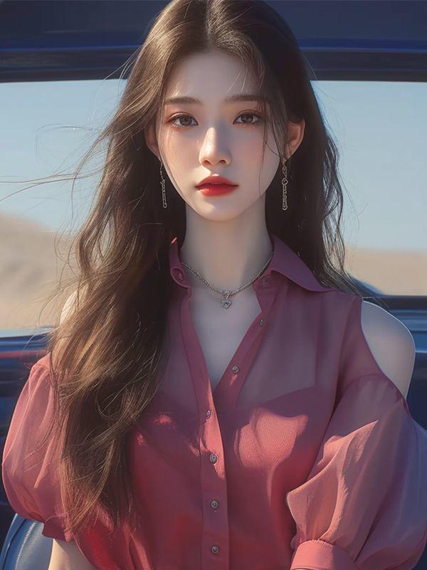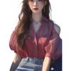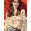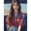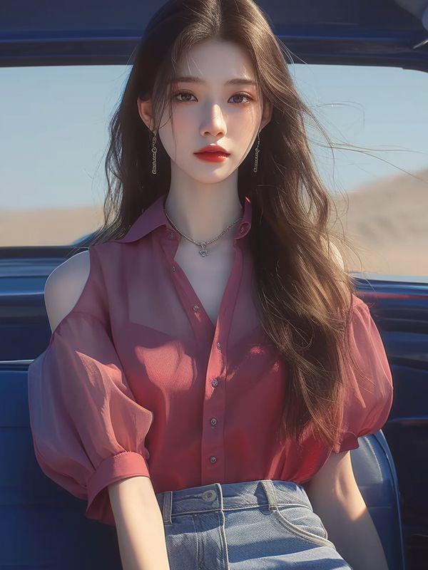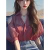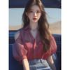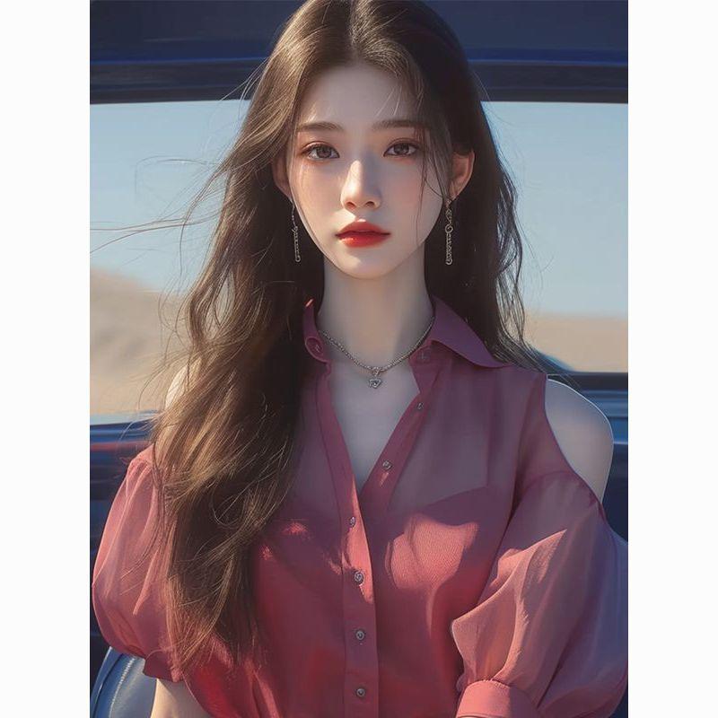 Camisa de gasa roja con hombros descubiertos para mujer, ligera, de lujo, de alta gama, estilo francés, única y madura, de hada de verano