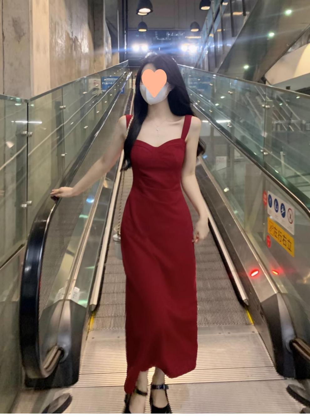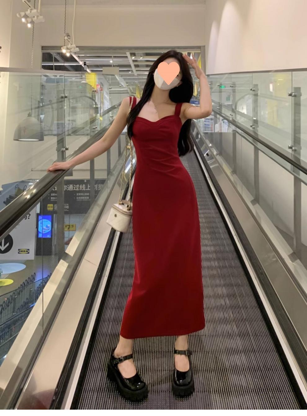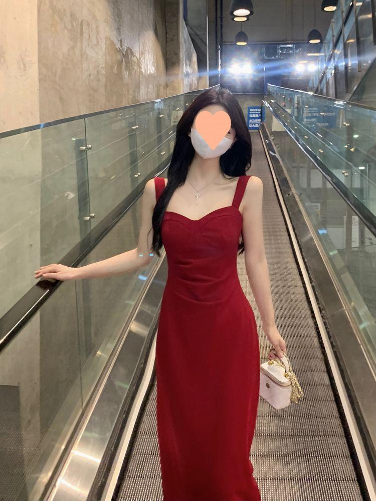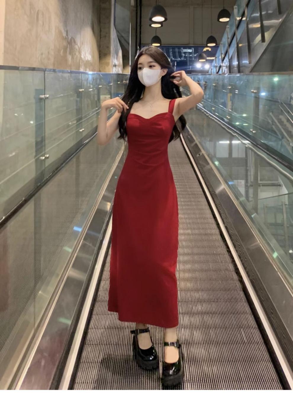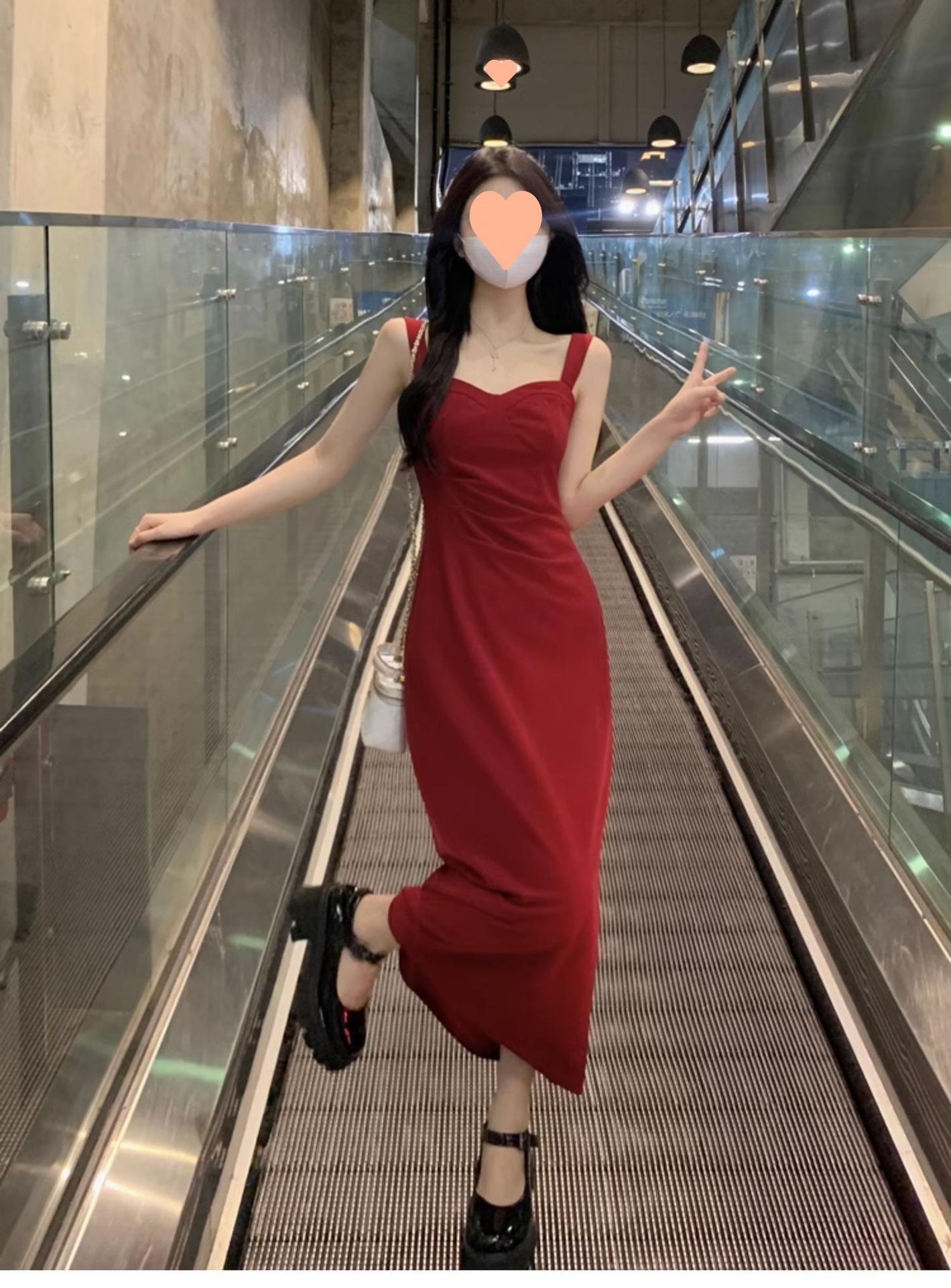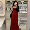 Vestido rojo francés de verano suave socialité elegante falda larga cintura ajustada adelgazante falda traje