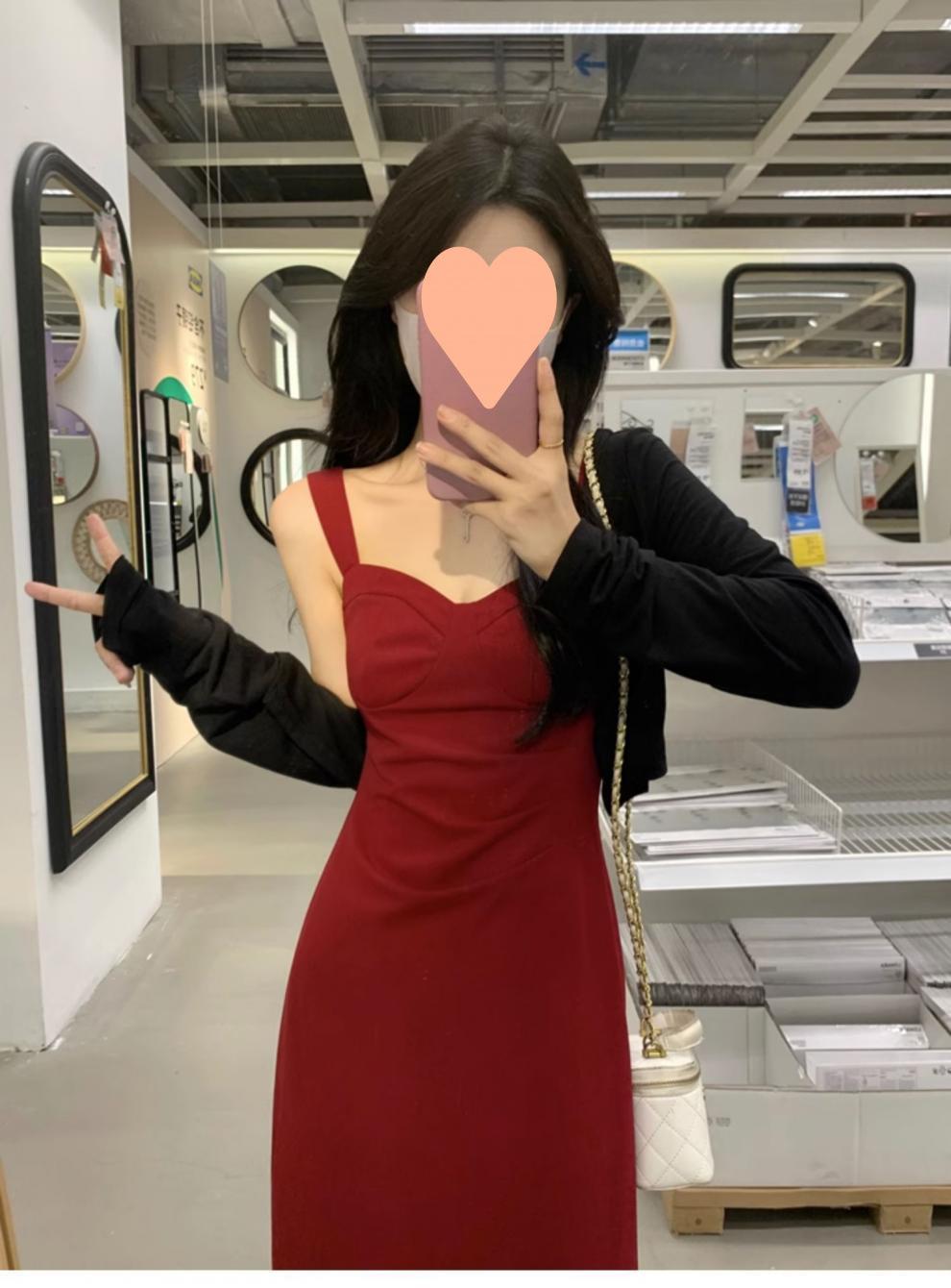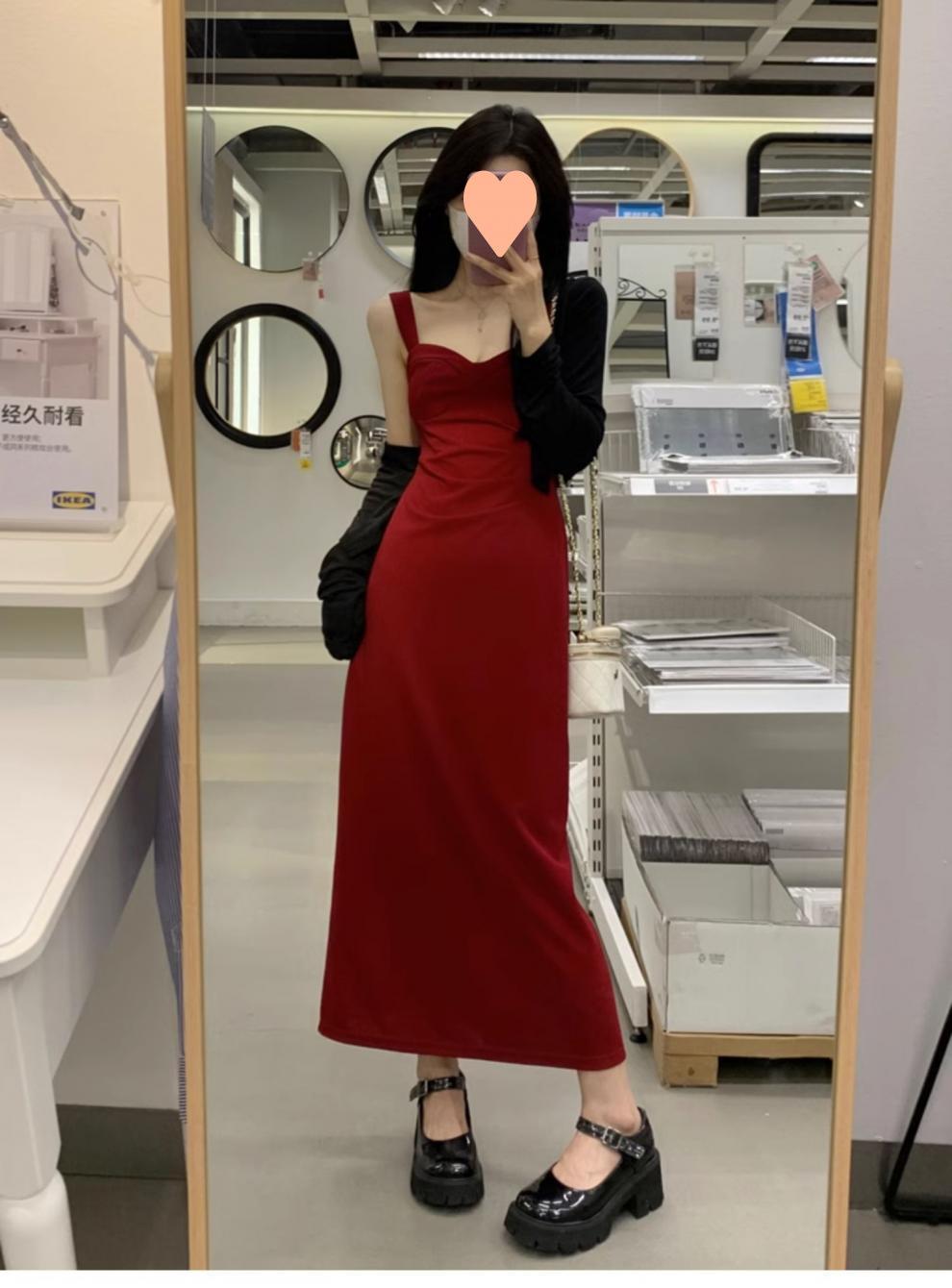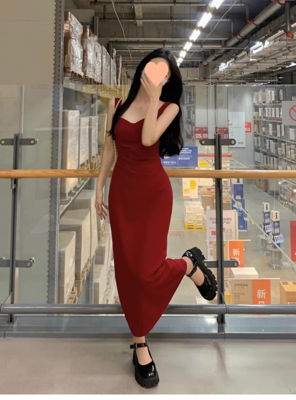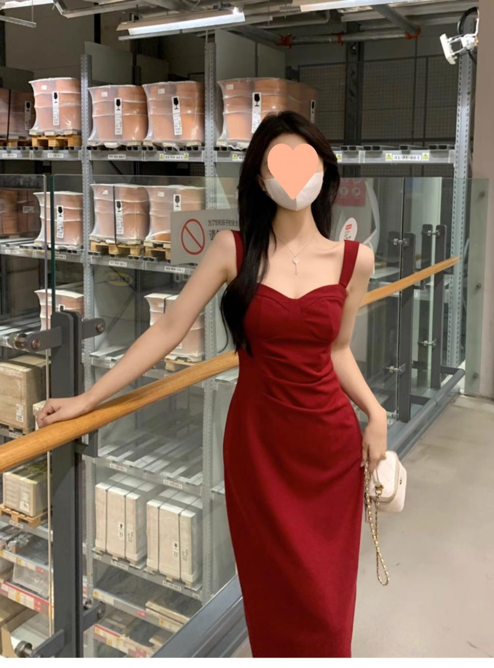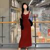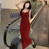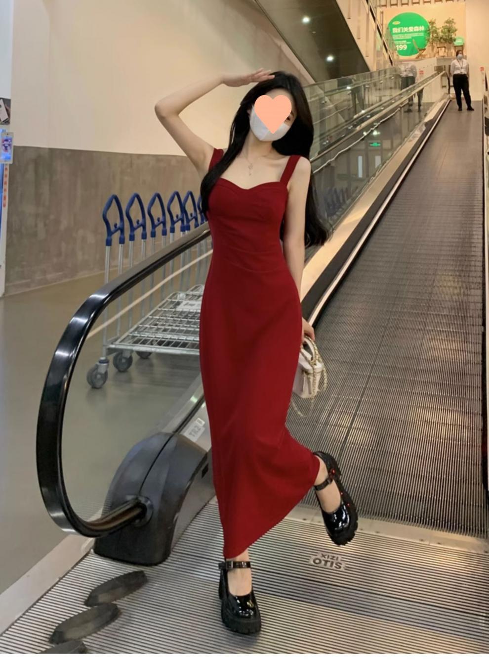 Vestido rojo francés de verano suave socialité elegante falda larga cintura ajustada adelgazante falda traje