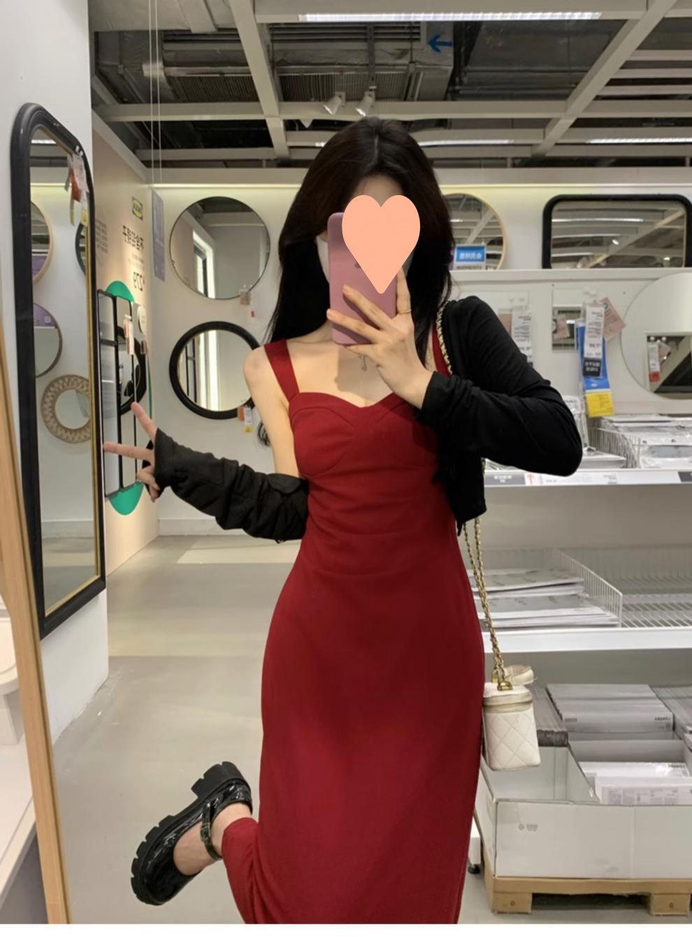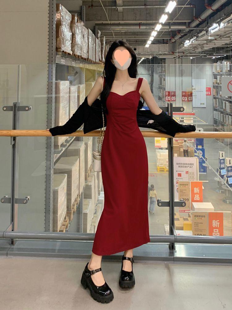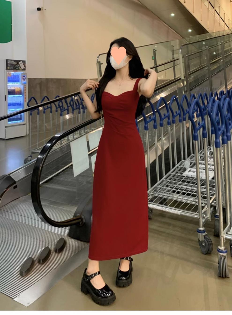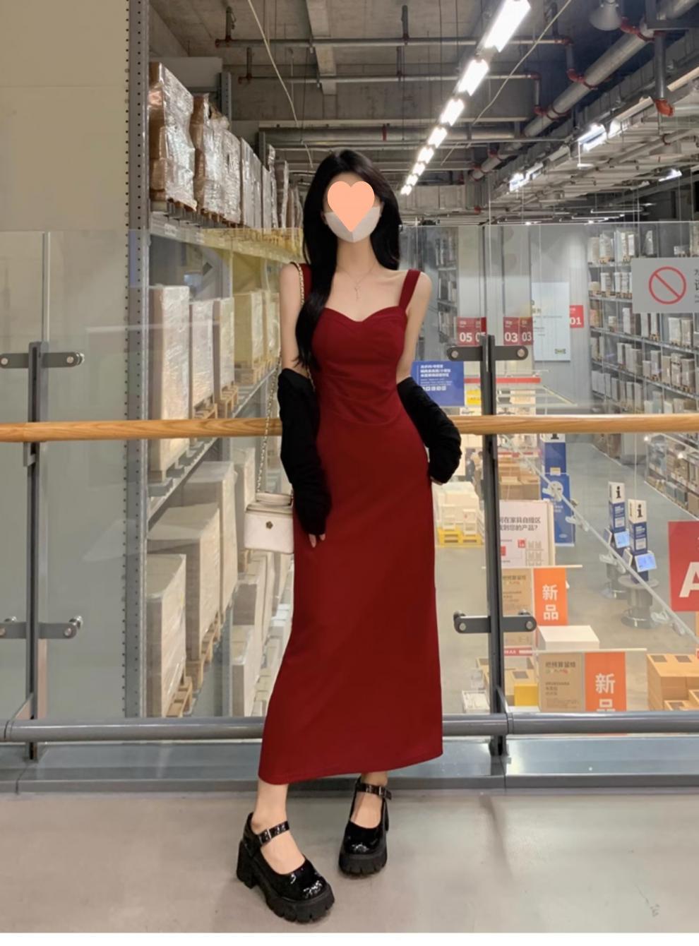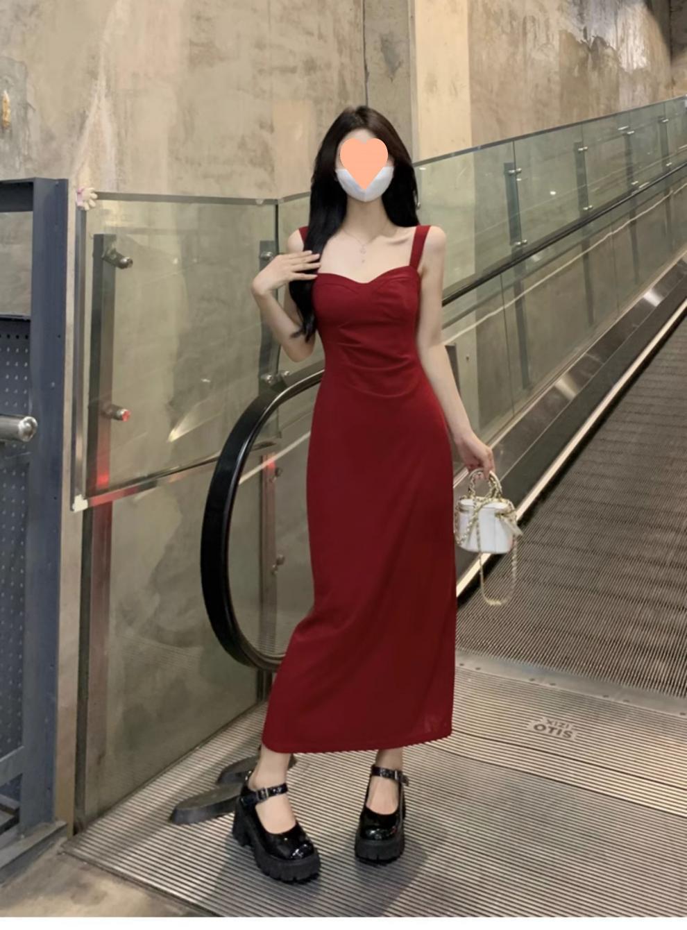 Vestido rojo francés de verano suave socialité elegante falda larga cintura ajustada adelgazante falda traje