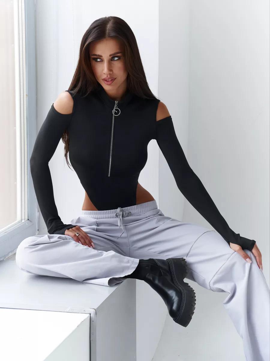 Camisa básica de manga larga con cremallera ajustada en los hombros, color liso, para mujer, estilo Spice Girl, estilo europeo y americano, primavera