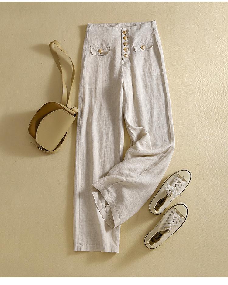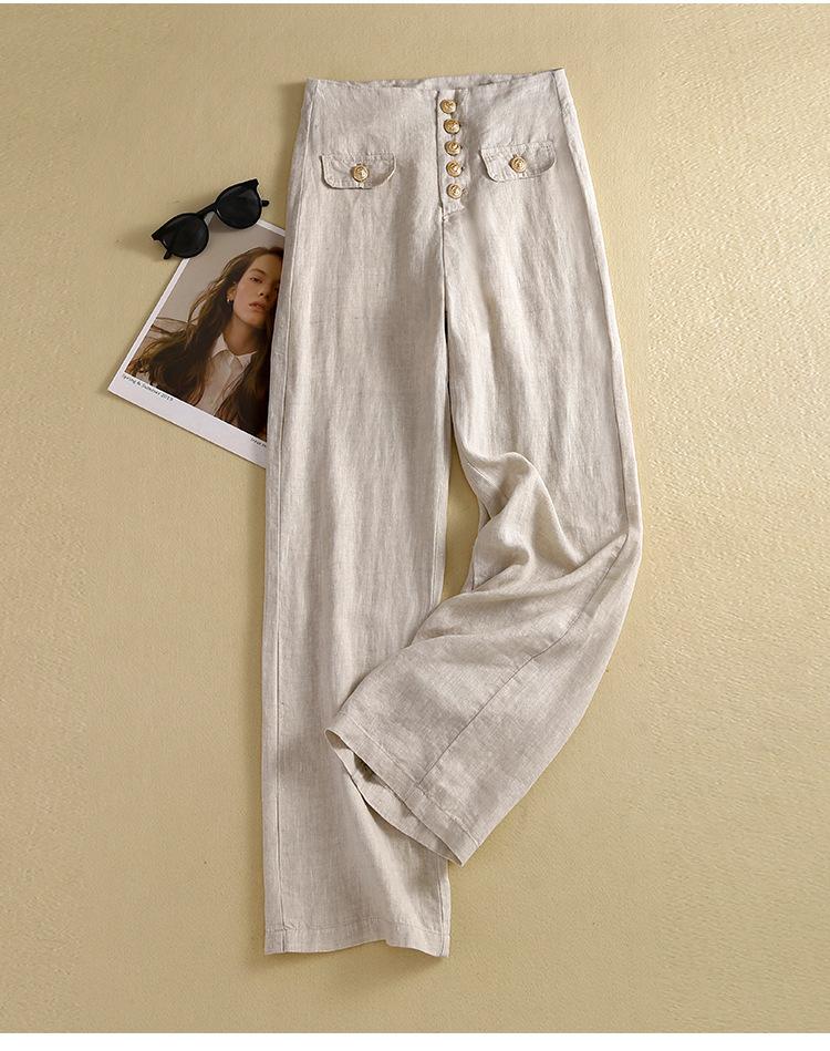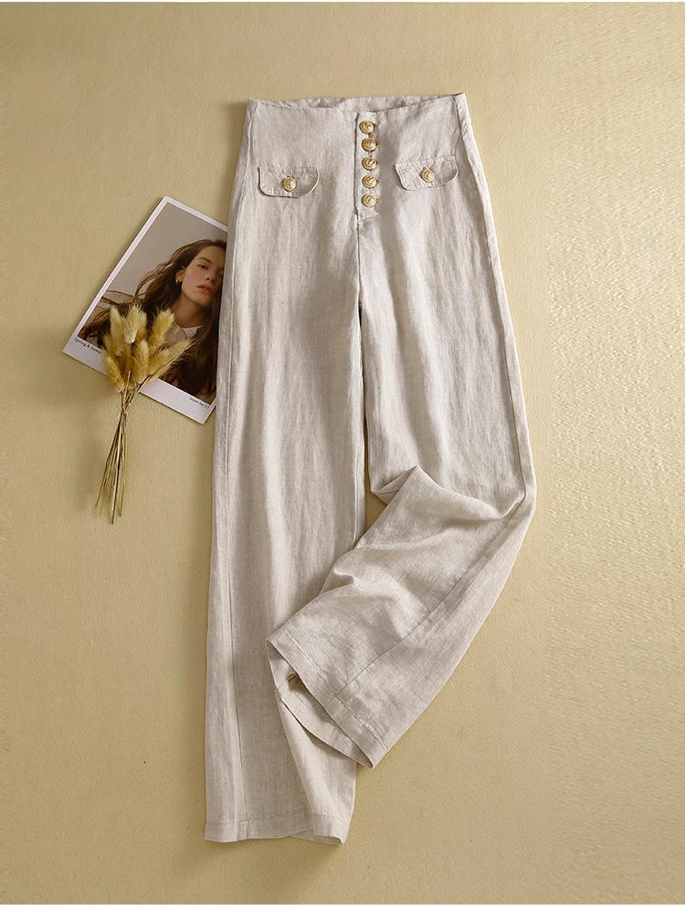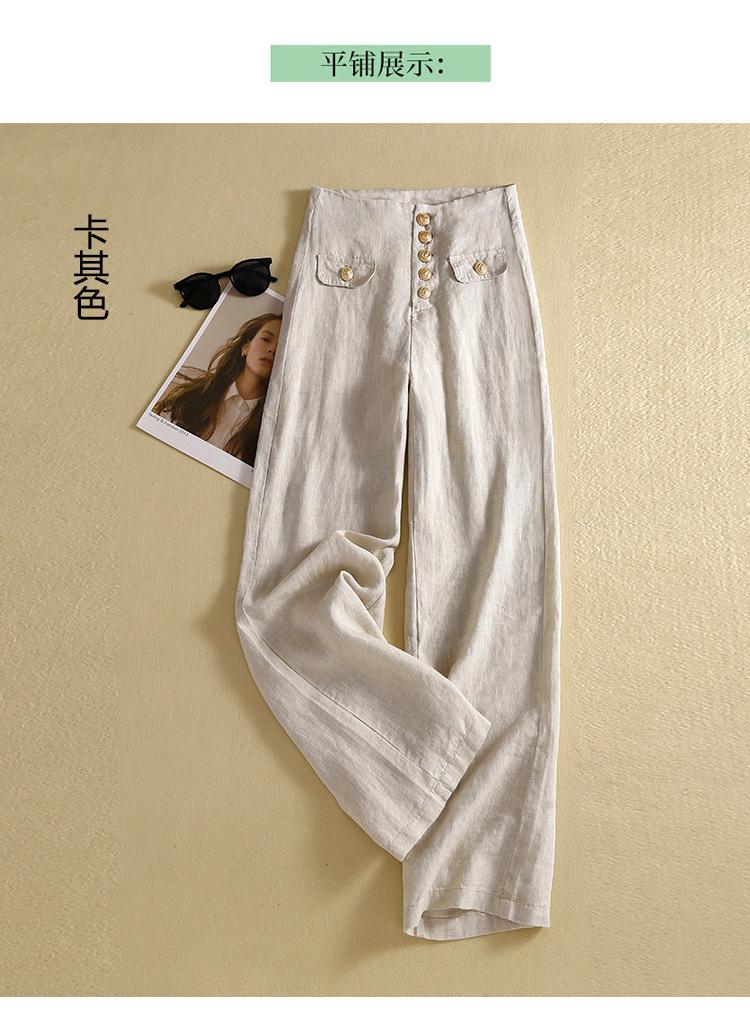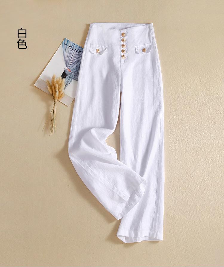 Pantalones de pierna ancha, holgados, informales, ajustados, de algodón y lino, de cintura alta, para mujer, de verano 2024