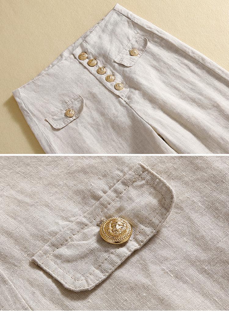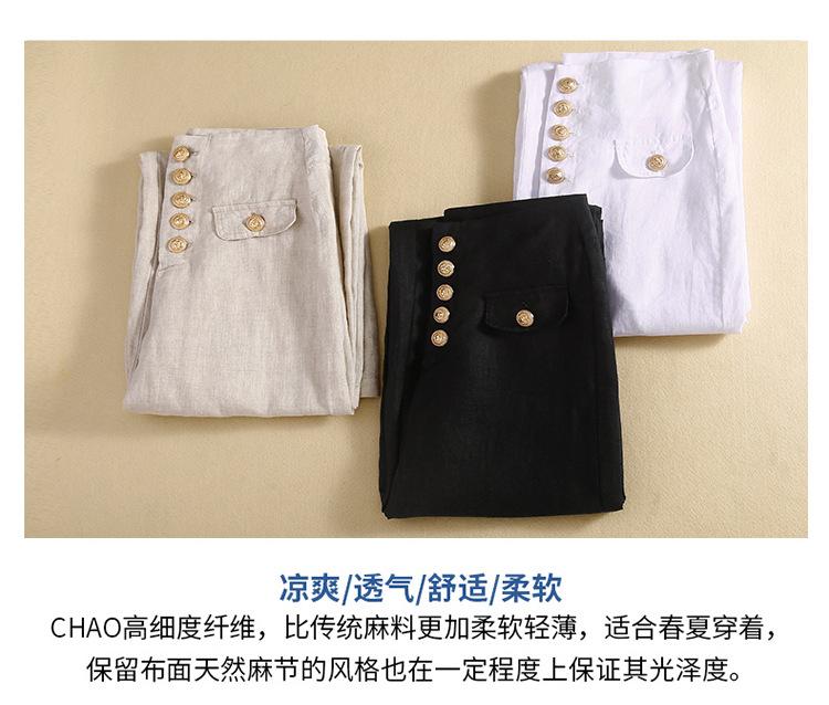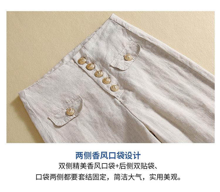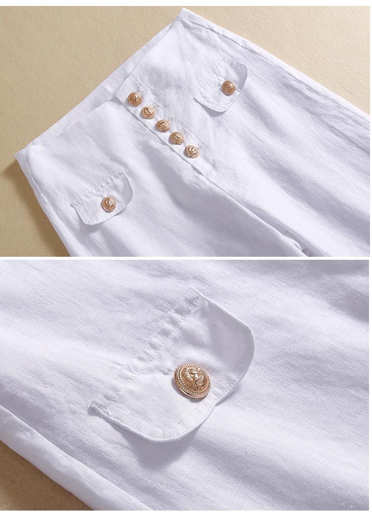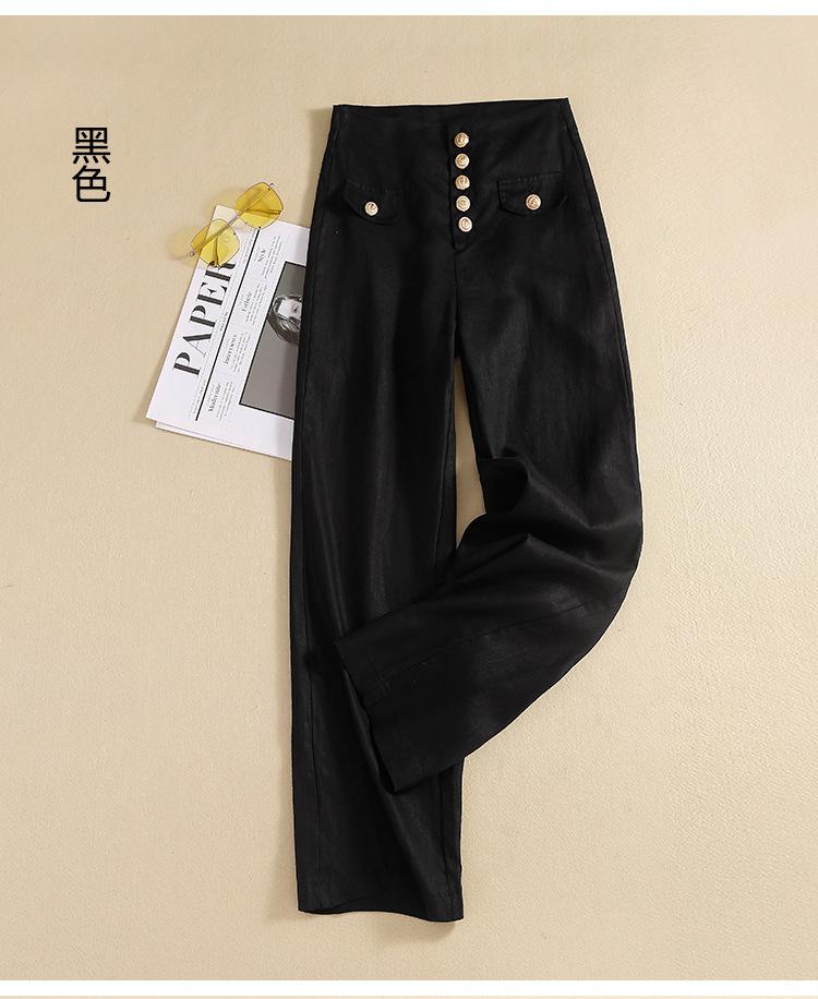 Pantalones de pierna ancha, holgados, informales, ajustados, de algodón y lino, de cintura alta, para mujer, de verano 2024