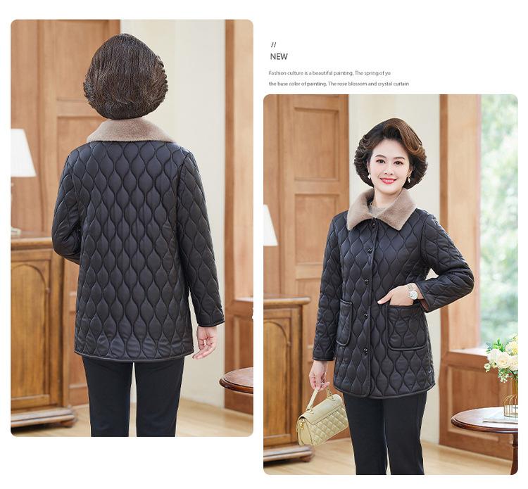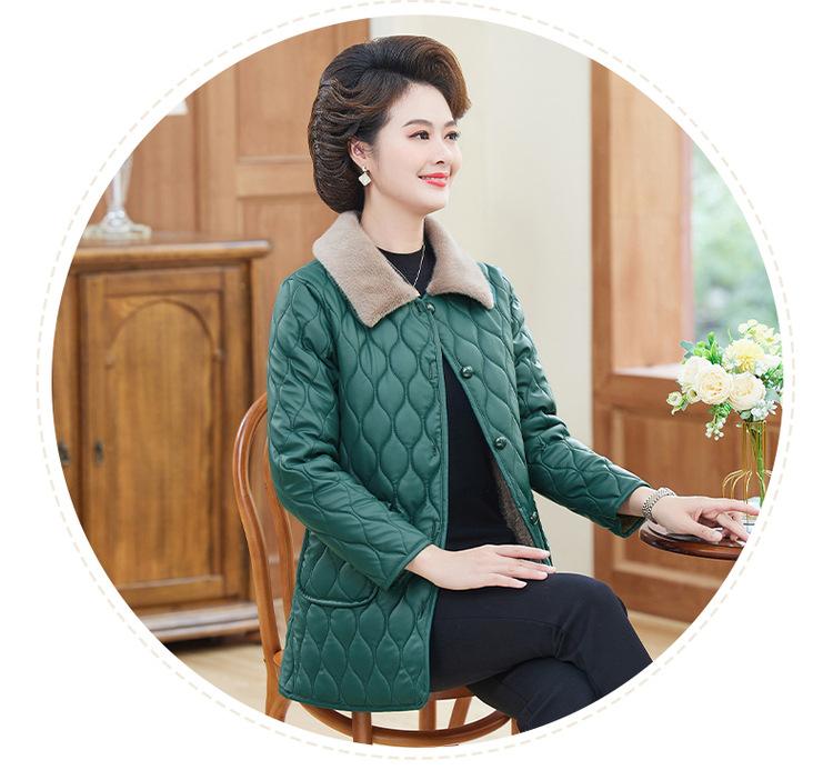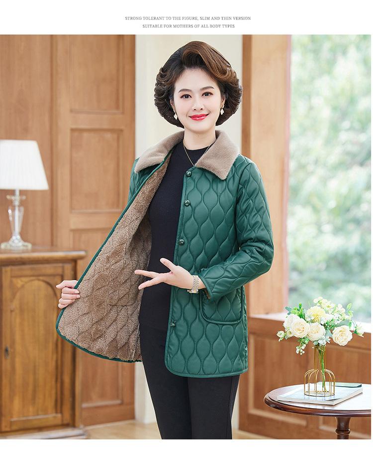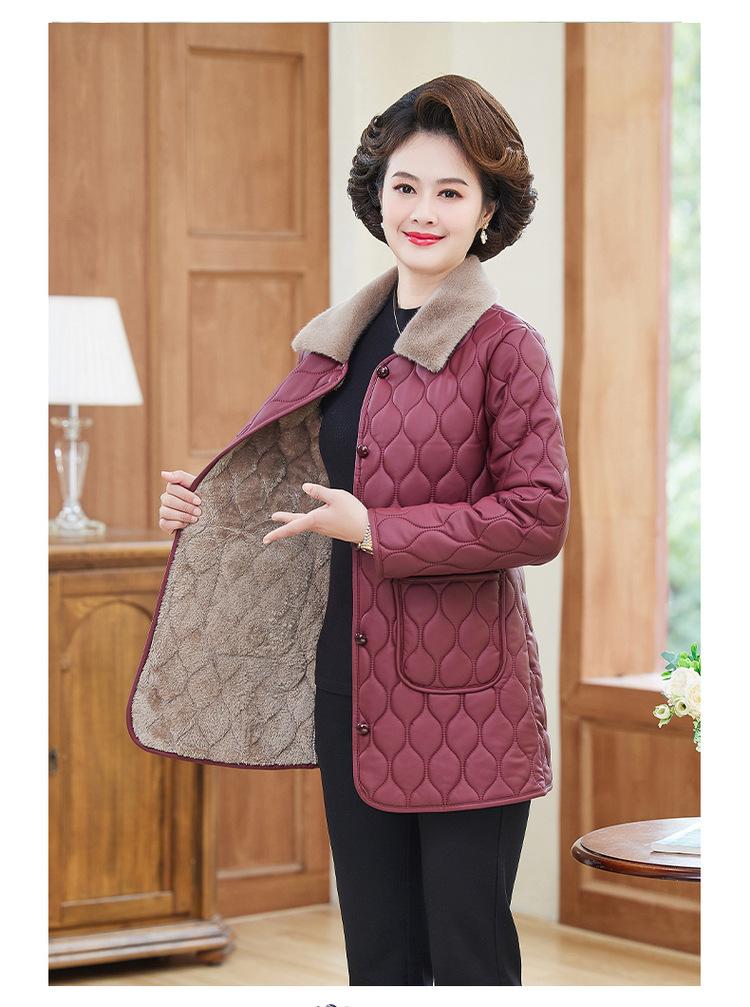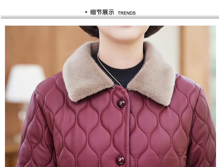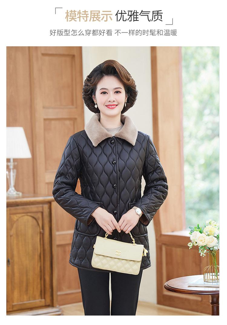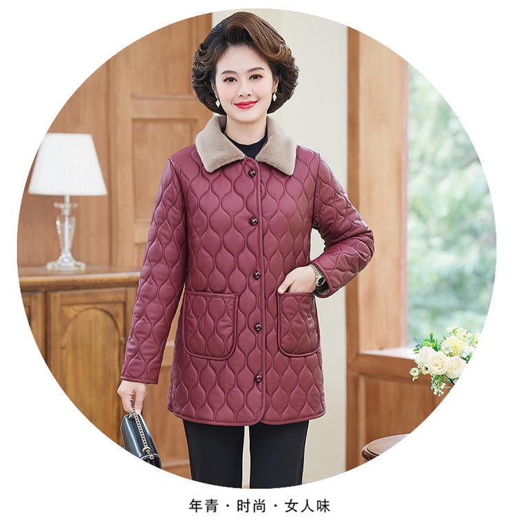 Ropa de invierno para madres, abrigo acolchado de algodón de longitud media grueso con forro polar, abrigo holgado de cuero y algodón para mujeres de mediana edad y mayores, abrigo acolchado de algodón de aspecto entallado