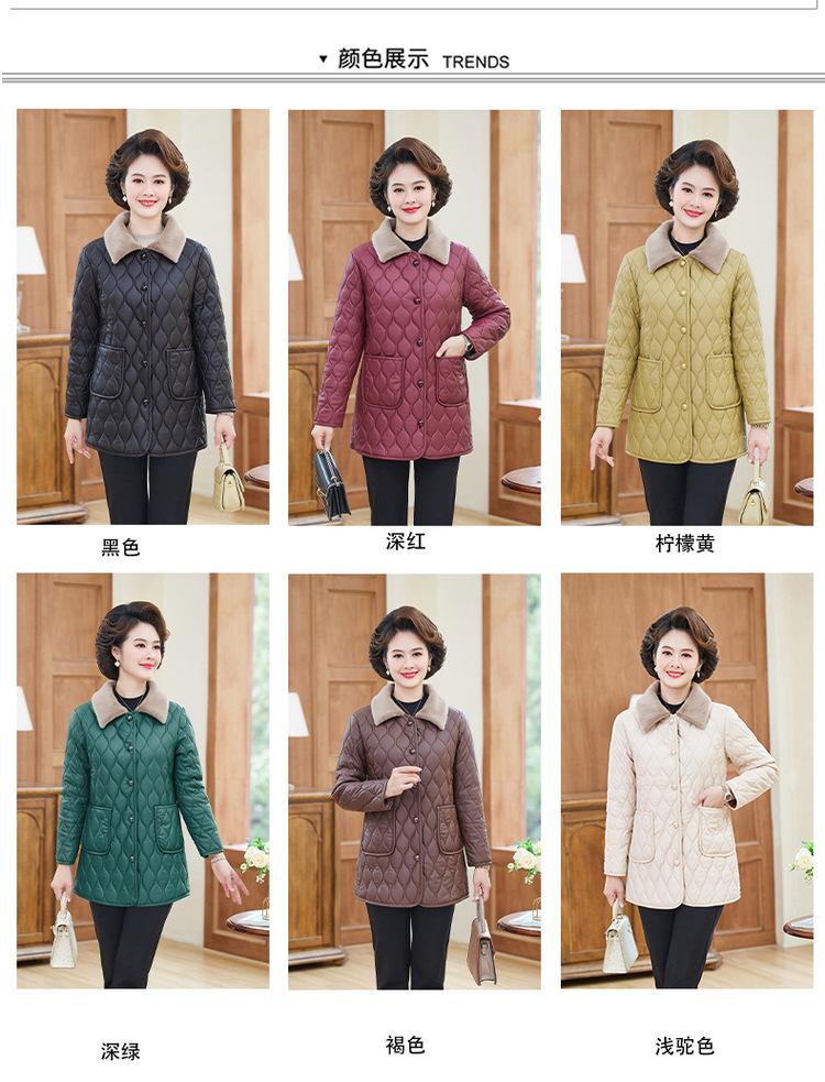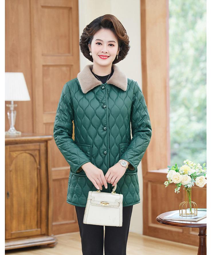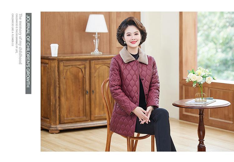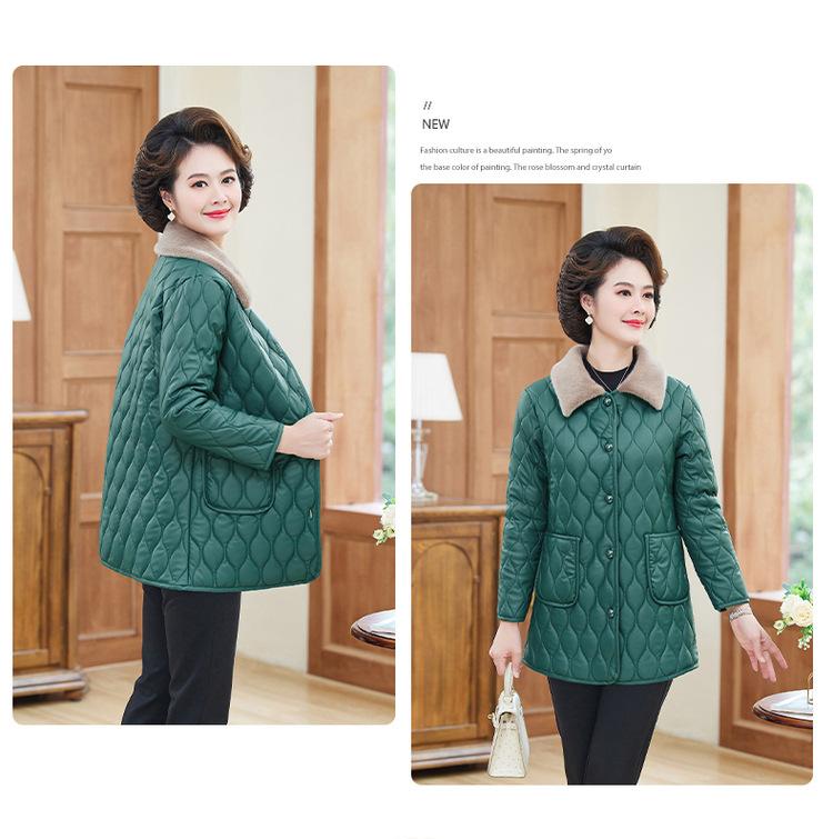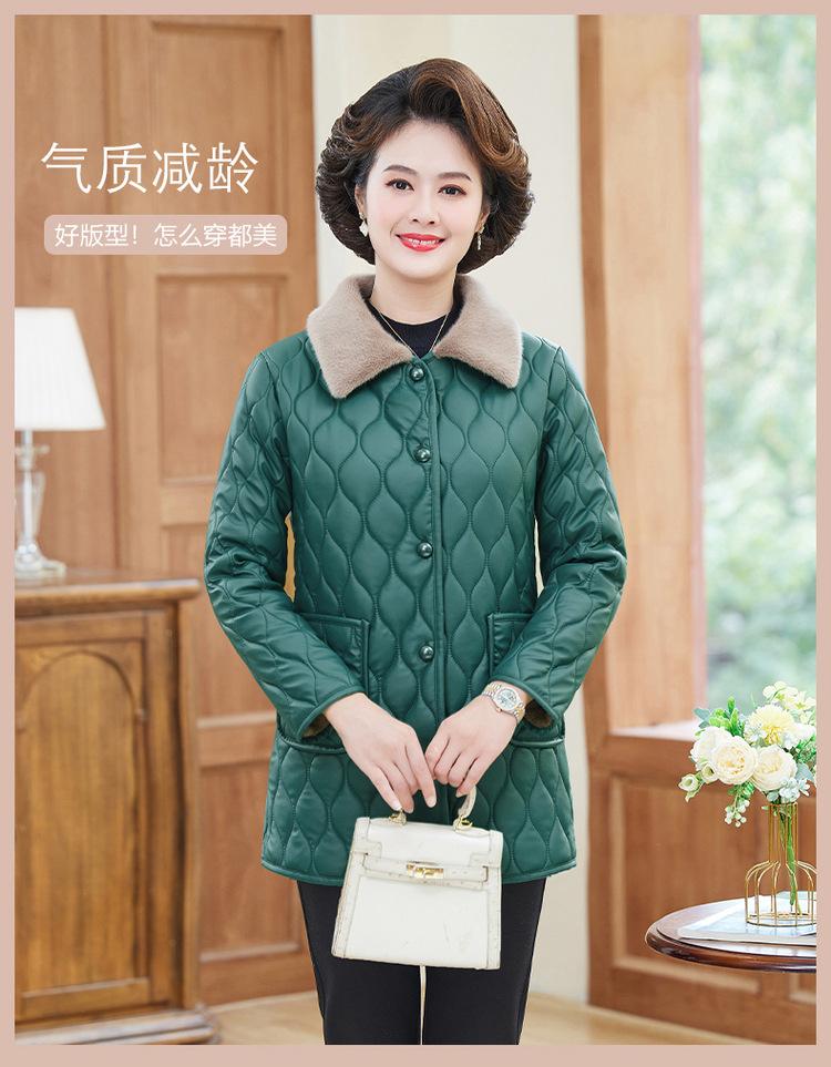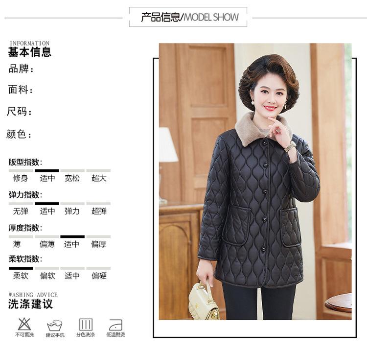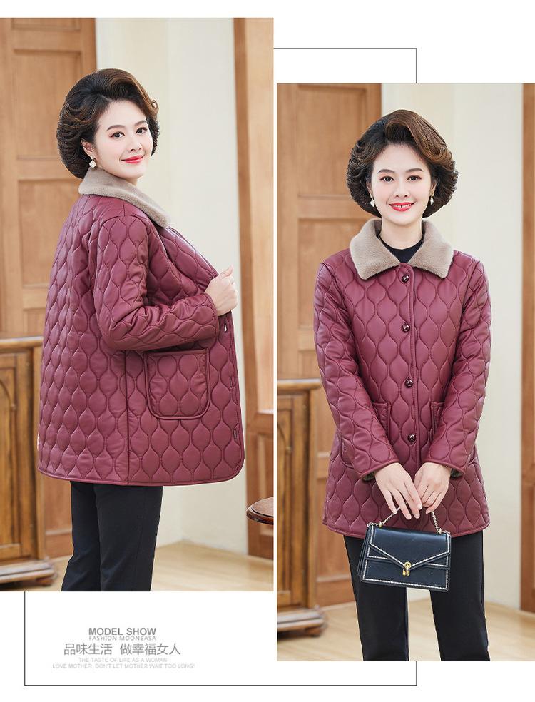 Ropa de invierno para madres, abrigo acolchado de algodón de longitud media grueso con forro polar, abrigo holgado de cuero y algodón para mujeres de mediana edad y mayores, abrigo acolchado de algodón de aspecto entallado