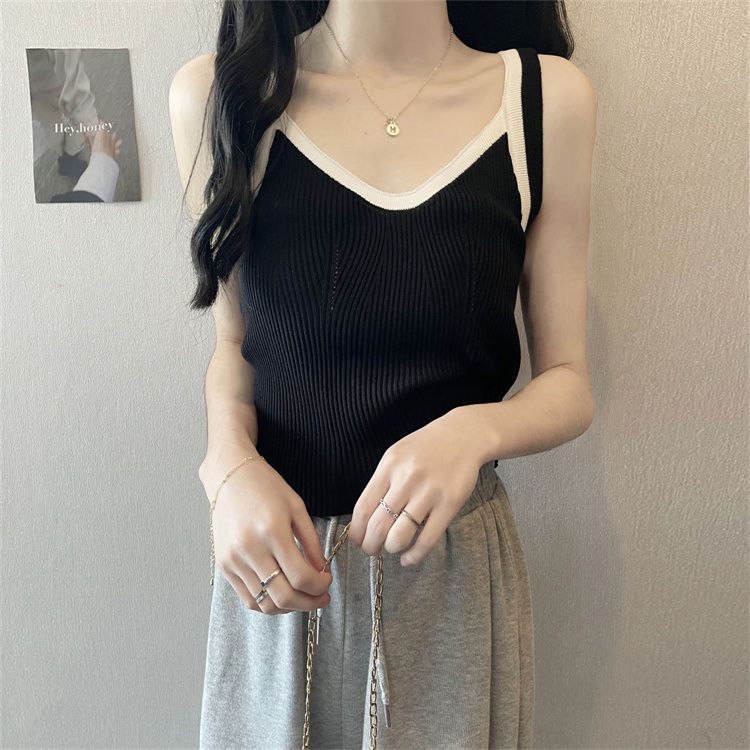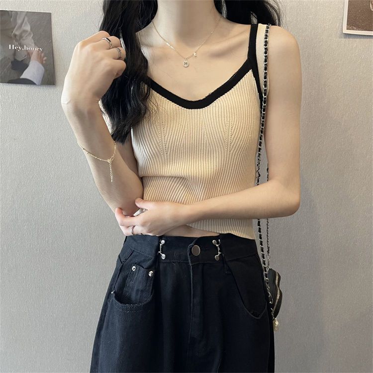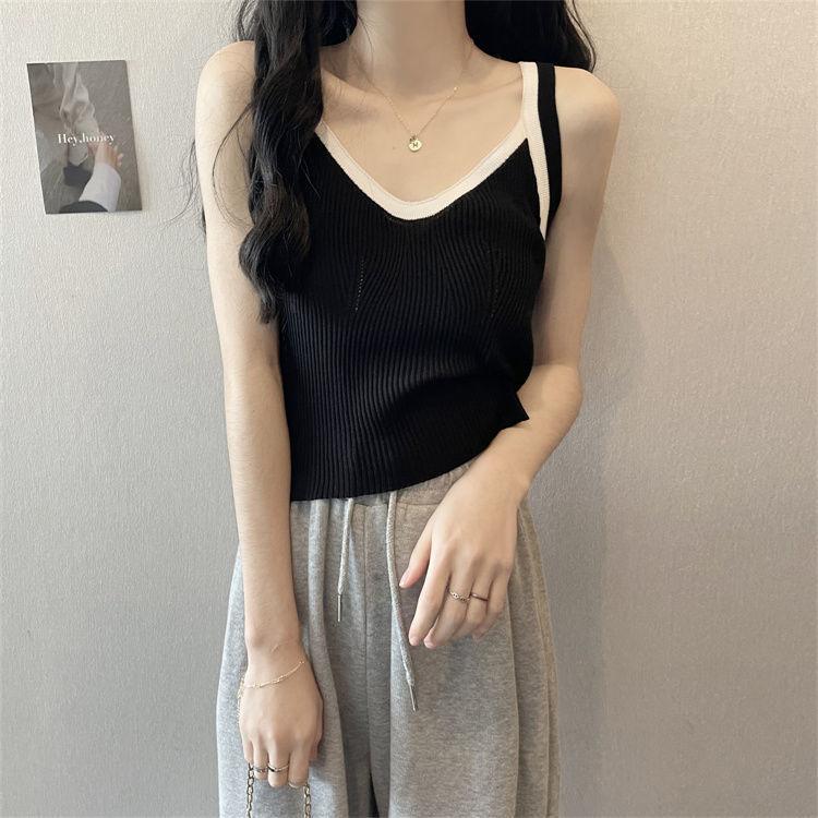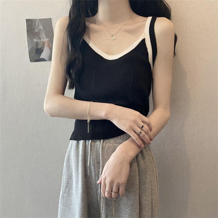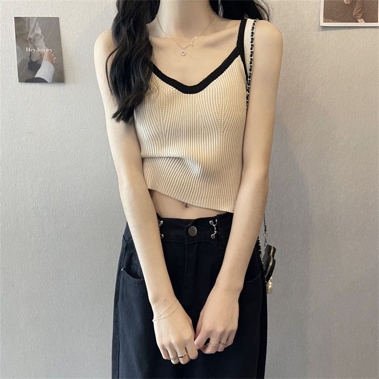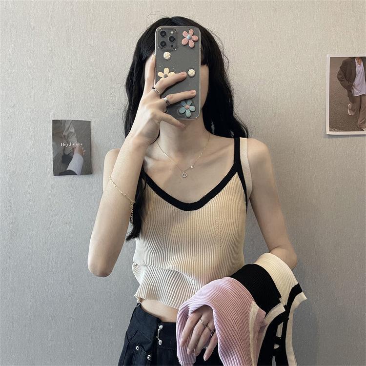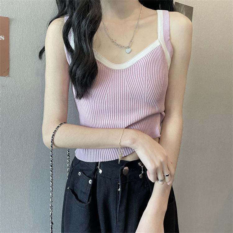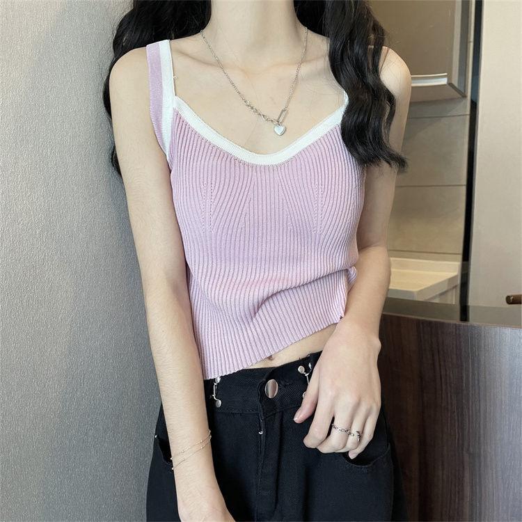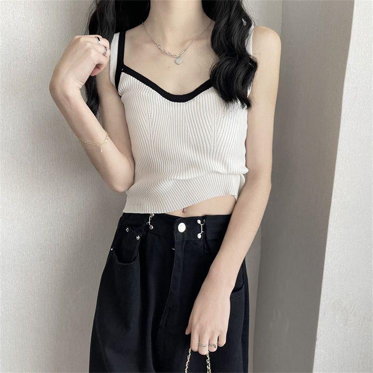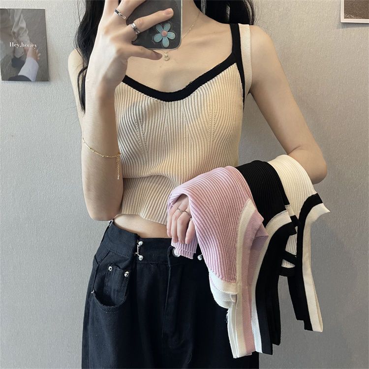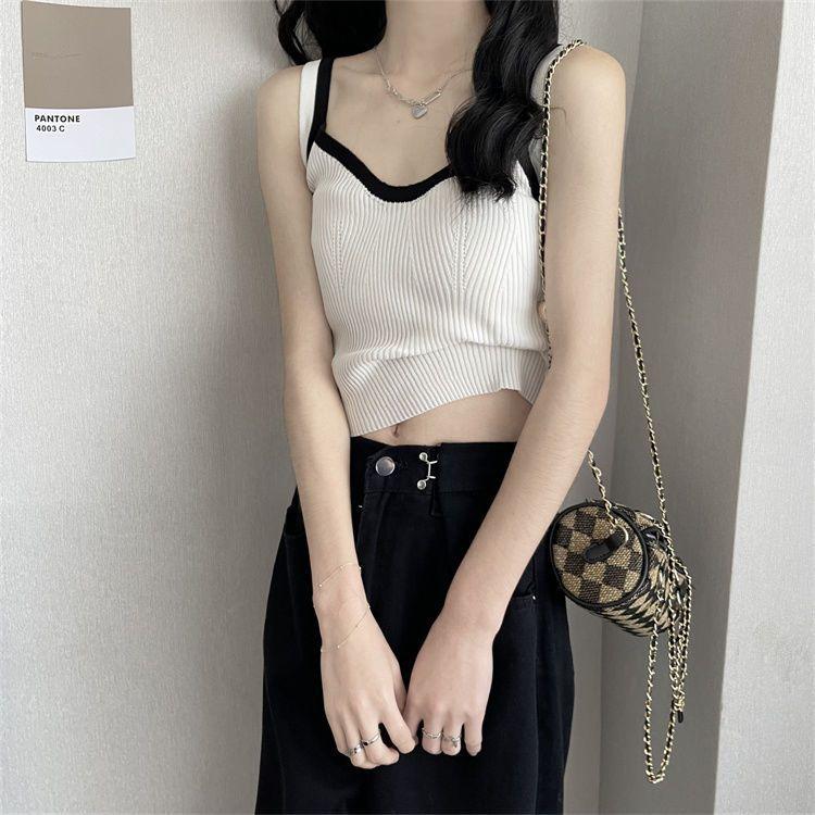 Camisola pequeña de punto con base interior de primavera y verano para mujer, ropa exterior, diseño de nicho francés, top puro dulce y picante