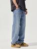 Pantalones vaqueros de alta gama de estilo americano, de marca de moda, de color azul claro, holgados, rectos, de primavera, nuevos pantalones de pierna ancha con corte de calle para hombre.