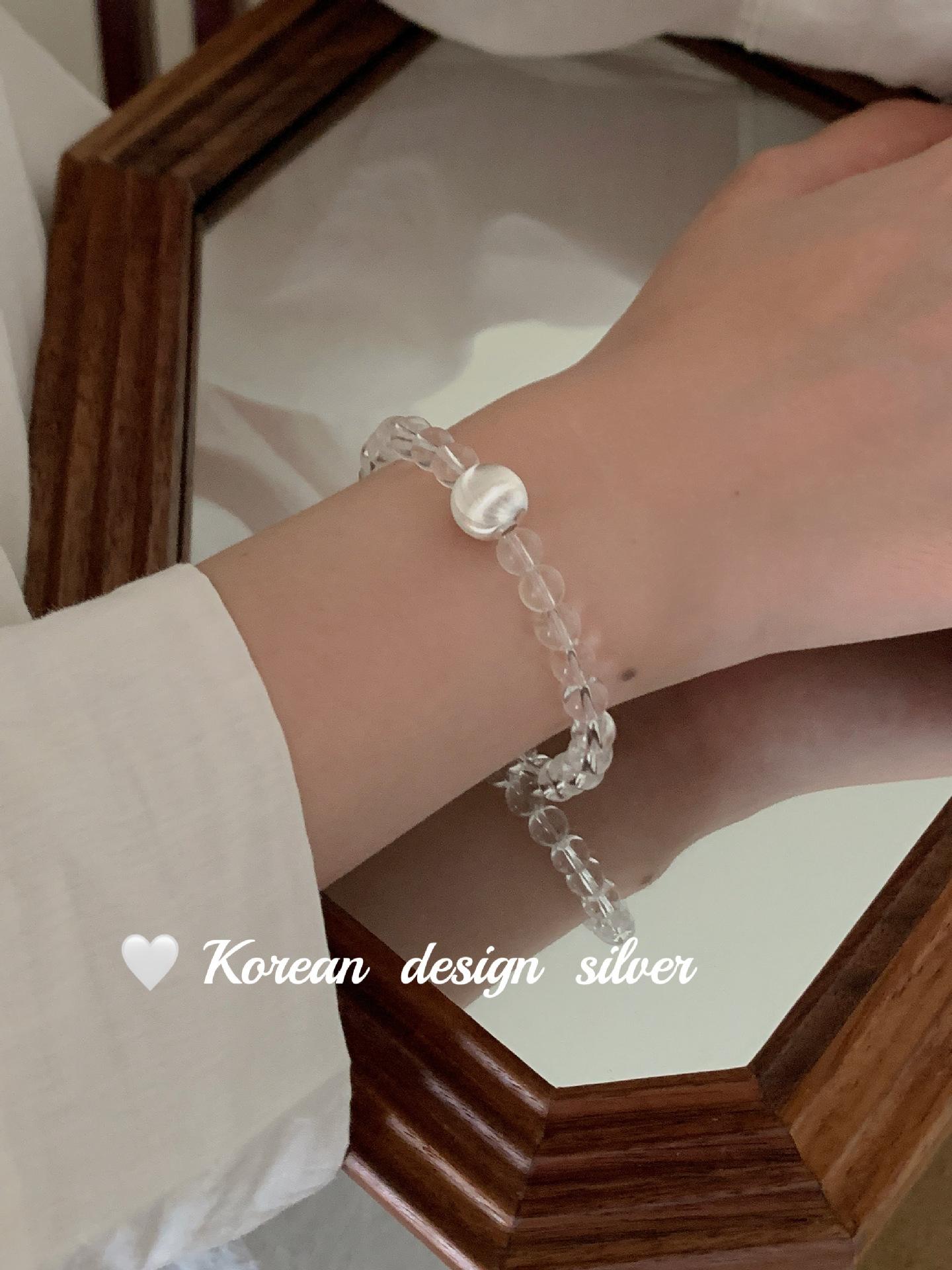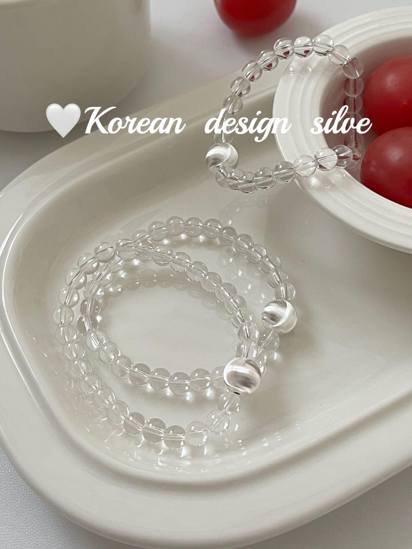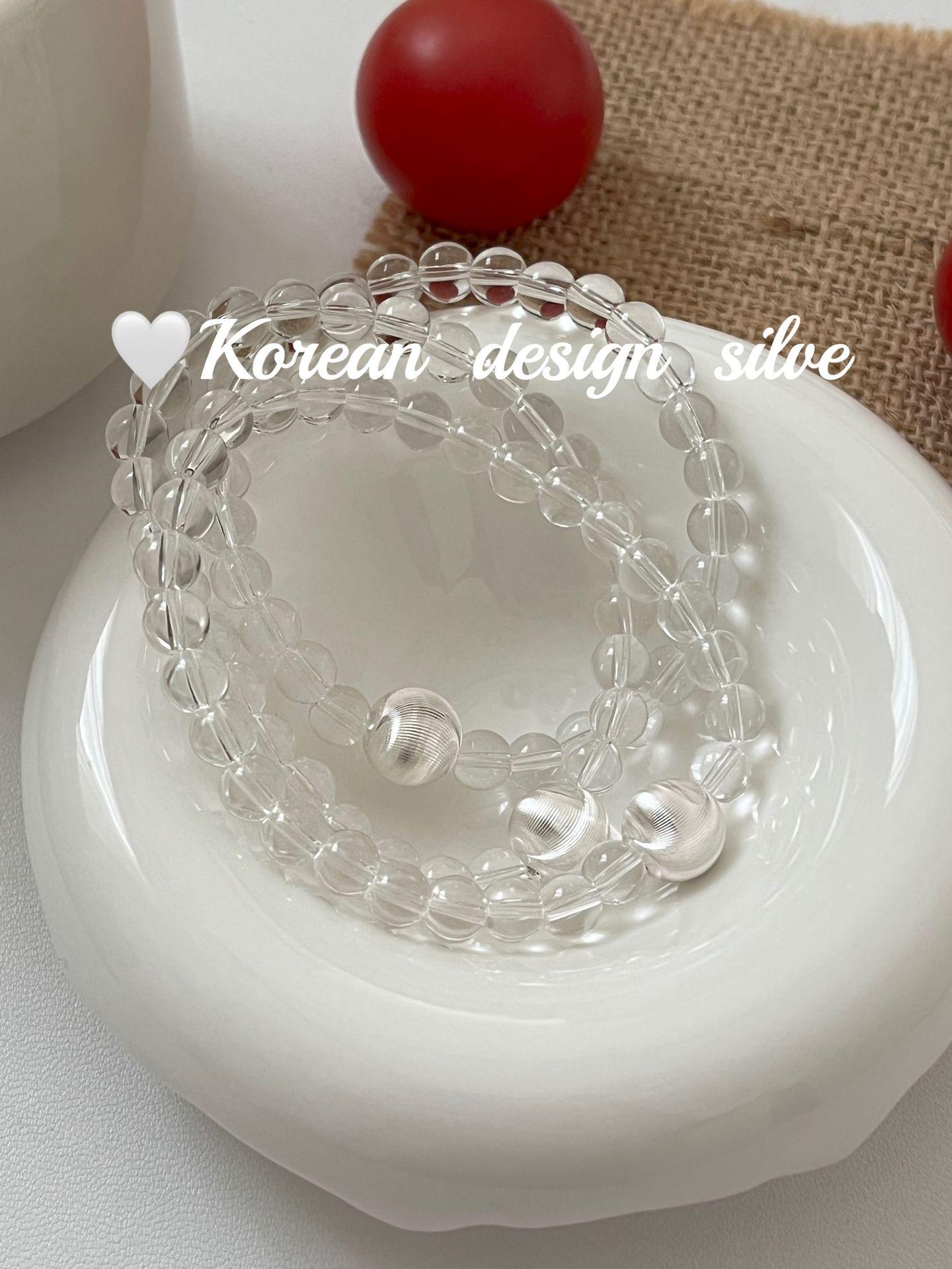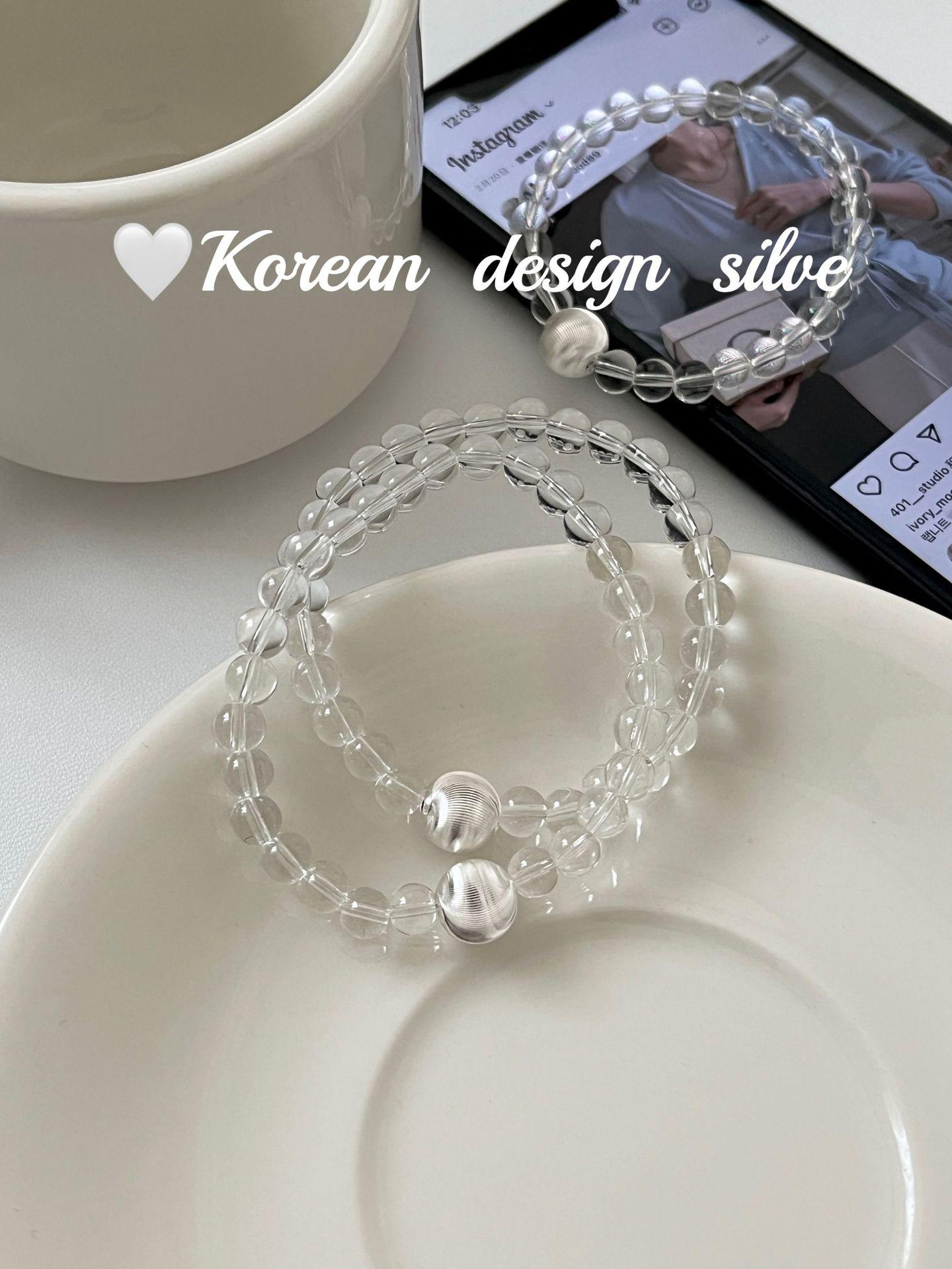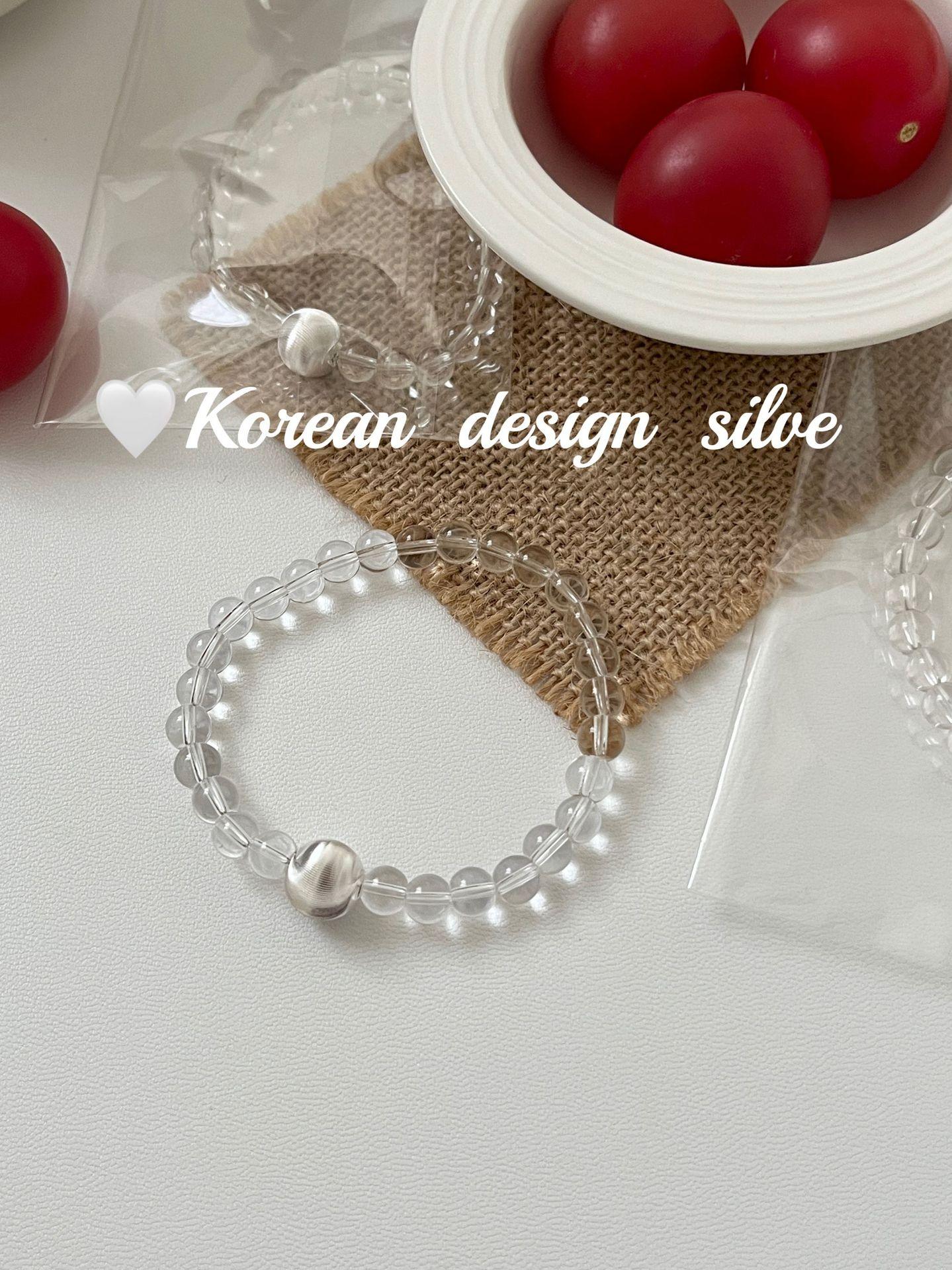Corea del Sur estilo ins Simple Nicho Estilo de Alta Gama Joyería de Mano Plata de Ley S925 Cuentas de Flores de Coche Cristal Pulsera Cepillada Combinable