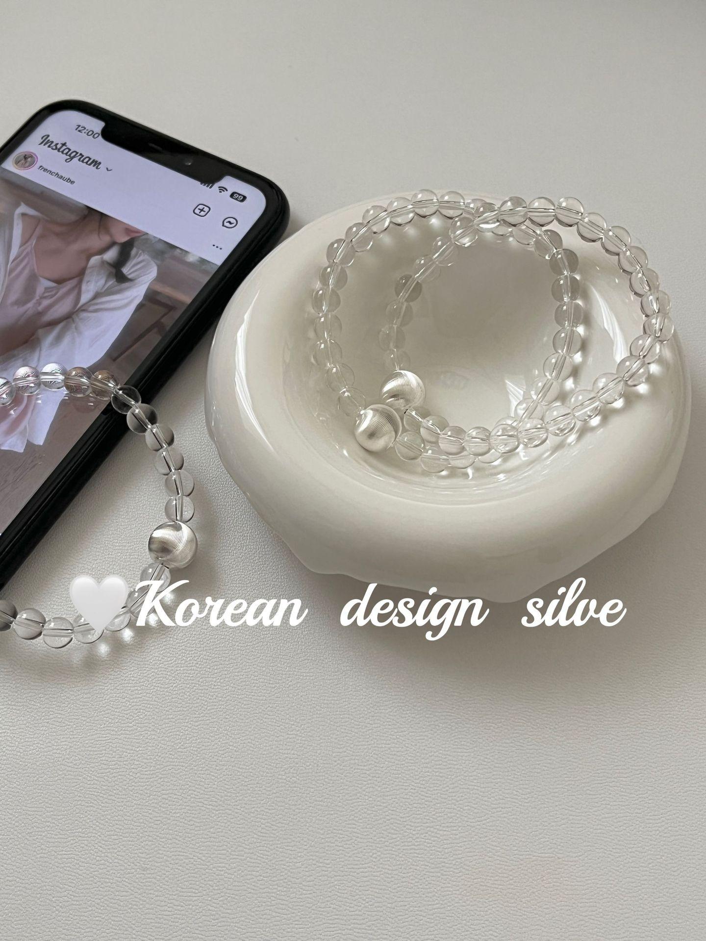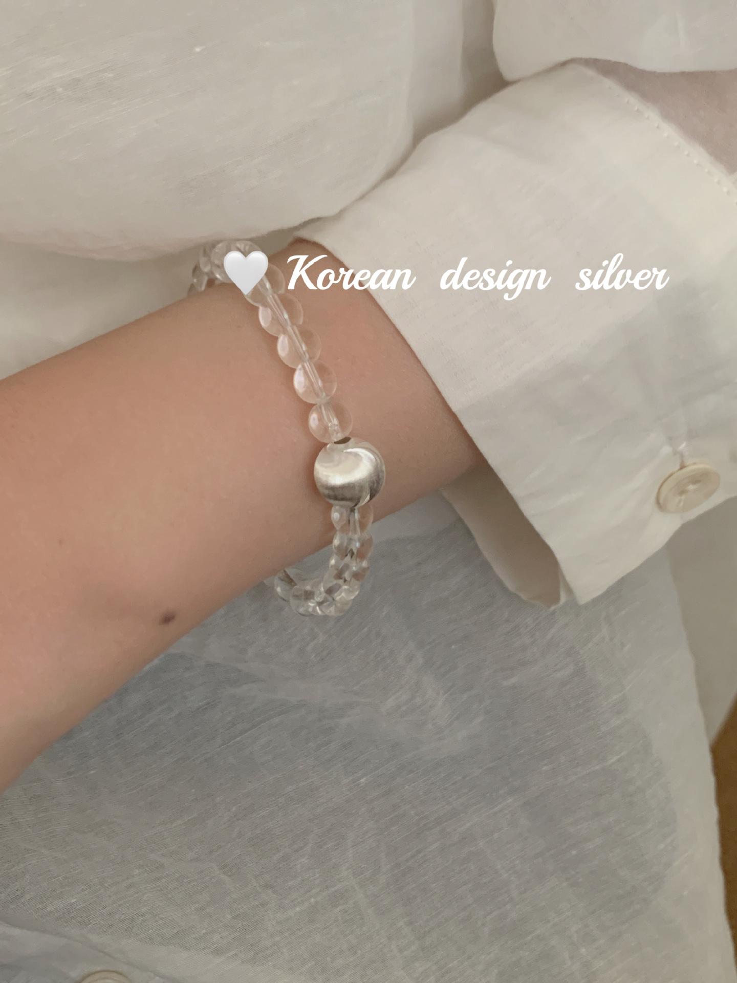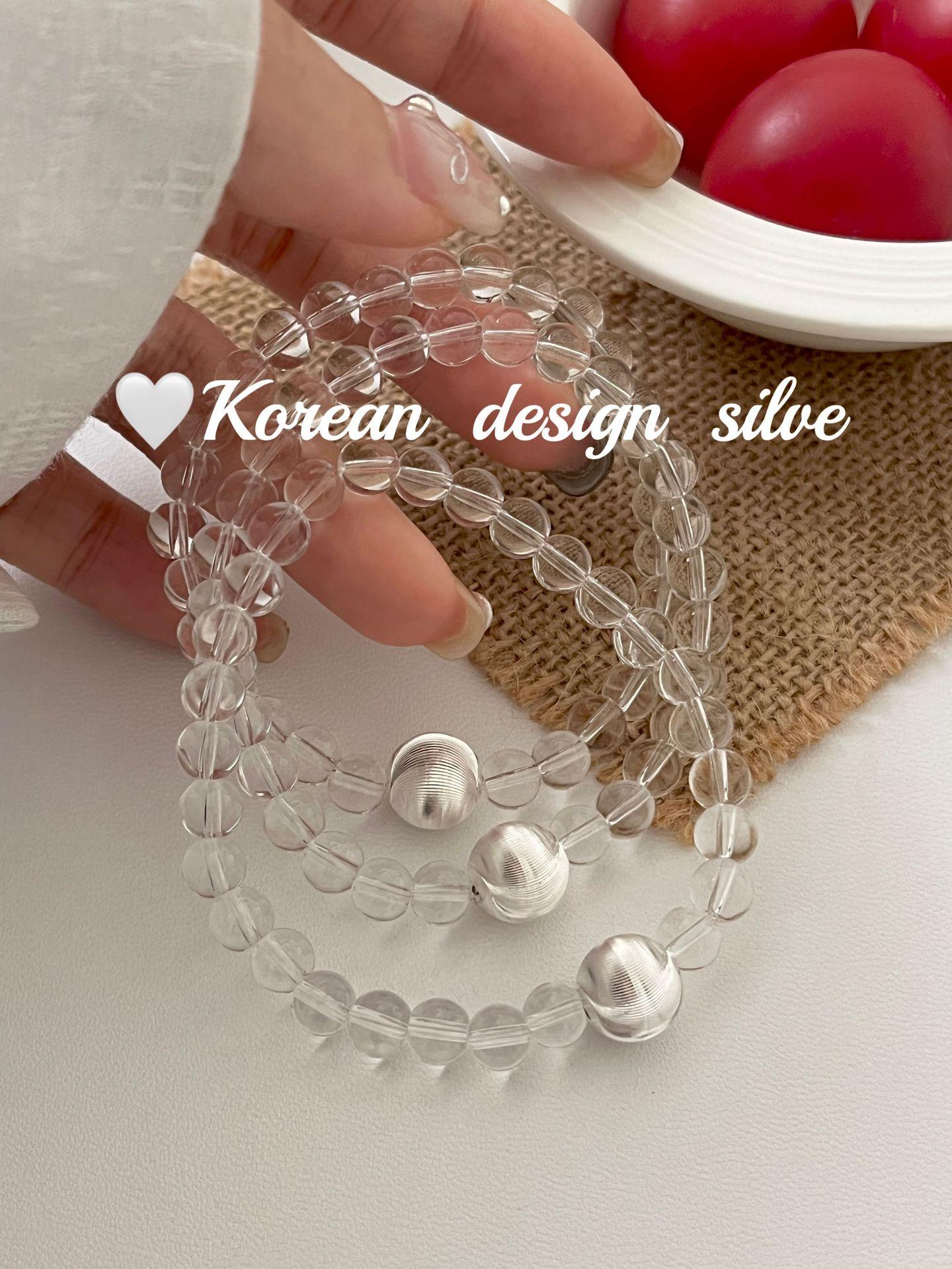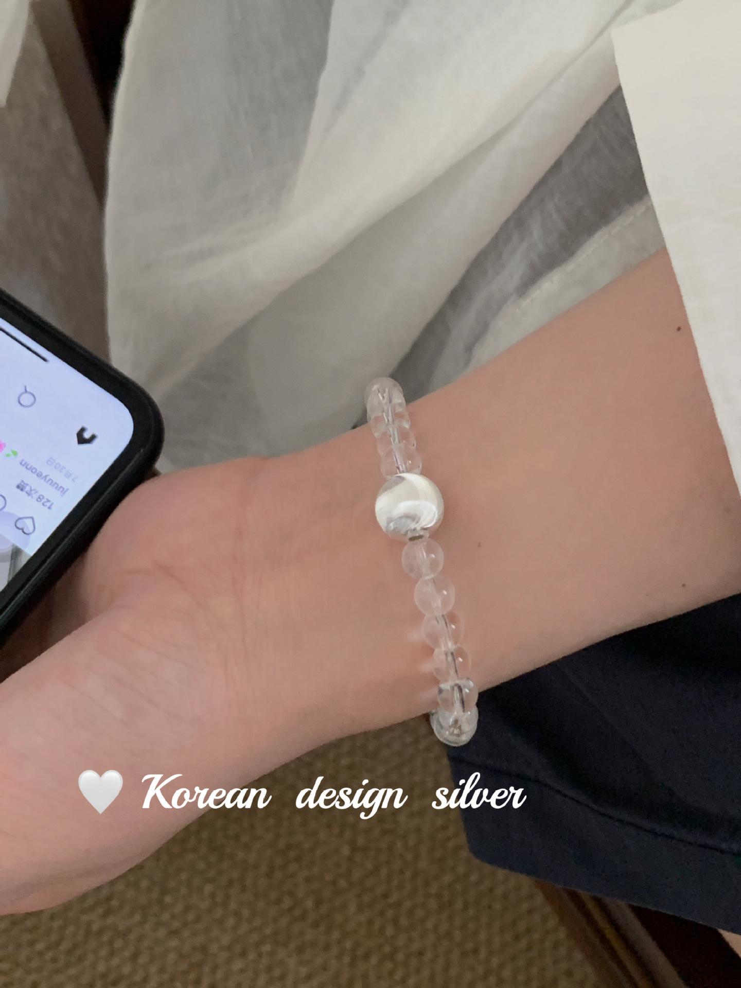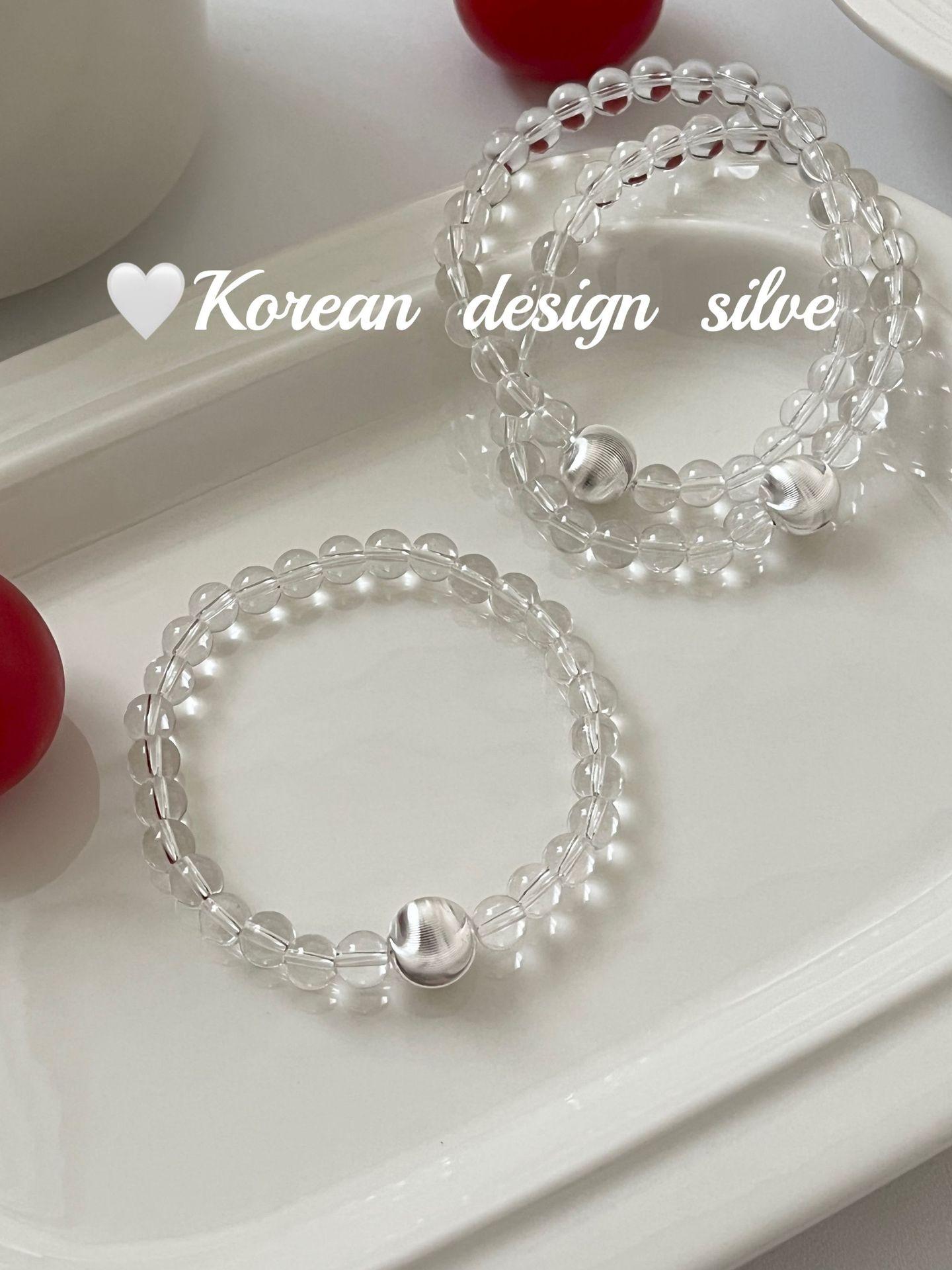 Corea del Sur estilo ins Simple Nicho Estilo de Alta Gama Joyería de Mano Plata de Ley S925 Cuentas de Flores de Coche Cristal Pulsera Cepillada Combinable