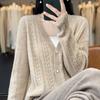 Cárdigan de punto fino calado de manga larga con cuello en V para mujer, otoño nuevo, ropa de mujer, corte entallado, top versátil, abrigo pequeño