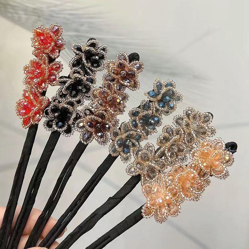 Plancha para el cabello con temperamento de estilo coreano, cabeza de bola, versátil, rosa, pedrería, tarjeta para el cabello perezoso, tocado, palito para el cabello, artefacto femenino