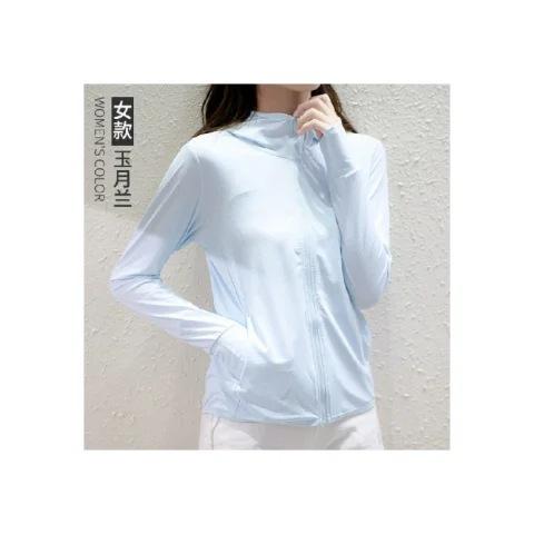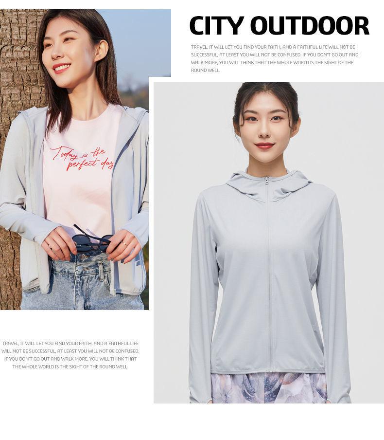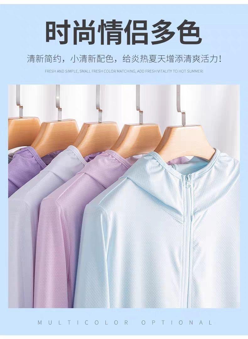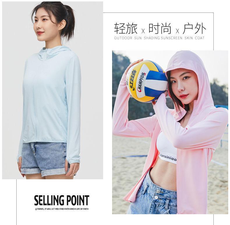 Ropa de protección solar con capucha de seda de hielo para mujer, camisa ligera de manga larga de verano con protección solar, parasol, antiultravioleta, transpirable, con cremallera