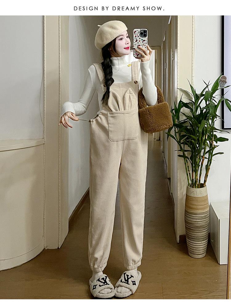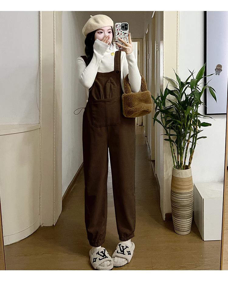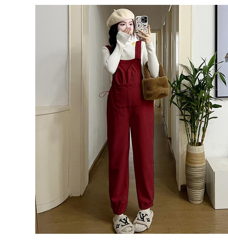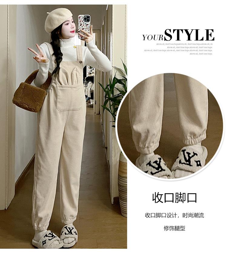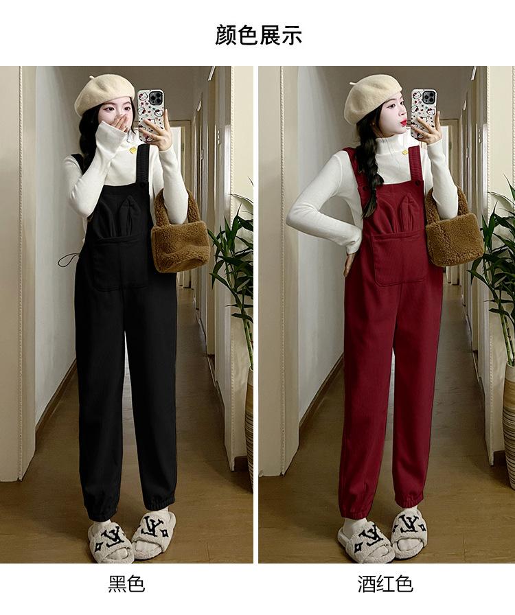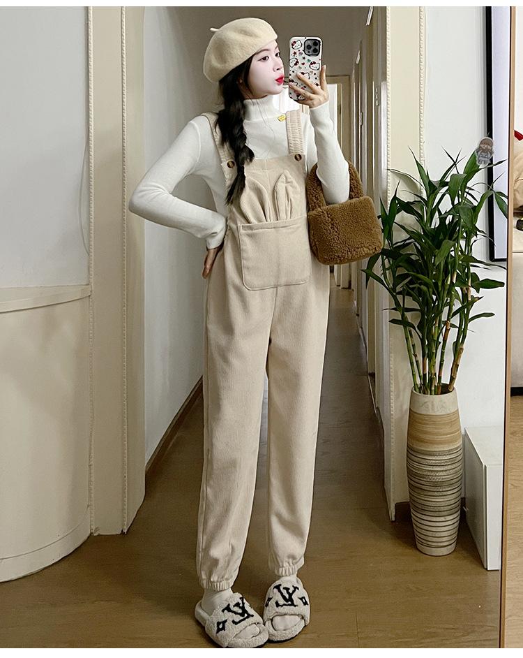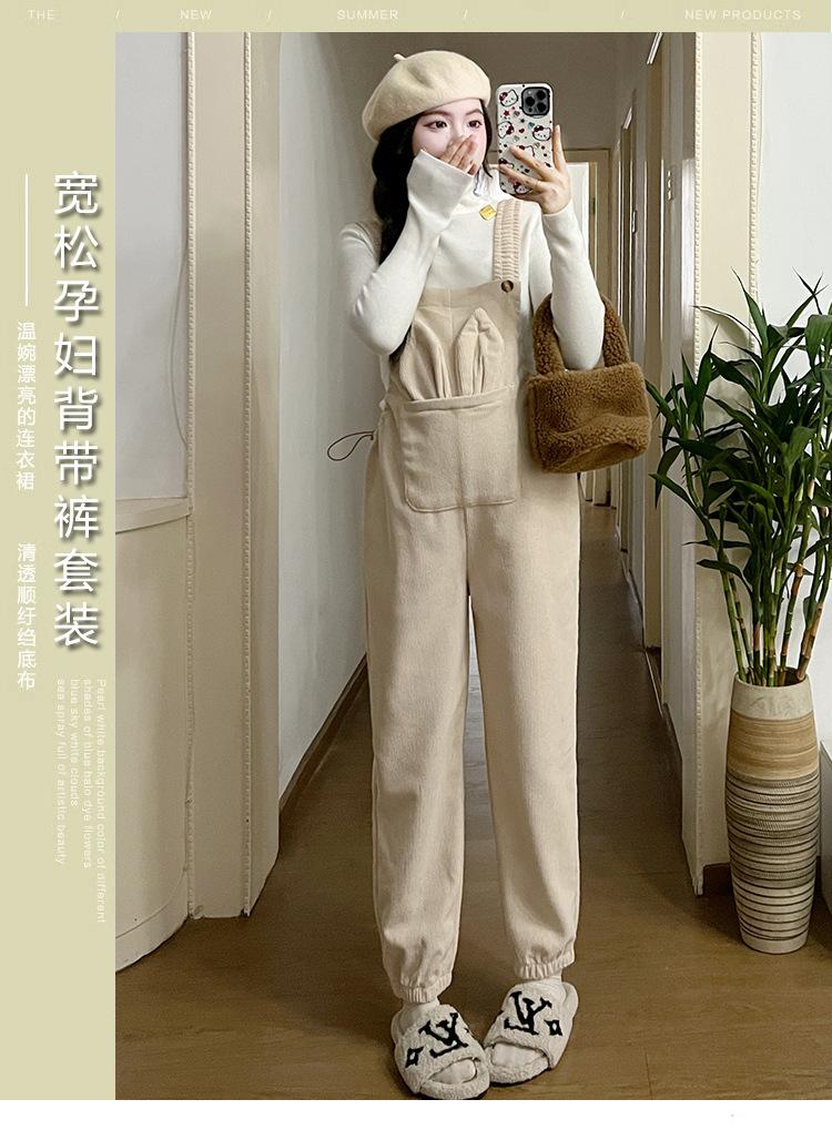 En stock 2024 Invierno Nuevo Super Grueso Terciopelo Zorro Plateado Mameluco para Mujeres Embarazadas Pantalones Casuales Holgados Traje para Mujeres Embarazadas