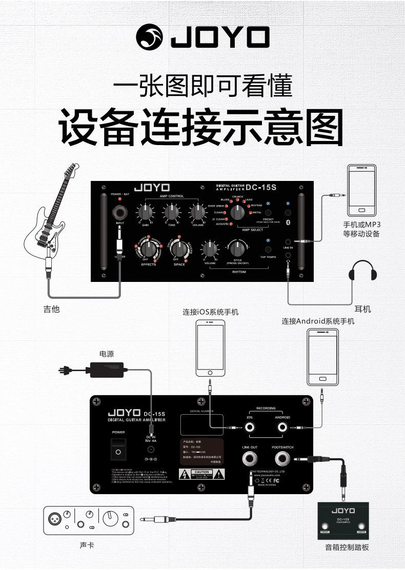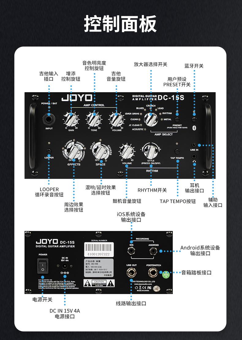 Amplificador Acústico Eléctrico Joyo Dc1515S/30 Loop Bluetooth Caja de Ritmos Efectos Audio Guitarra Eléctrica