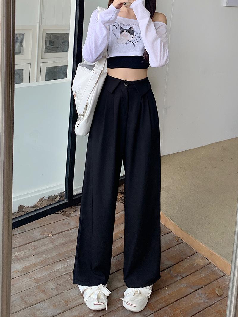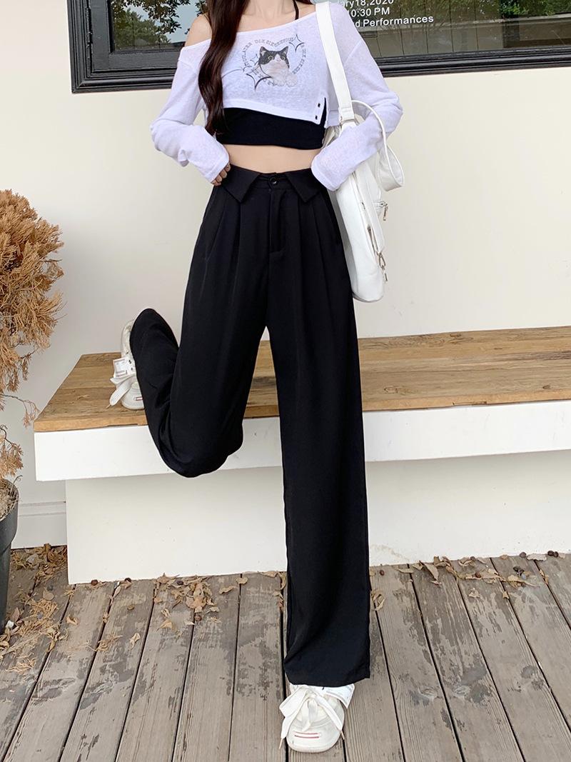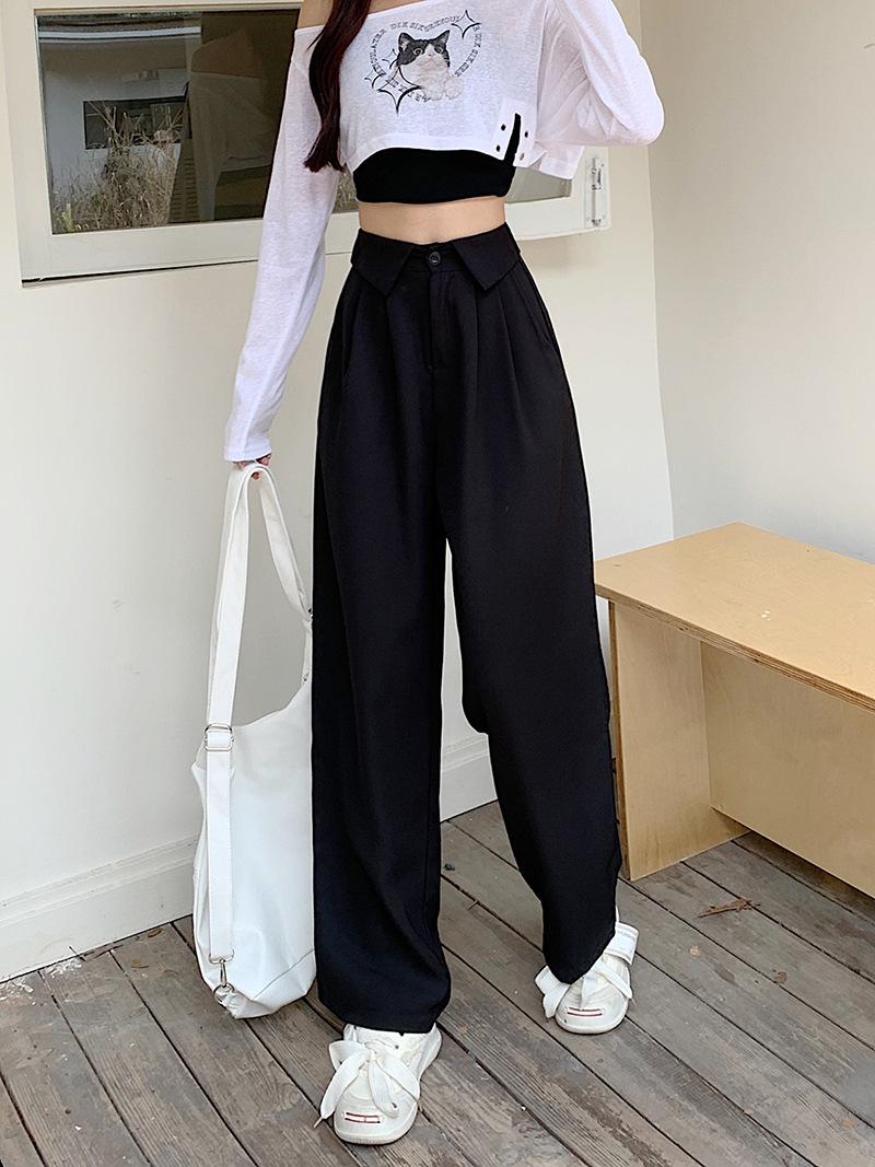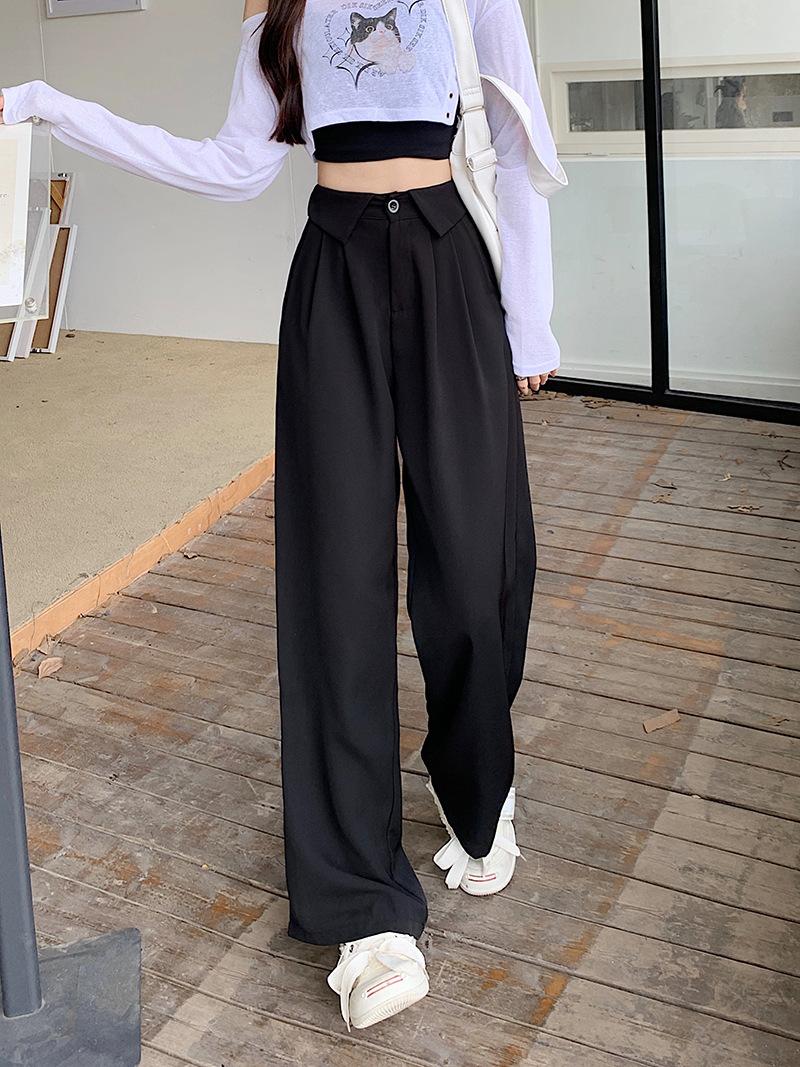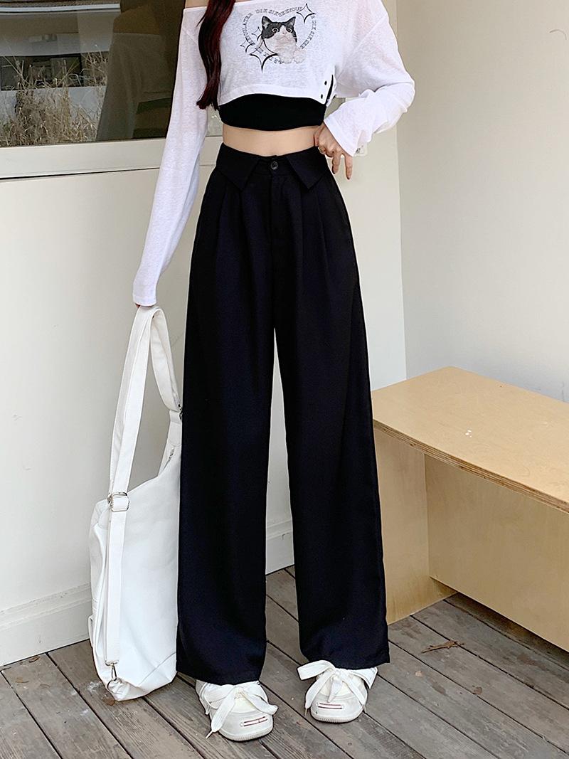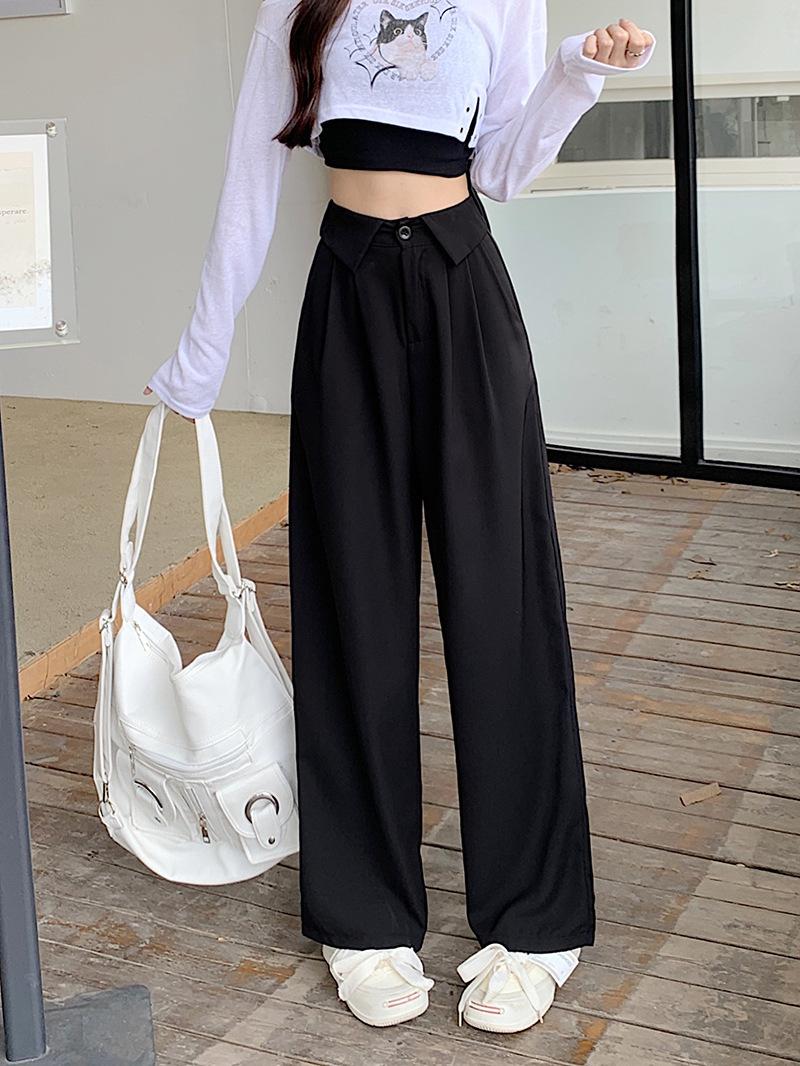 Pantalones casuales negros de cintura alta y adelgazantes para mujer, de primavera y otoño, holgados, combinables, de estilo nuevo, con pierna recta, pantalones de fregona.