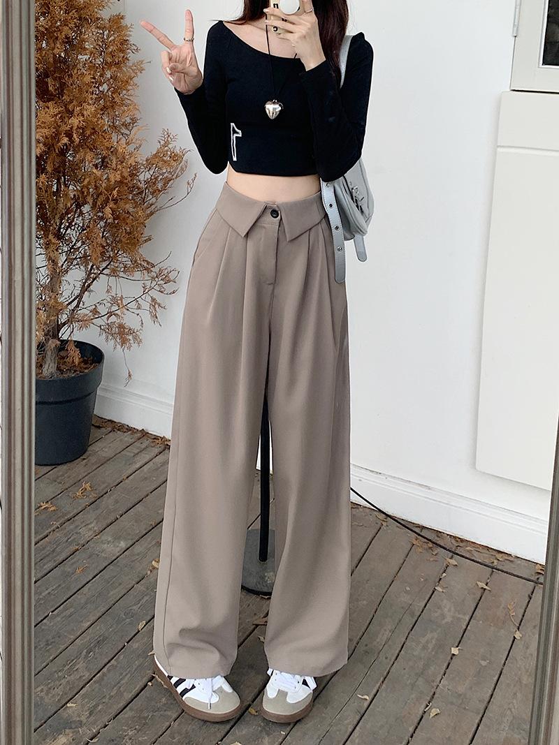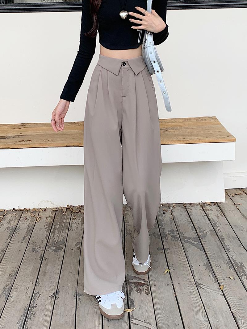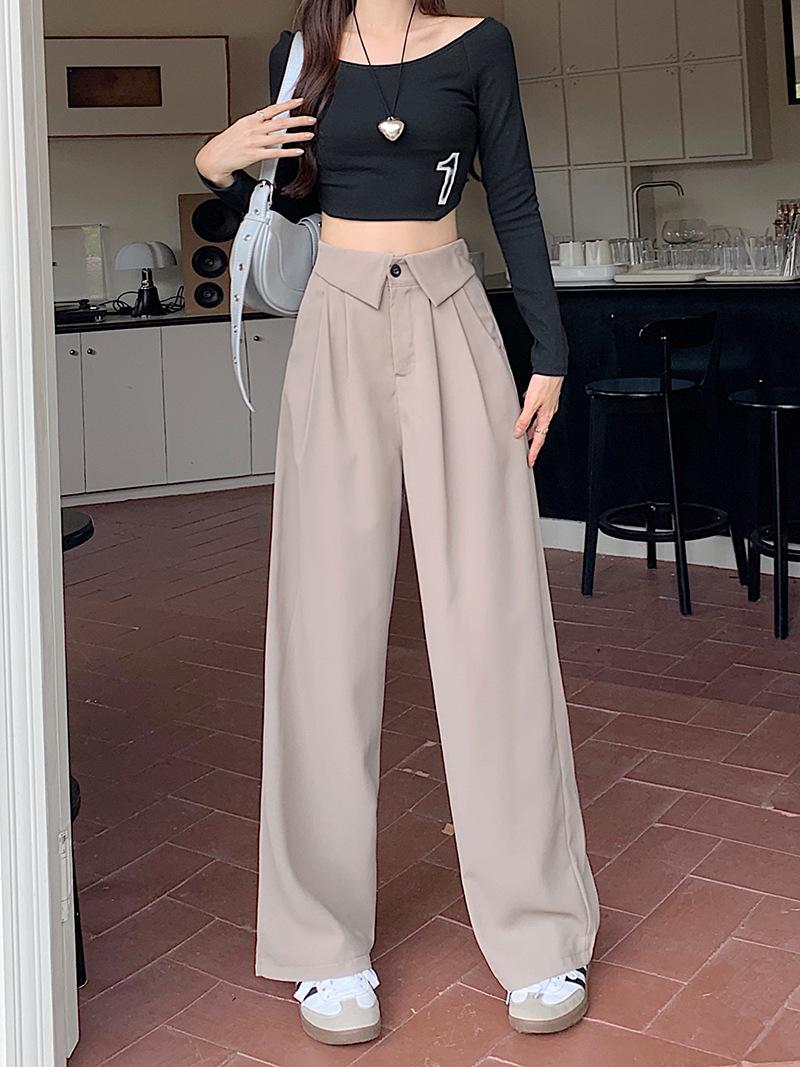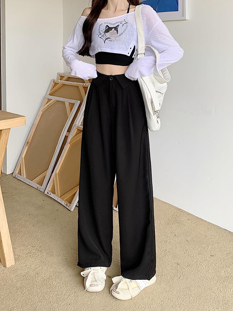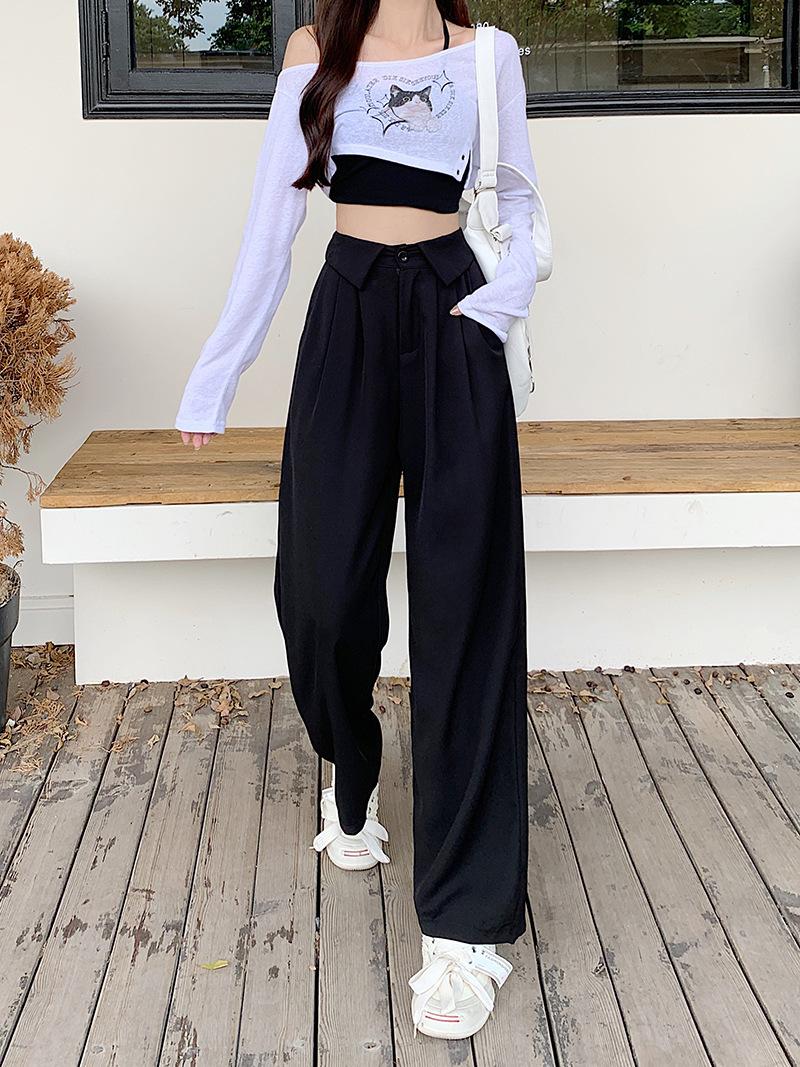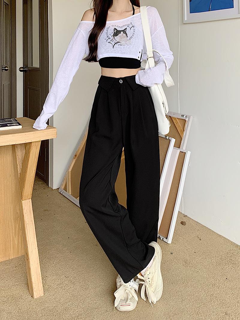 Pantalones casuales negros de cintura alta y adelgazantes para mujer, de primavera y otoño, holgados, combinables, de estilo nuevo, con pierna recta, pantalones de fregona.