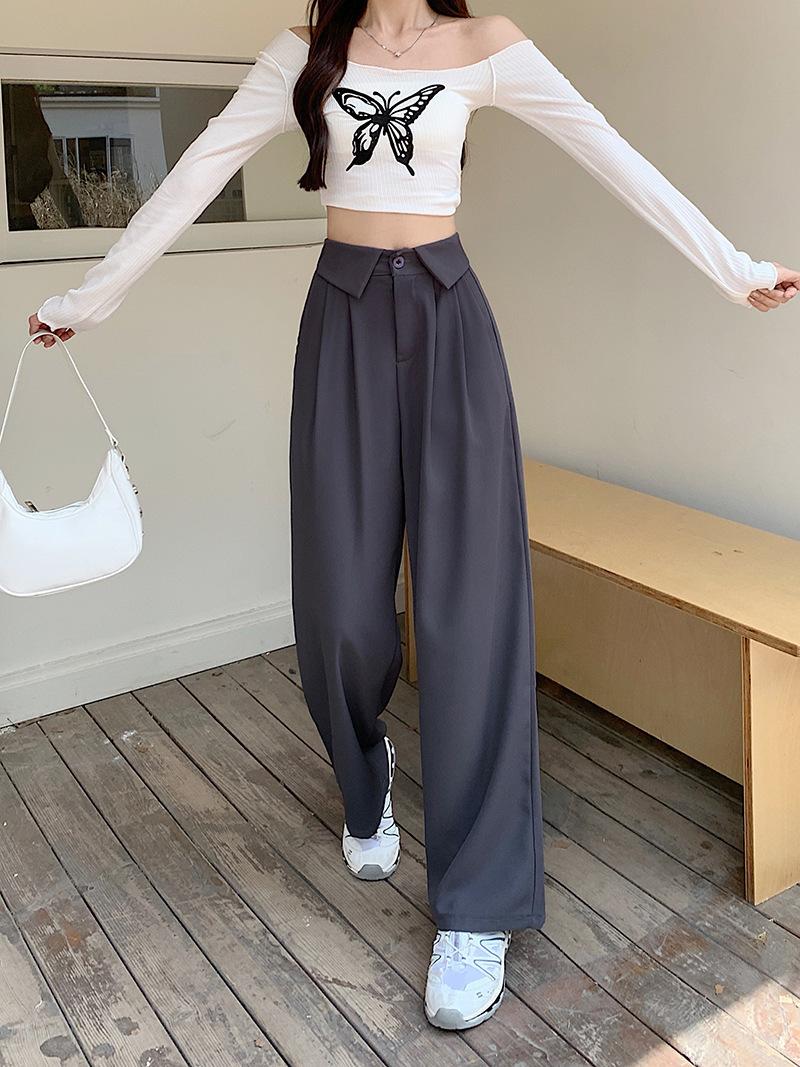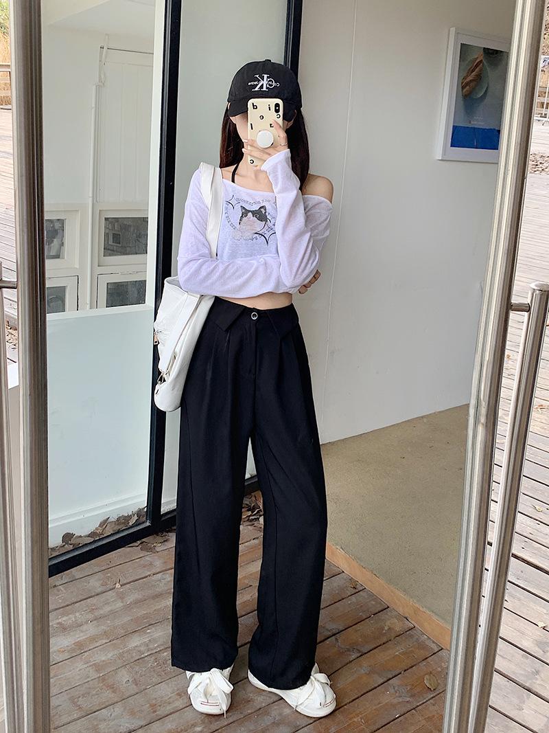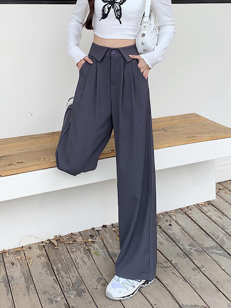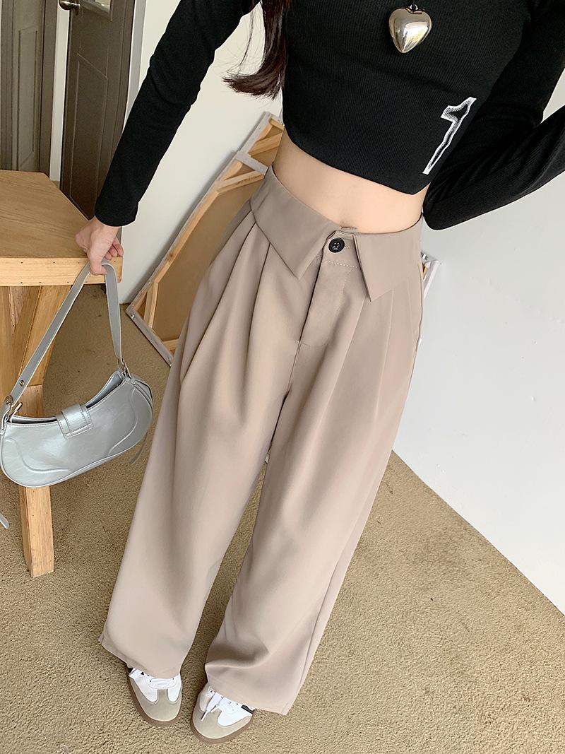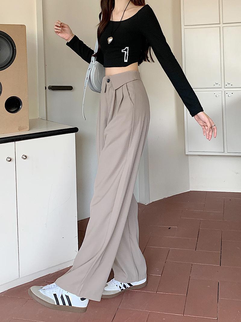 Pantalones casuales negros de cintura alta y adelgazantes para mujer, de primavera y otoño, holgados, combinables, de estilo nuevo, con pierna recta, pantalones de fregona.