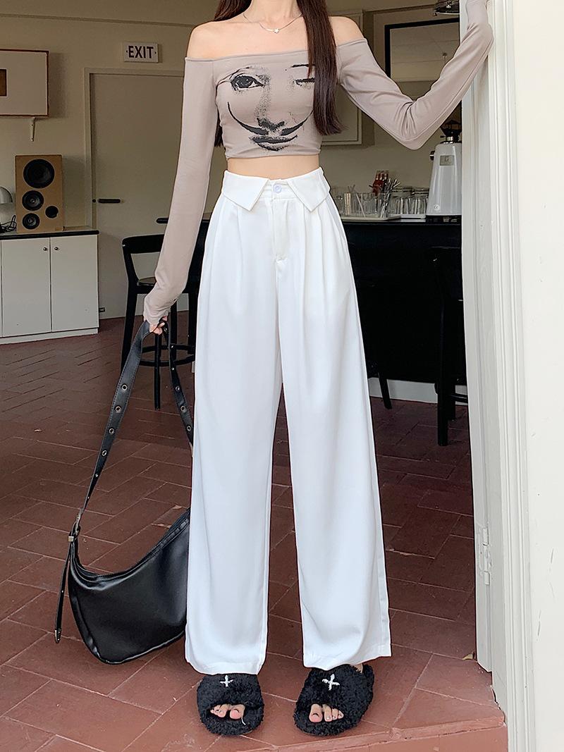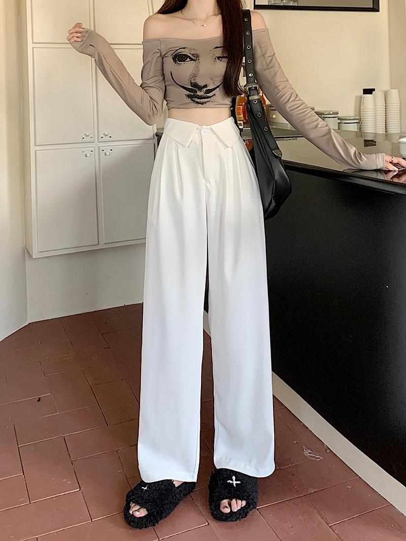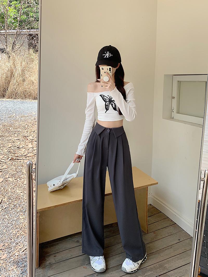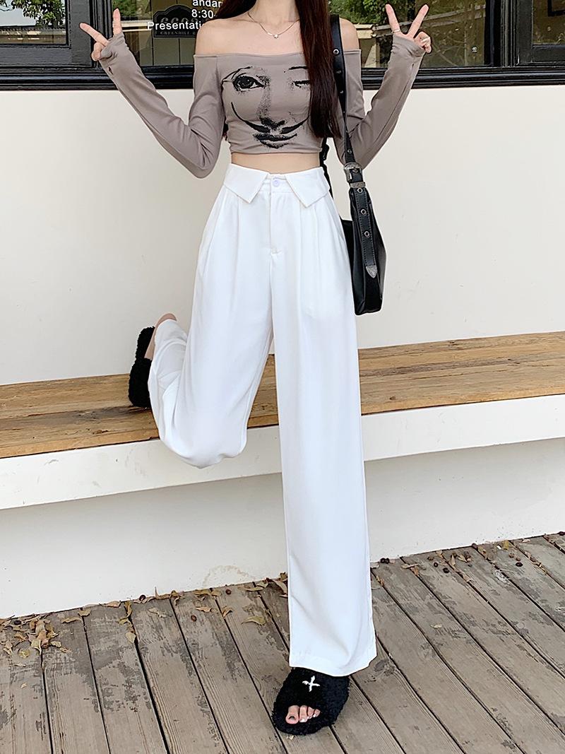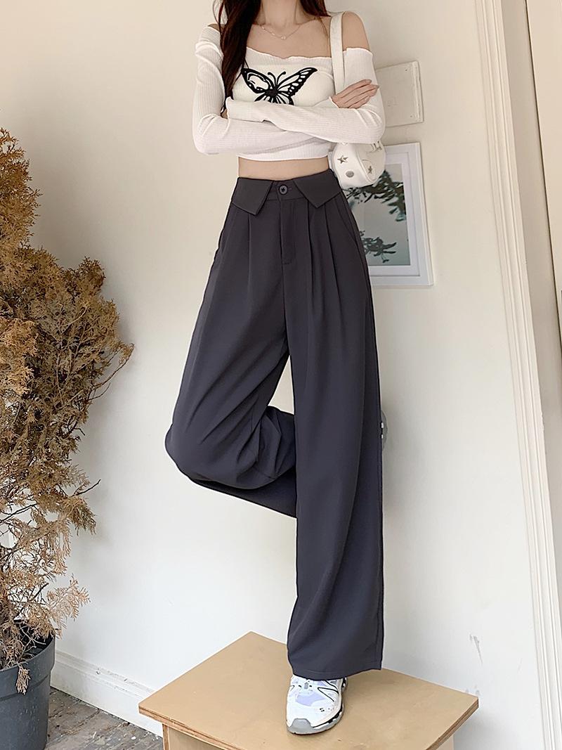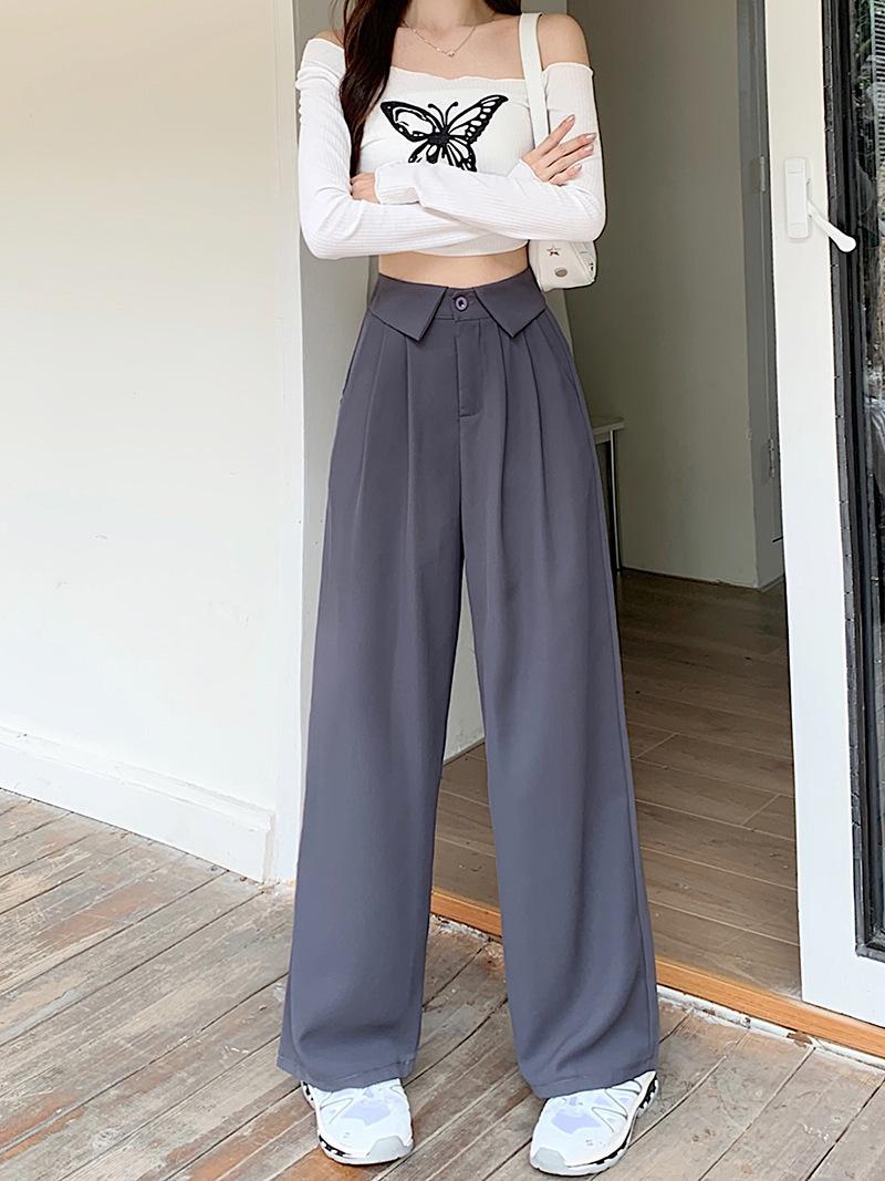 Pantalones casuales negros de cintura alta y adelgazantes para mujer, de primavera y otoño, holgados, combinables, de estilo nuevo, con pierna recta, pantalones de fregona.
