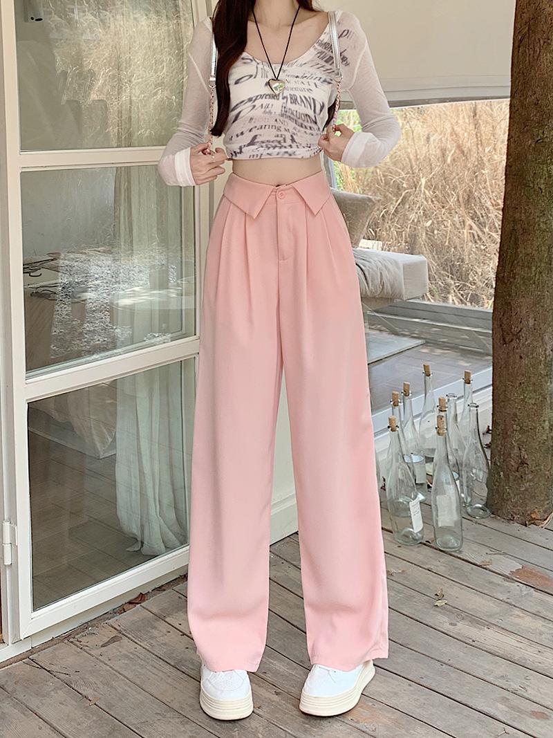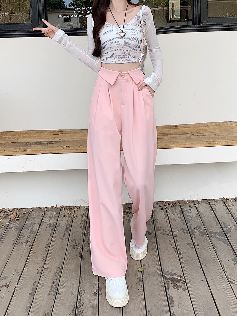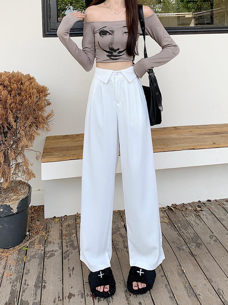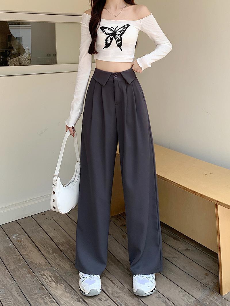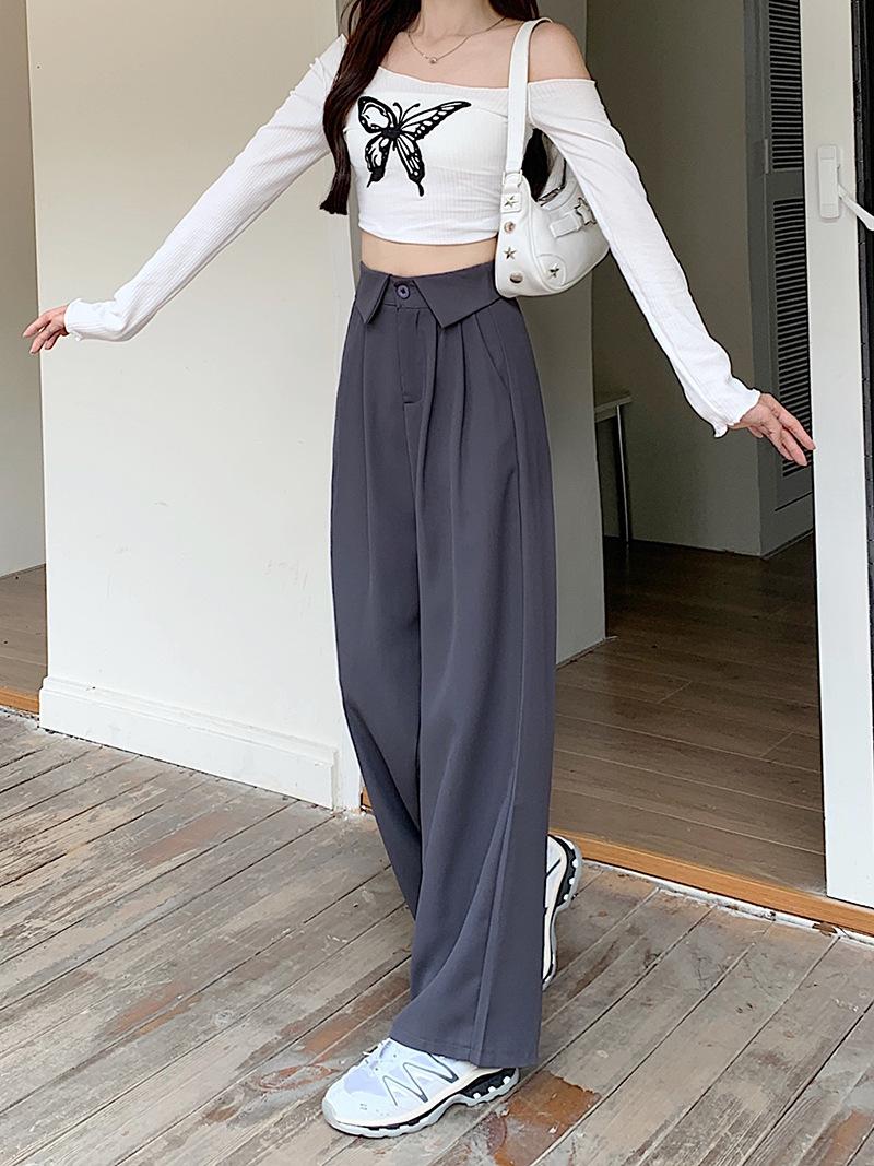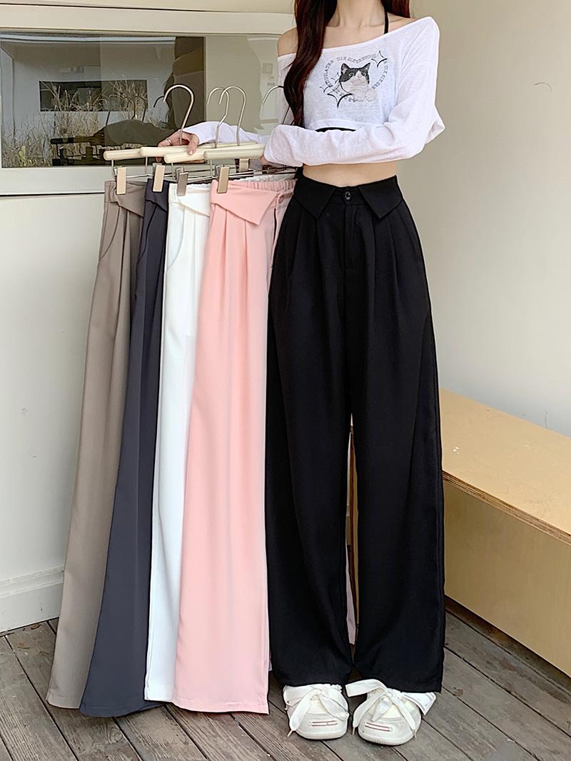 Pantalones casuales negros de cintura alta y adelgazantes para mujer, de primavera y otoño, holgados, combinables, de estilo nuevo, con pierna recta, pantalones de fregona.