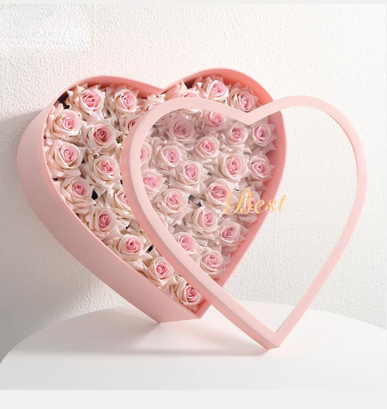 Caja vacía de regalo con forma de corazón, impermeable, con dos flores y frutas, ideal para San Valentín, ramo de rosas y arreglos florales.