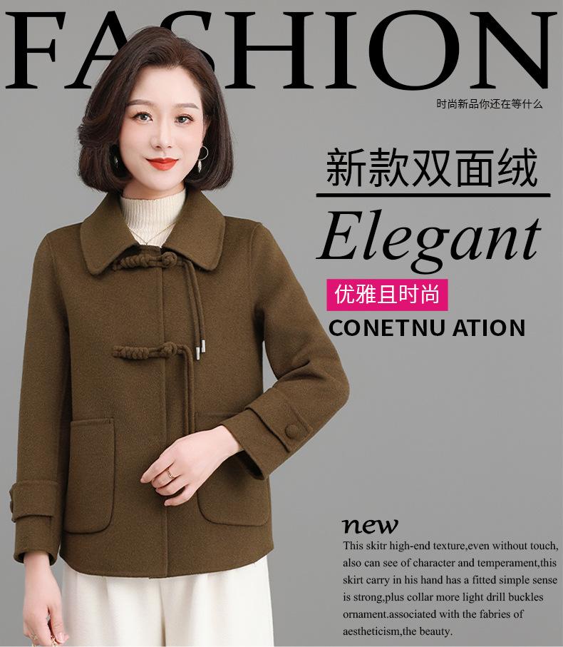 Abrigo de lana de doble cara de alta gama para madre de mediana edad, abrigo corto sin cachemira para otoño, vestido de novia para suegra.