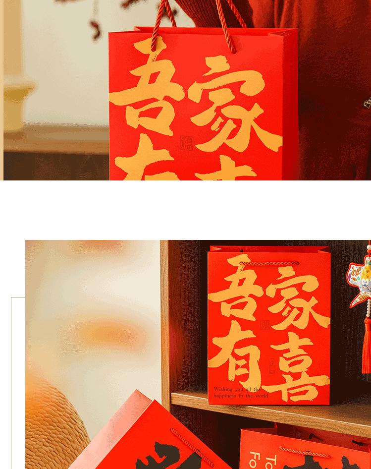 Bolsa de Regalo de Año Nuevo Bolsa de Regalo Festival de Primavera Bolso de Mano Rojo Retro Simple Regalo de Acompañamiento Bolsa Festiva