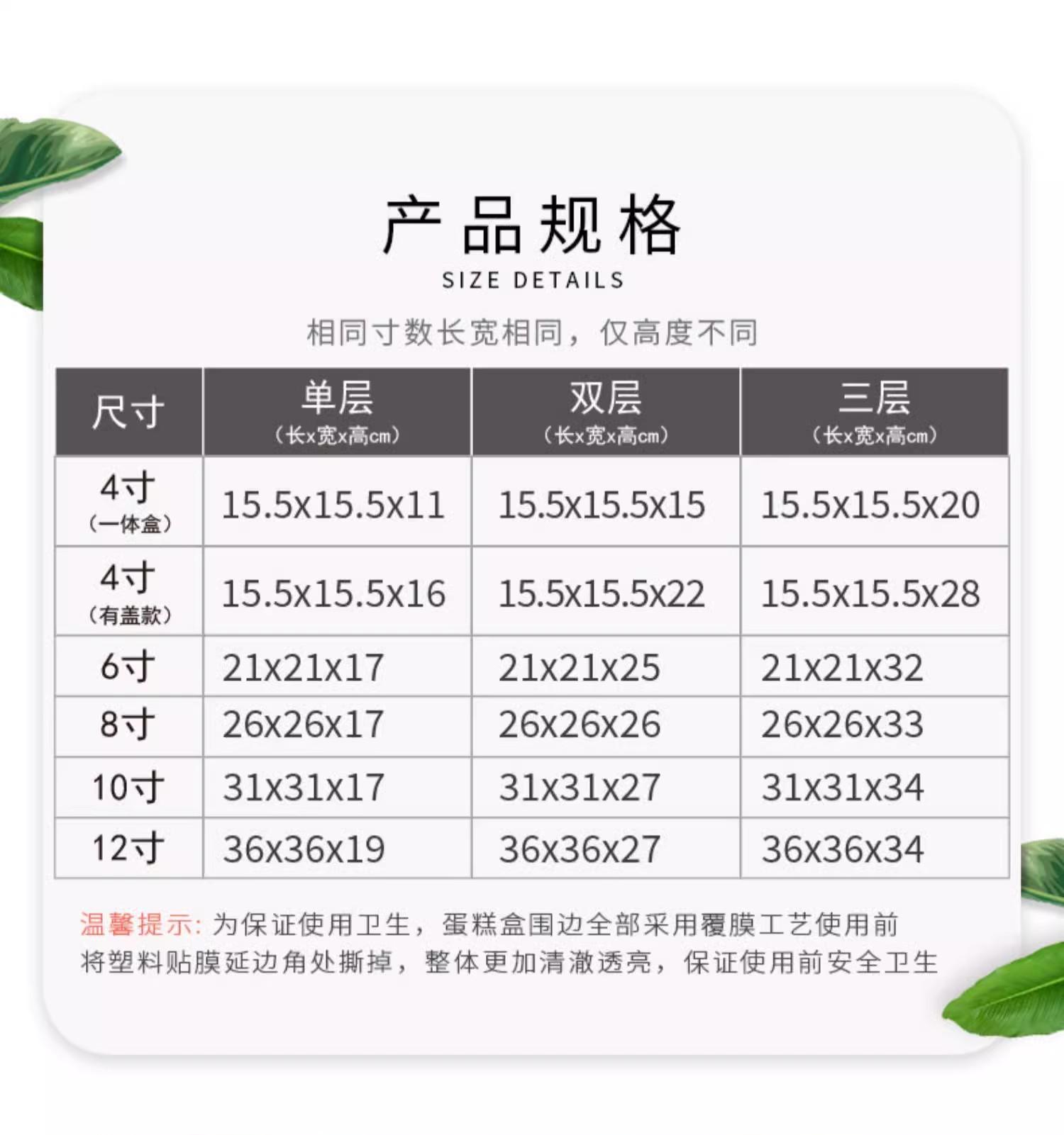 Caja Transparente para Pastel 4 Pulgadas 6 Pulgadas 8 Pulgadas 10 Pulgadas Capa Sencilla Doble Altura Aumentada y Engrosada Caja de Embalaje para Hornear para Cumpleaños Venta al Por Mayor