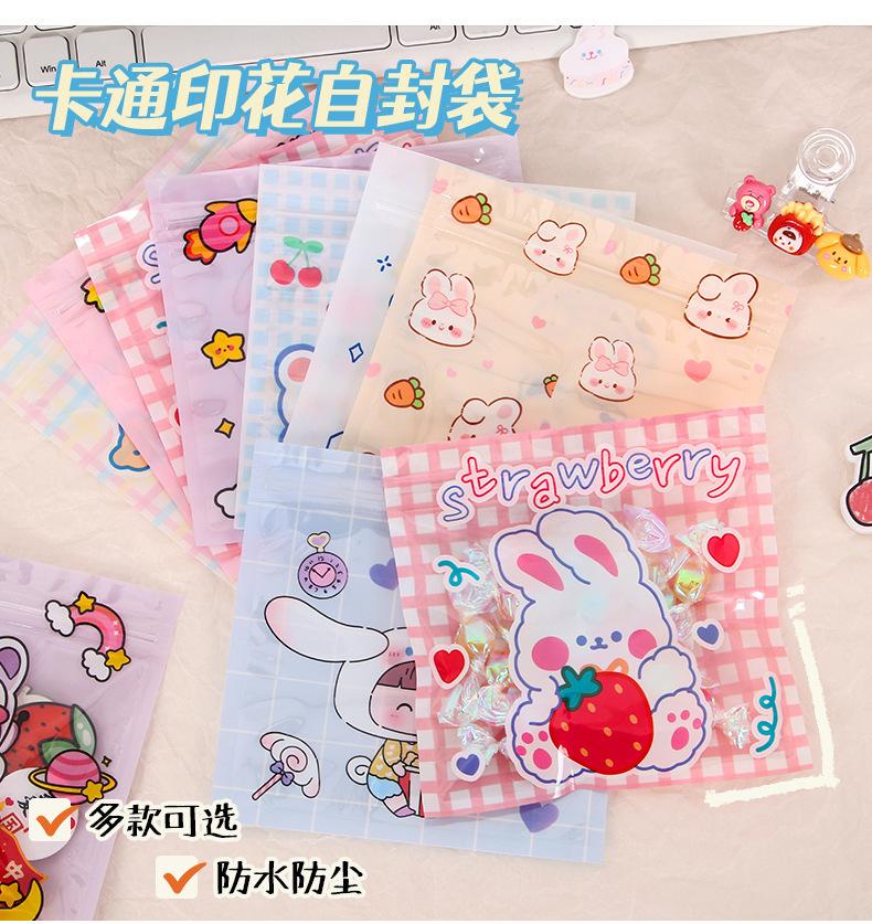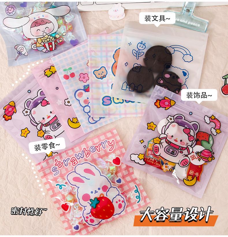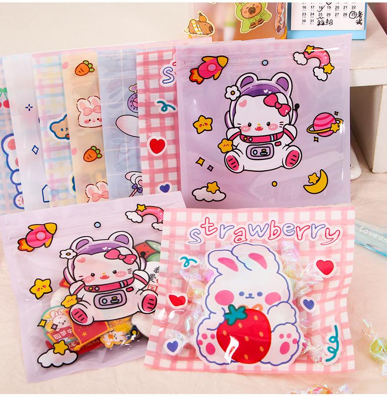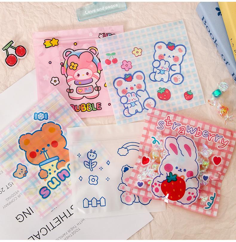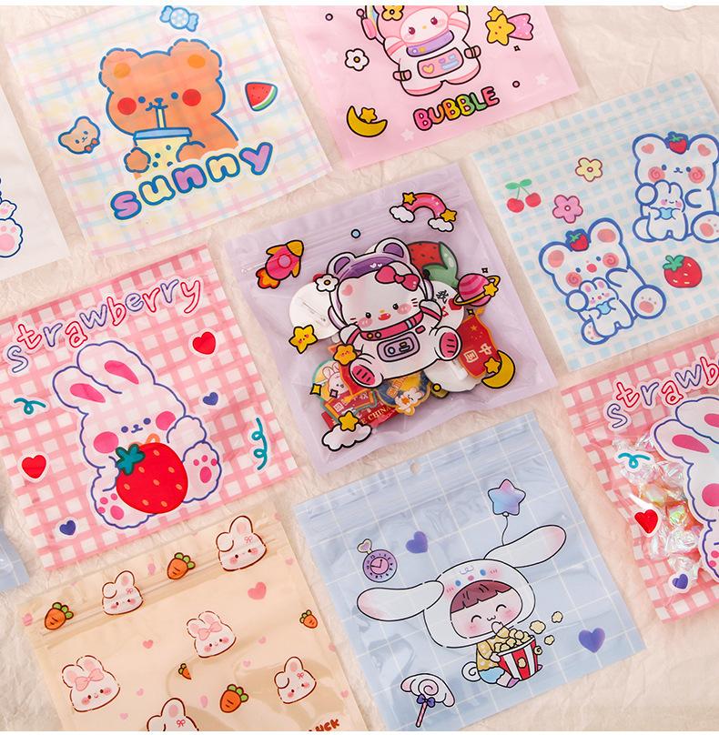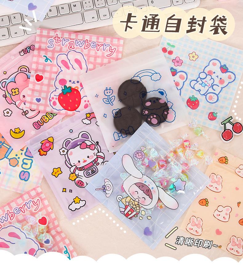 Bolsa de plástico con cierre hermético de dibujos animados, pequeña, para guardar galletas, aperitivos y joyas.