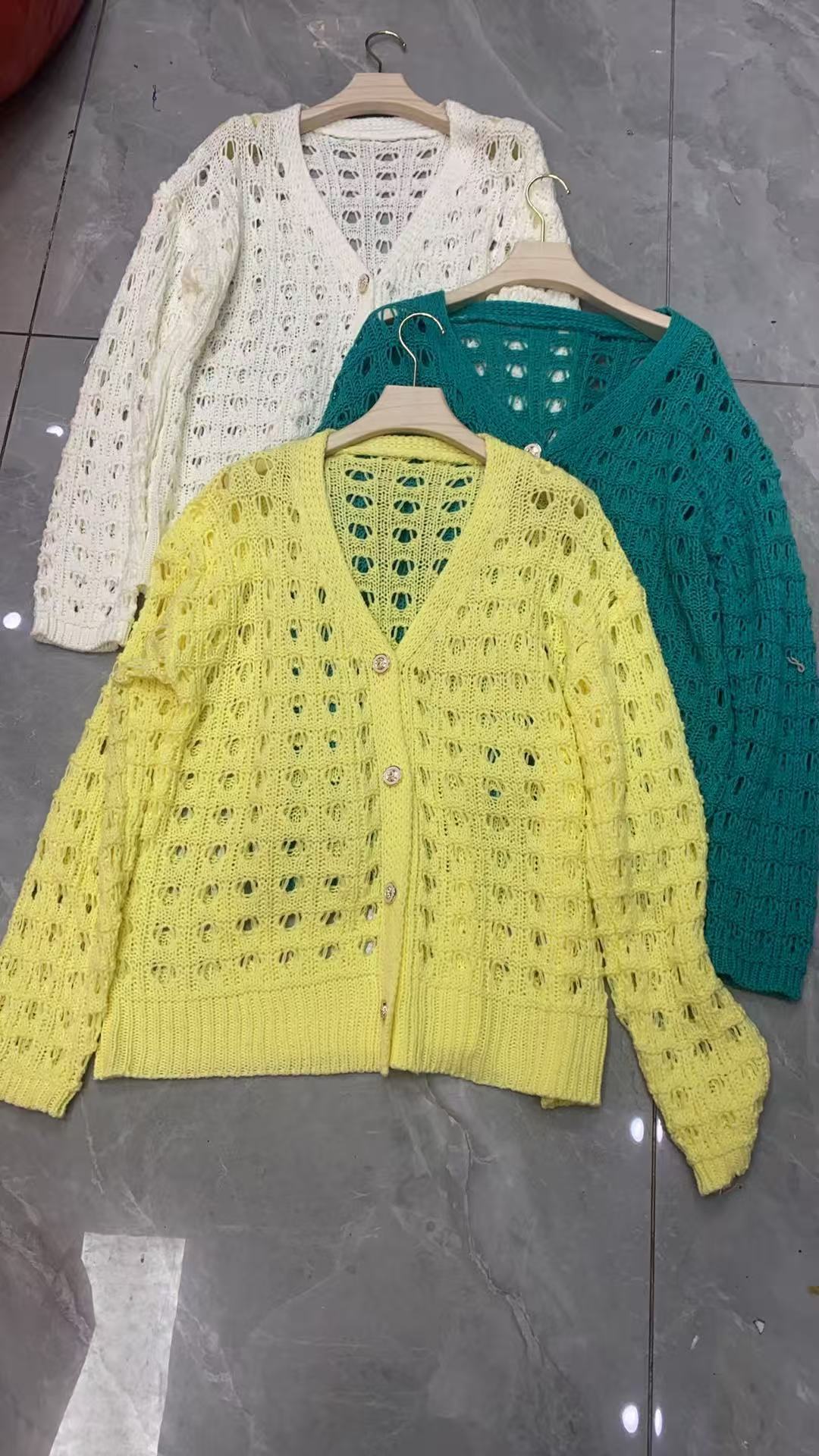 Suéter holgado de punto hueco de comercio exterior para mujer, otoño 2025, nuevo cárdigan retro de manga larga