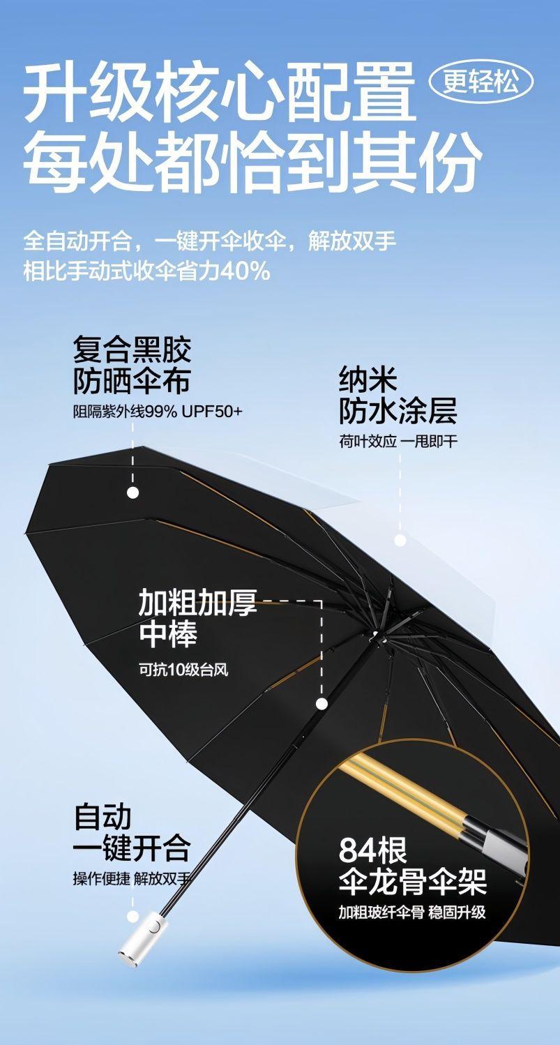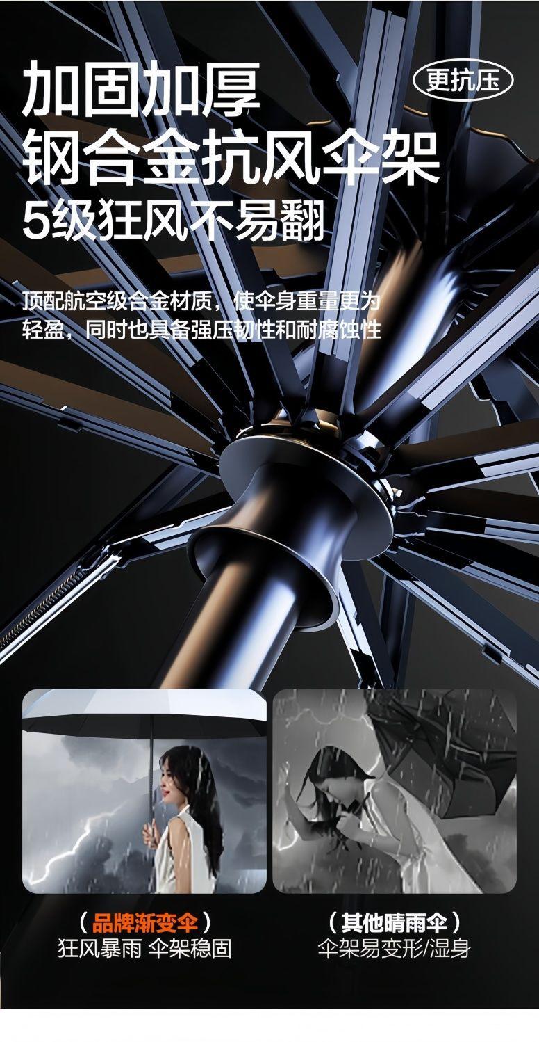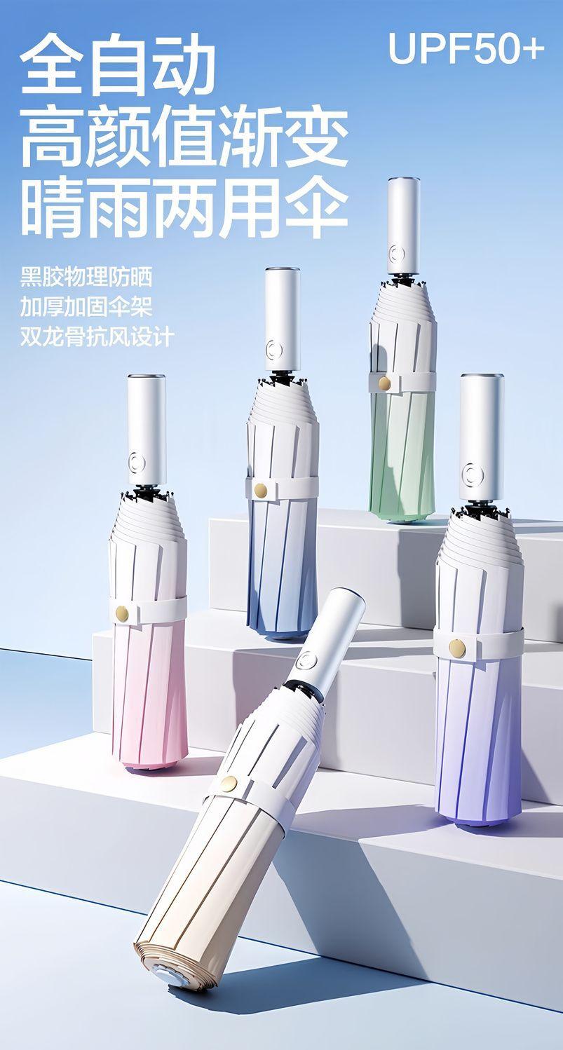 Paraguas degradado de alta calidad para mujer, paraguas de goma negro triple plegable, protector solar, protección UV, ideal para días soleados y lluviosos.