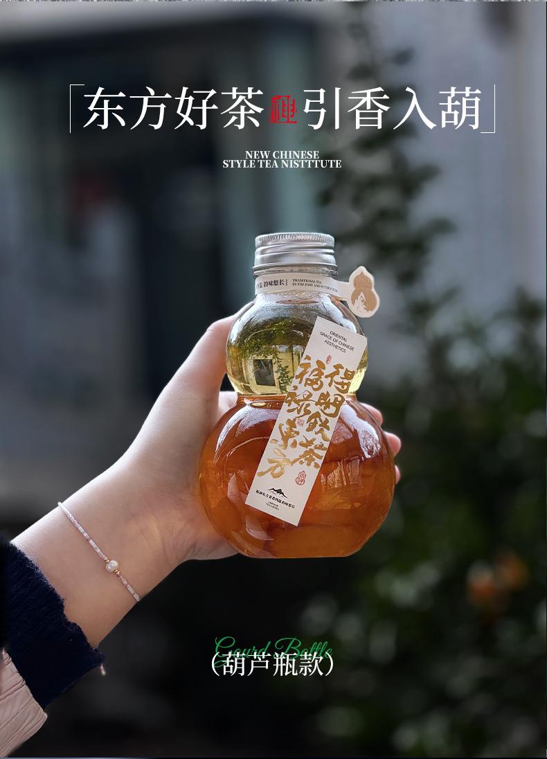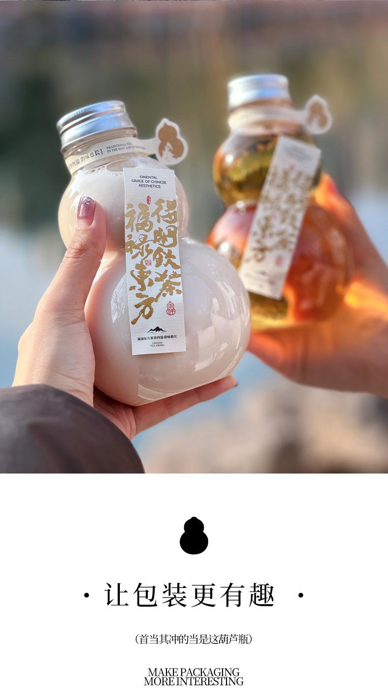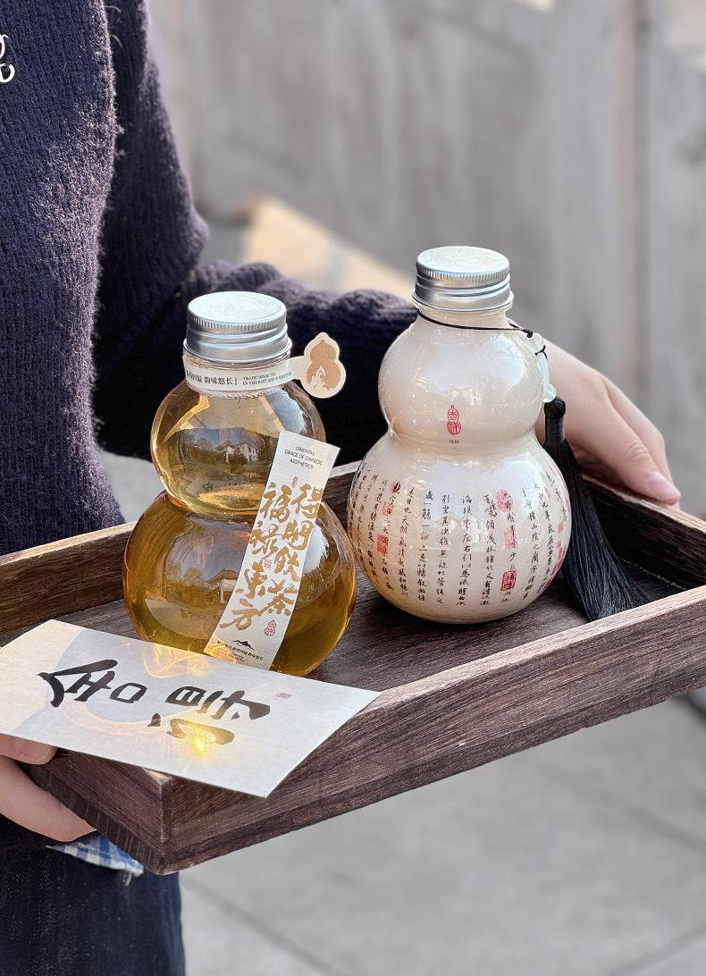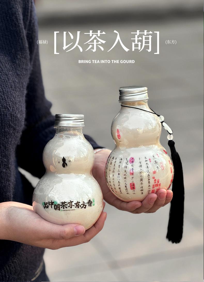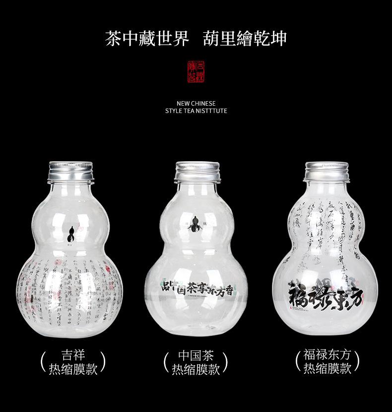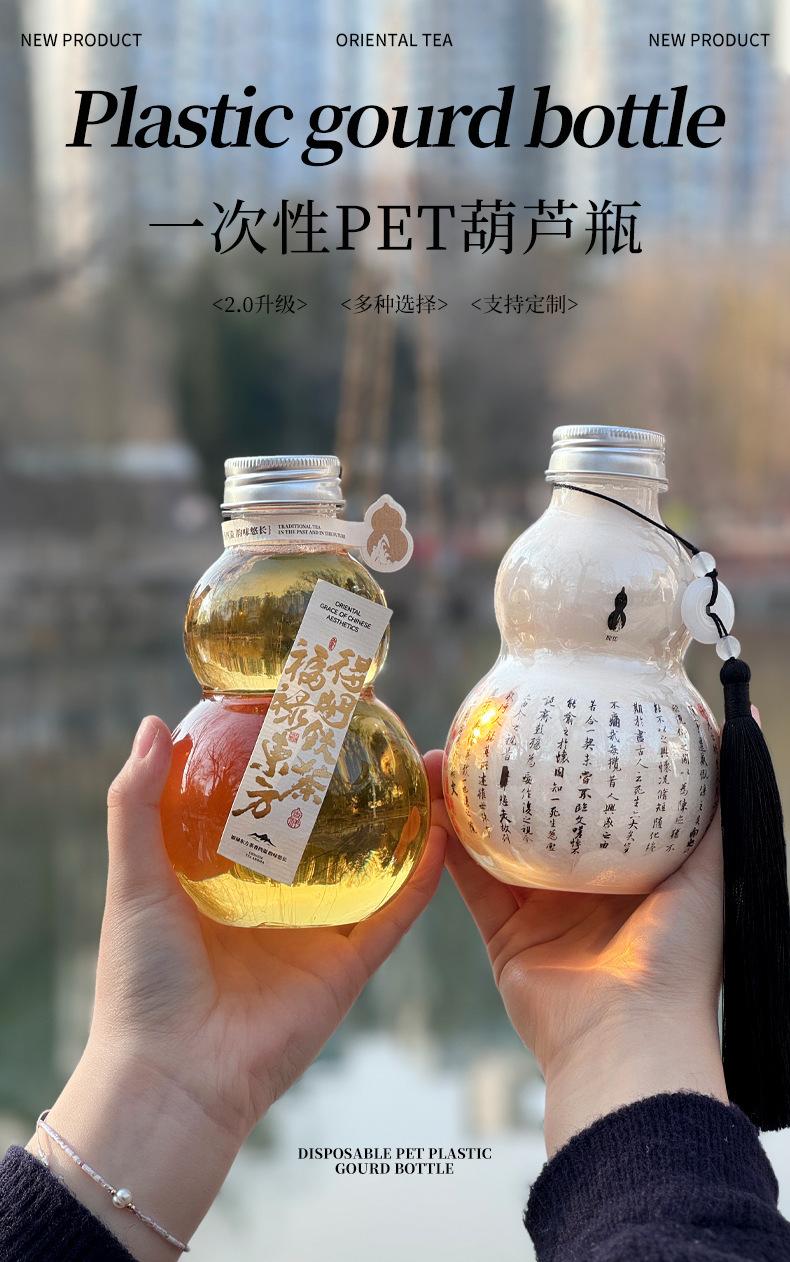 Botella de plástico transparente desechable con forma de calabaza de 500 ml para bebidas frías, té con leche y tapa. Guofeng