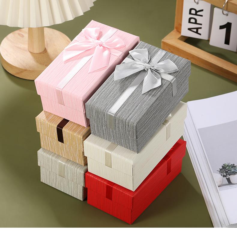 Nueva caja de regalo rectangular con diseño de cielo y tierra para cumpleaños y vacaciones, caja de regalo de papel simple, caja de embalaje con lazo para regalo