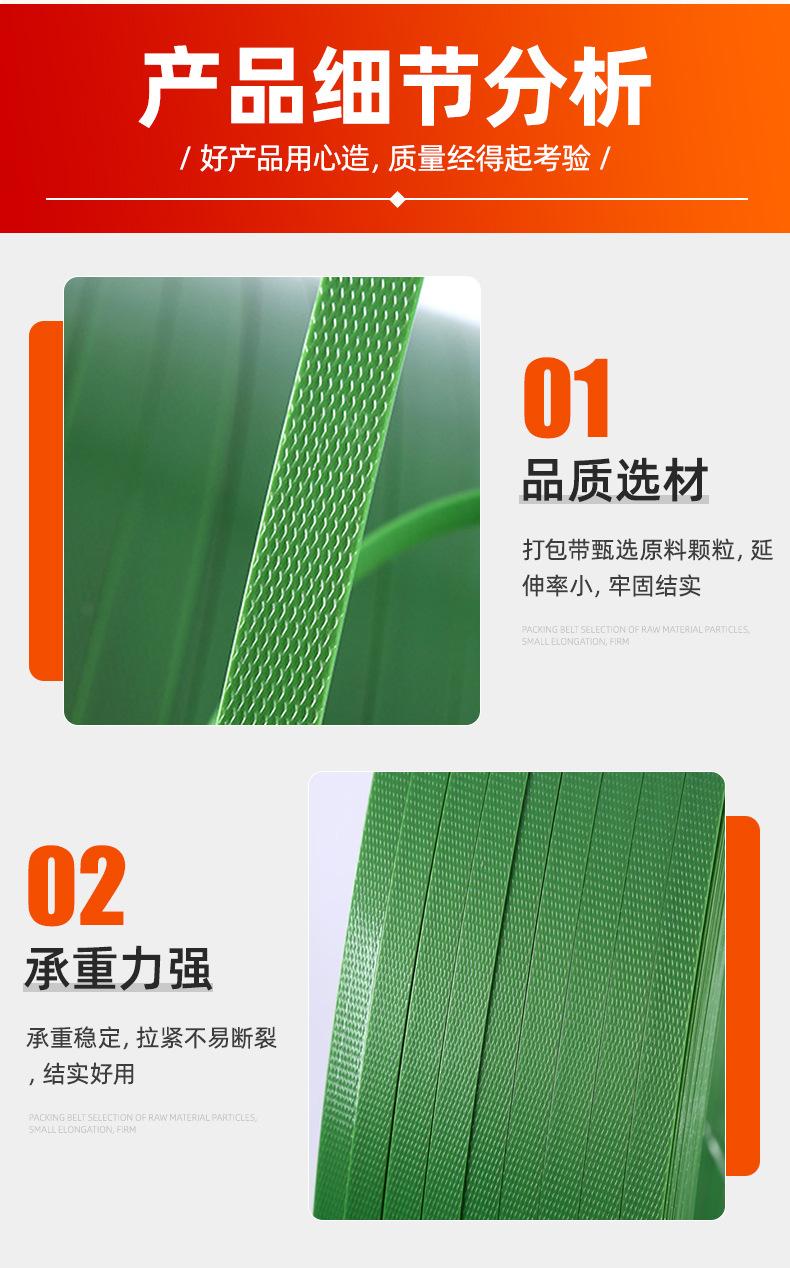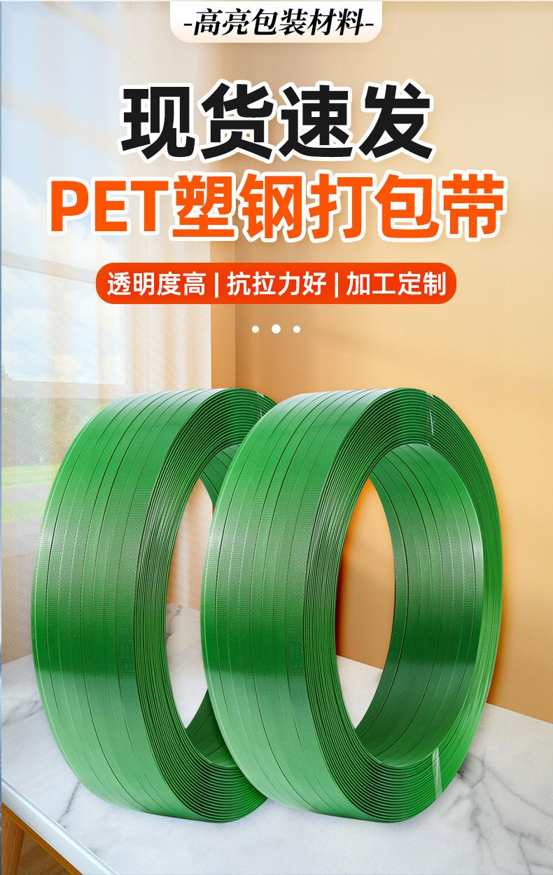 Cinta de embalaje de acero y plástico para máquinas de venta al por mayor, 1608, cinta de acero y plástico PET verde, cinta de unión por fusión en caliente, cinta de embalaje para transporte de carga