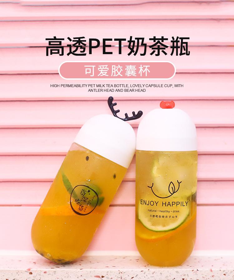 Botella de cápsula de leche fresca Lanxiong, PET transparente, desechable, para té con leche y taza, de alto valor de color, bonita botella para bebida, botella para jugo