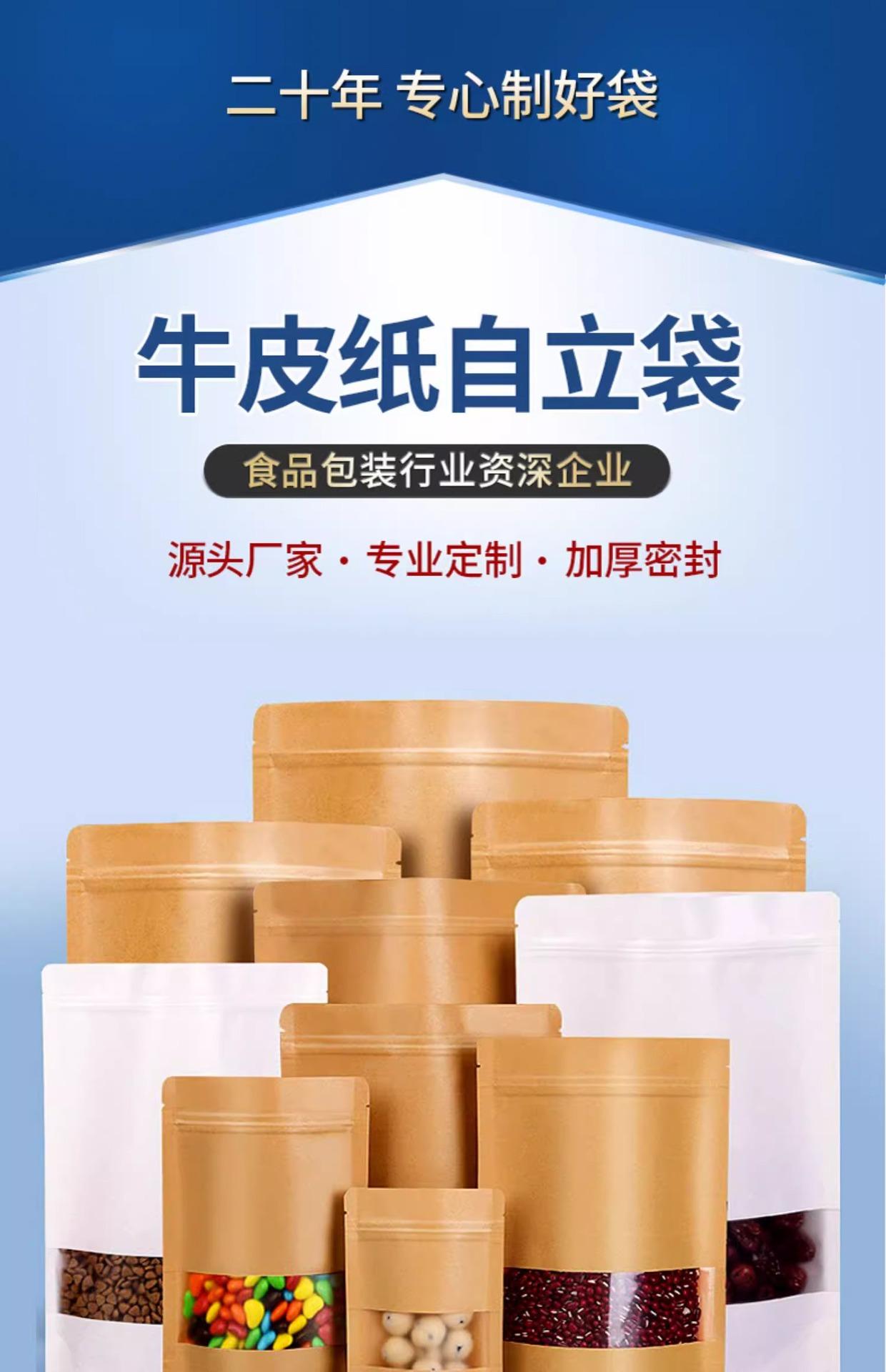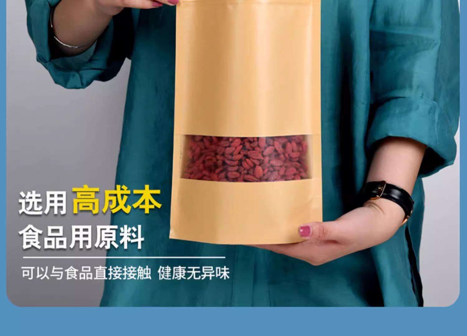Bolsa de papel kraft, bolsa autosellable, bolsa para envasar té, semillas de melón, snacks, ventana, sellado de frutos secos, bolsa de alimentos sellada