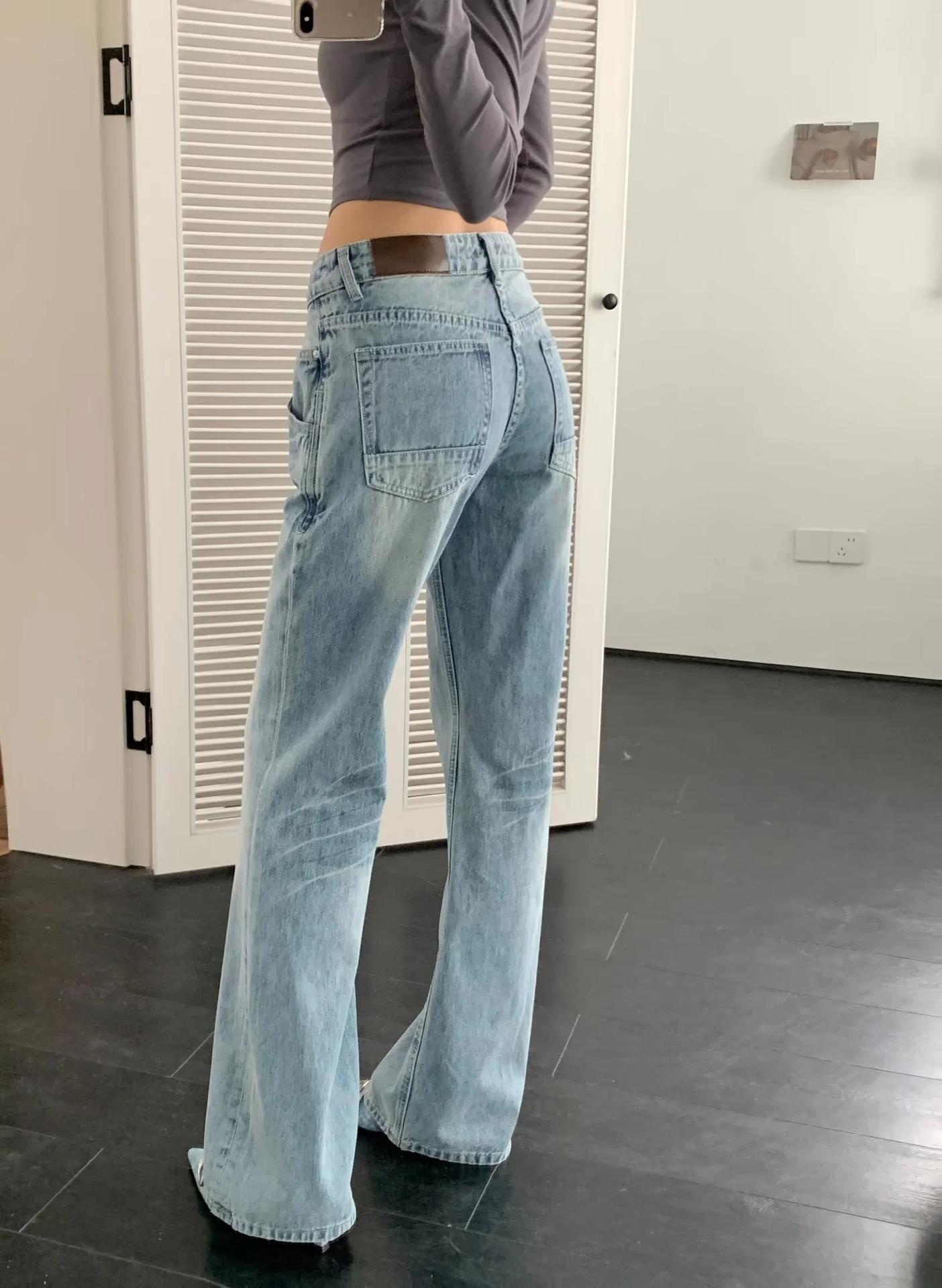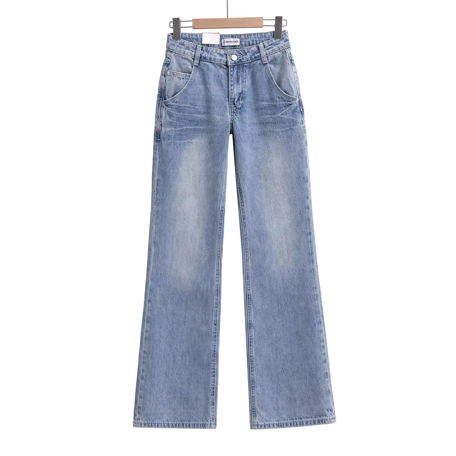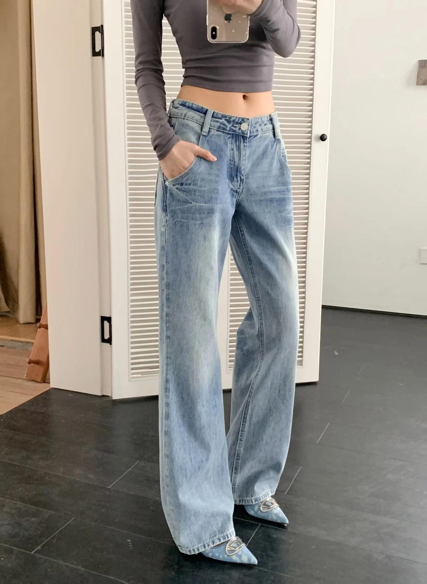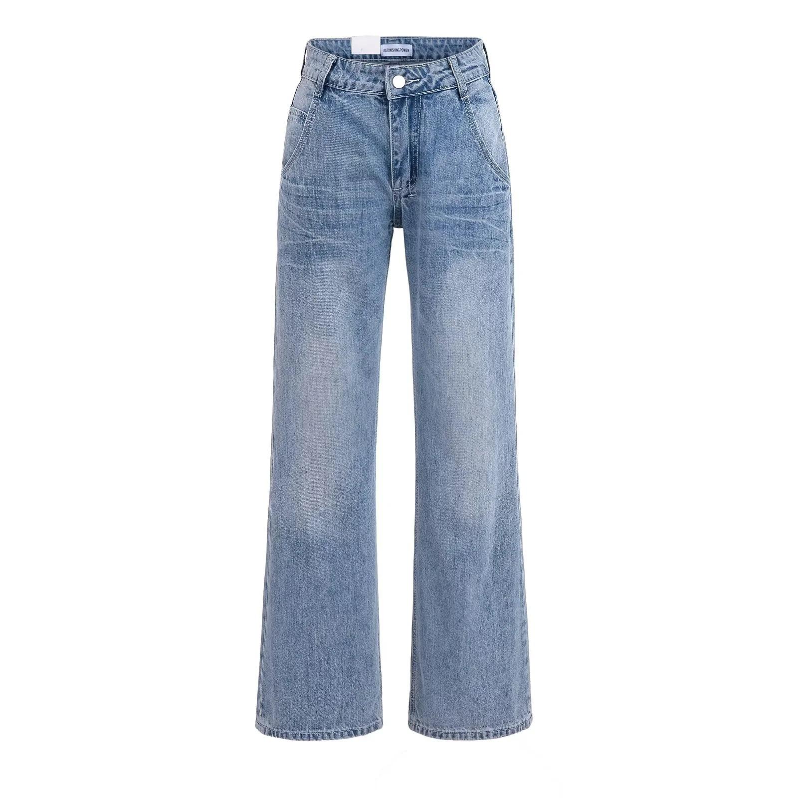 Pantalones vaqueros rectos blancos lavados vintage americanos de primavera, nuevos pantalones adelgazantes de cintura alta, moda y tendencia.