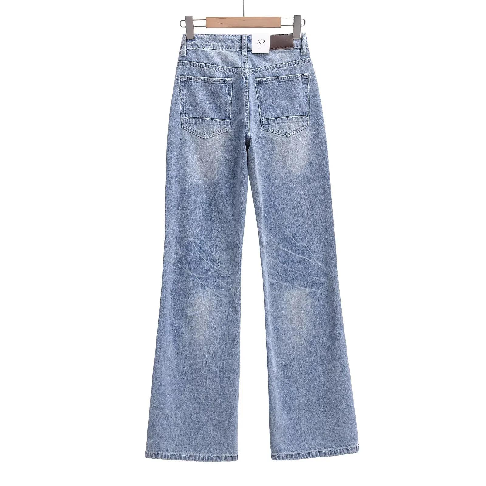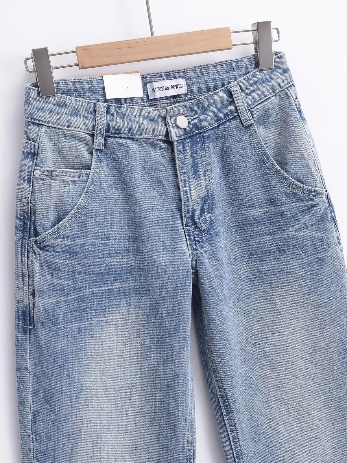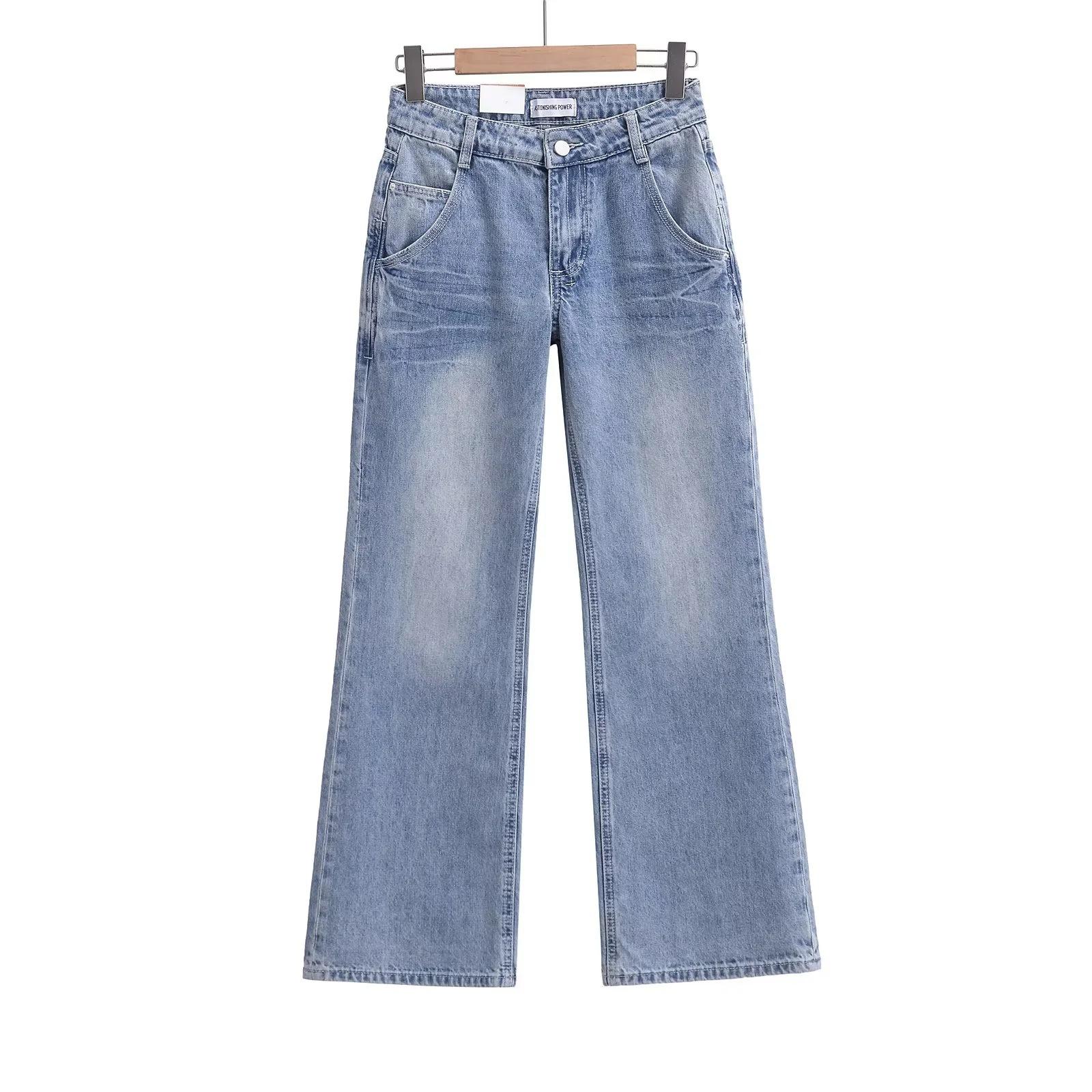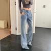 Pantalones vaqueros rectos blancos lavados vintage americanos de primavera, nuevos pantalones adelgazantes de cintura alta, moda y tendencia.
