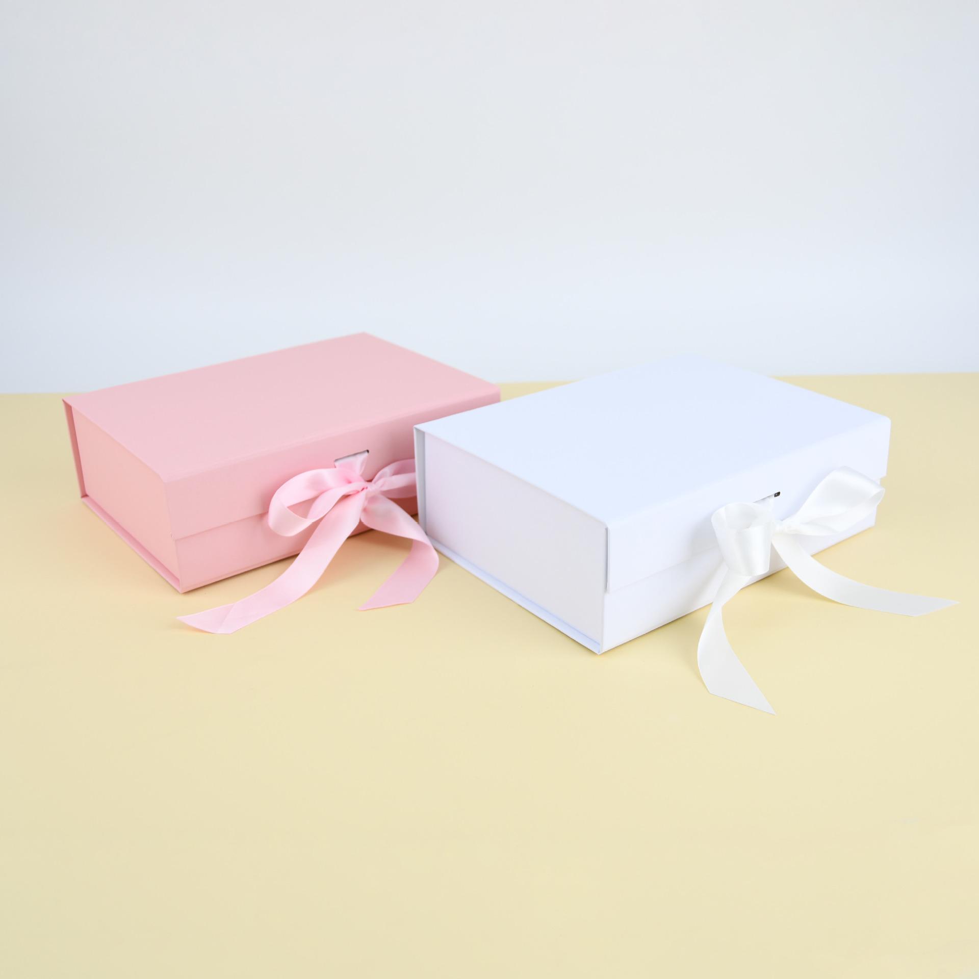 Caja de regalo de embalaje de lazo de tres colores en stock, caja plegable con imán abatible, caja de regalo complementaria para跨境