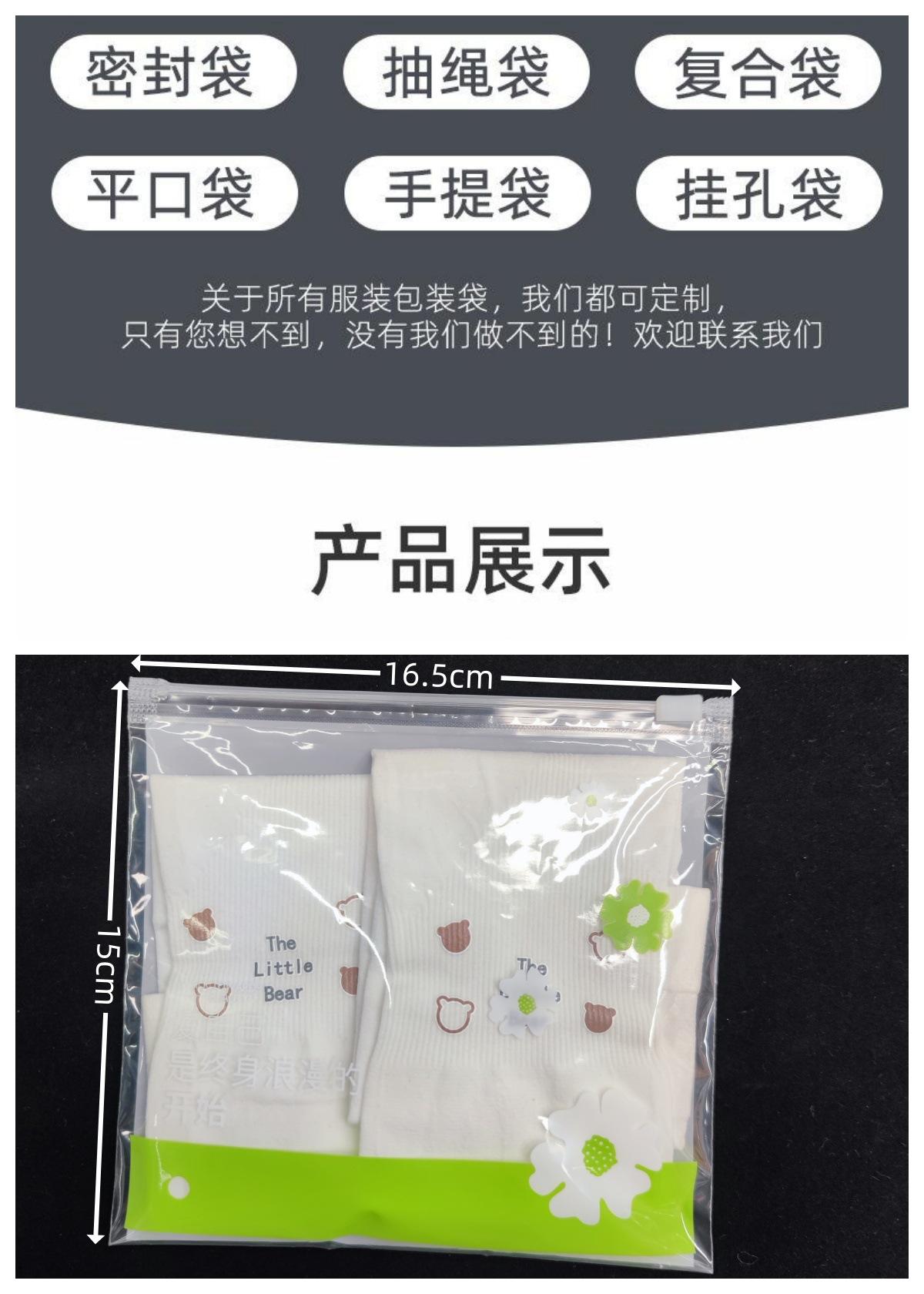 Bolsa de almacenamiento de ropa interior creativa de moda, bolsa con borde para ropa, bolsa ziplock de PE de doble cara, suministro directo de fábrica
