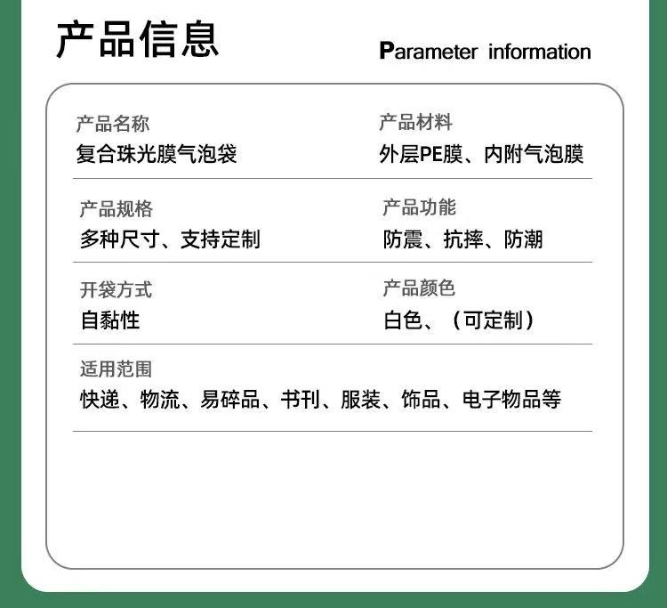 Bolsa de burbujas de película de perla compuesta blanca engrosada para envío exprés impermeable a prueba de golpes embalaje de espuma venta al por mayor