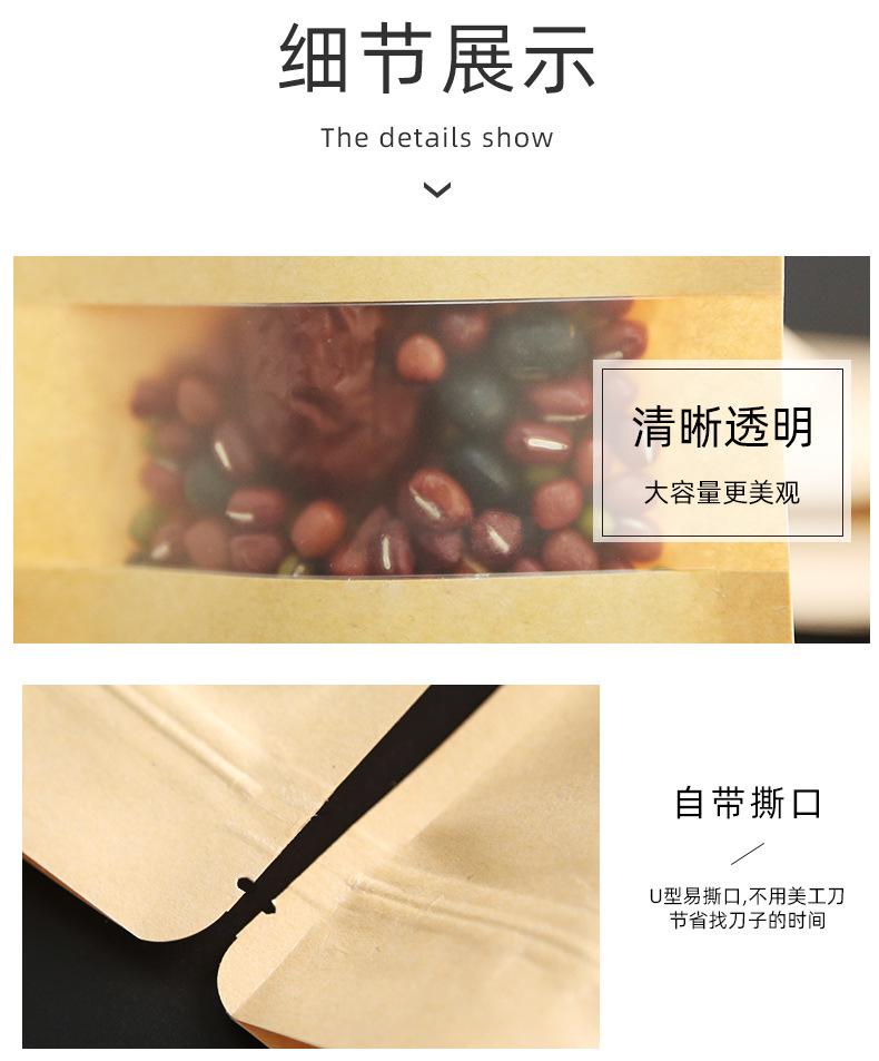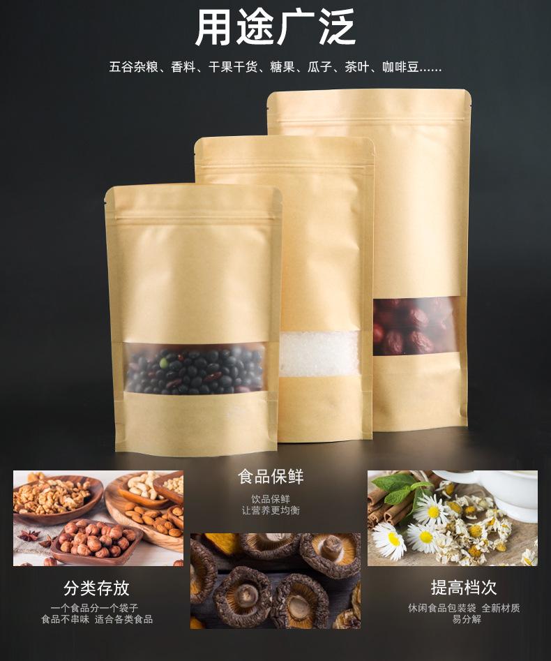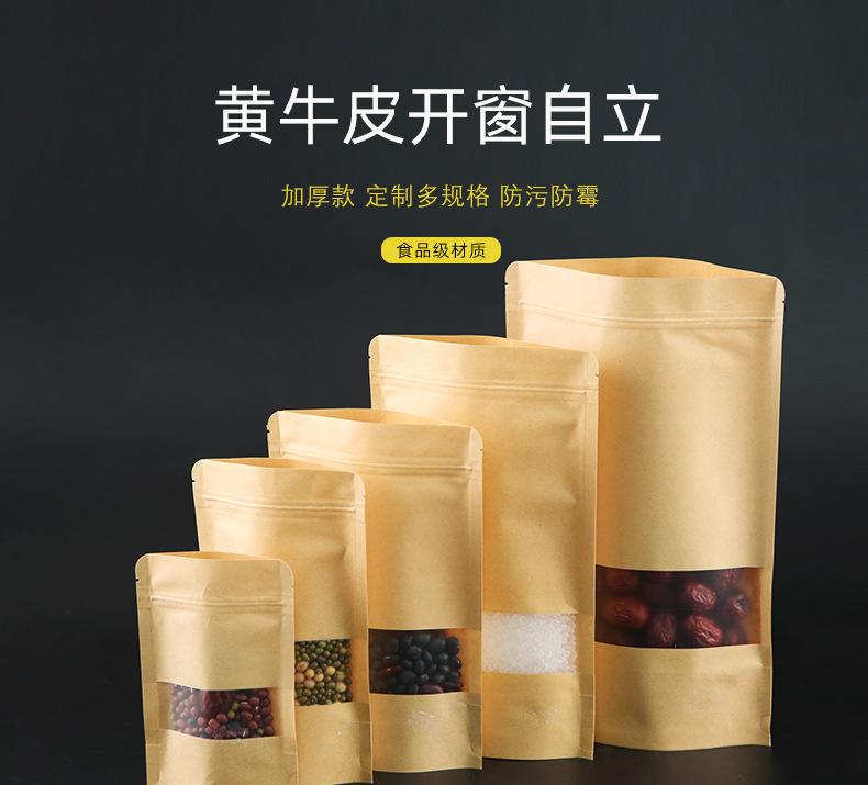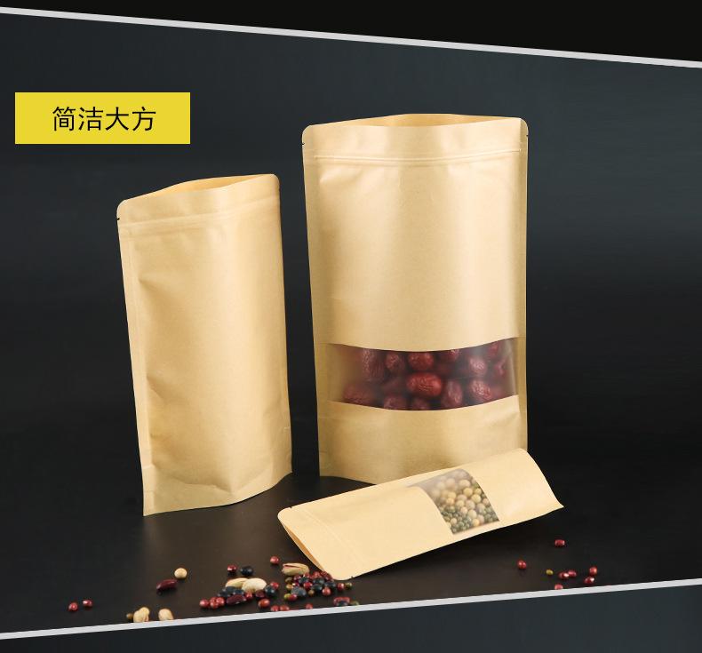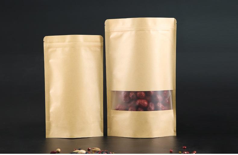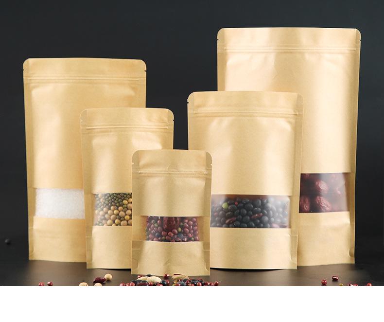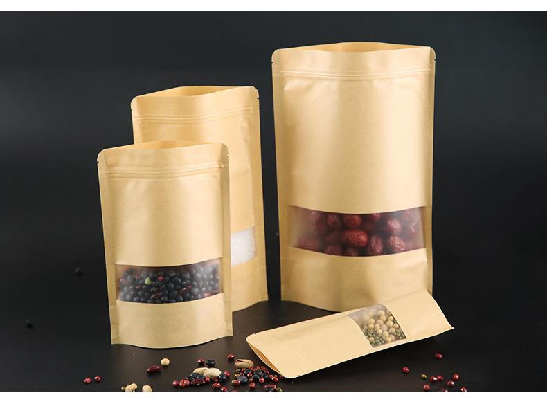 Bolsa de papel kraft con ventana, bolsa para envasar té y nueces, bolsa autoportante y autosellante de papel kraft, bolsa sellada para frutos secos, bolsa para alimentos