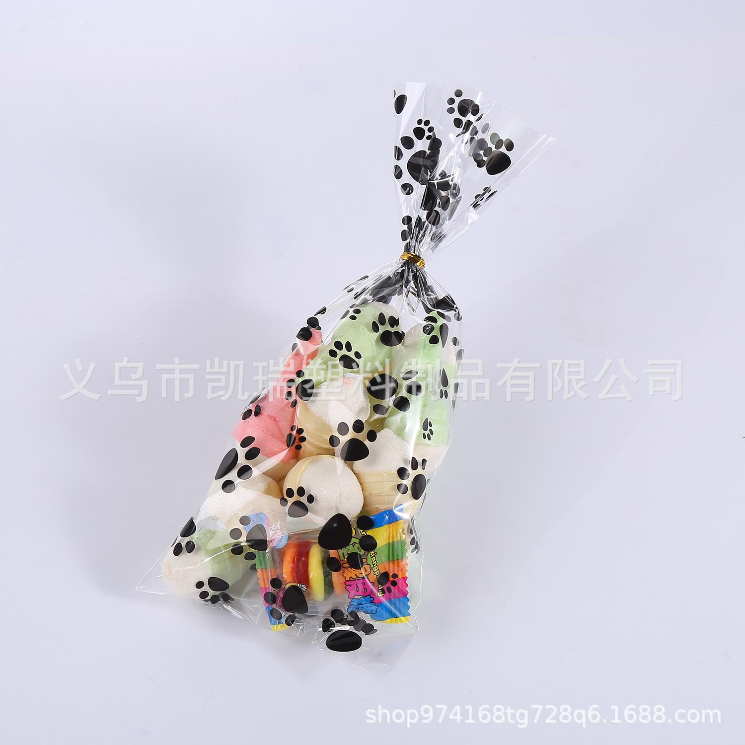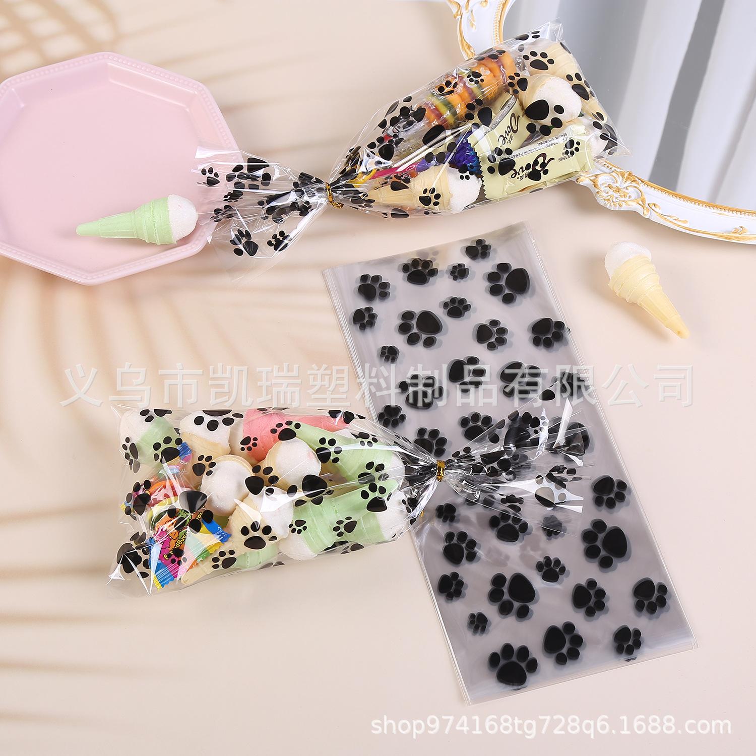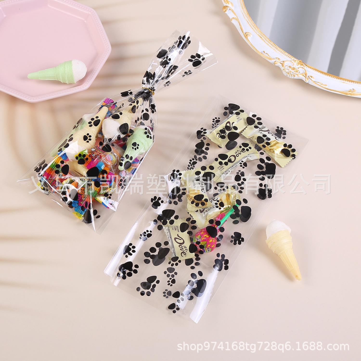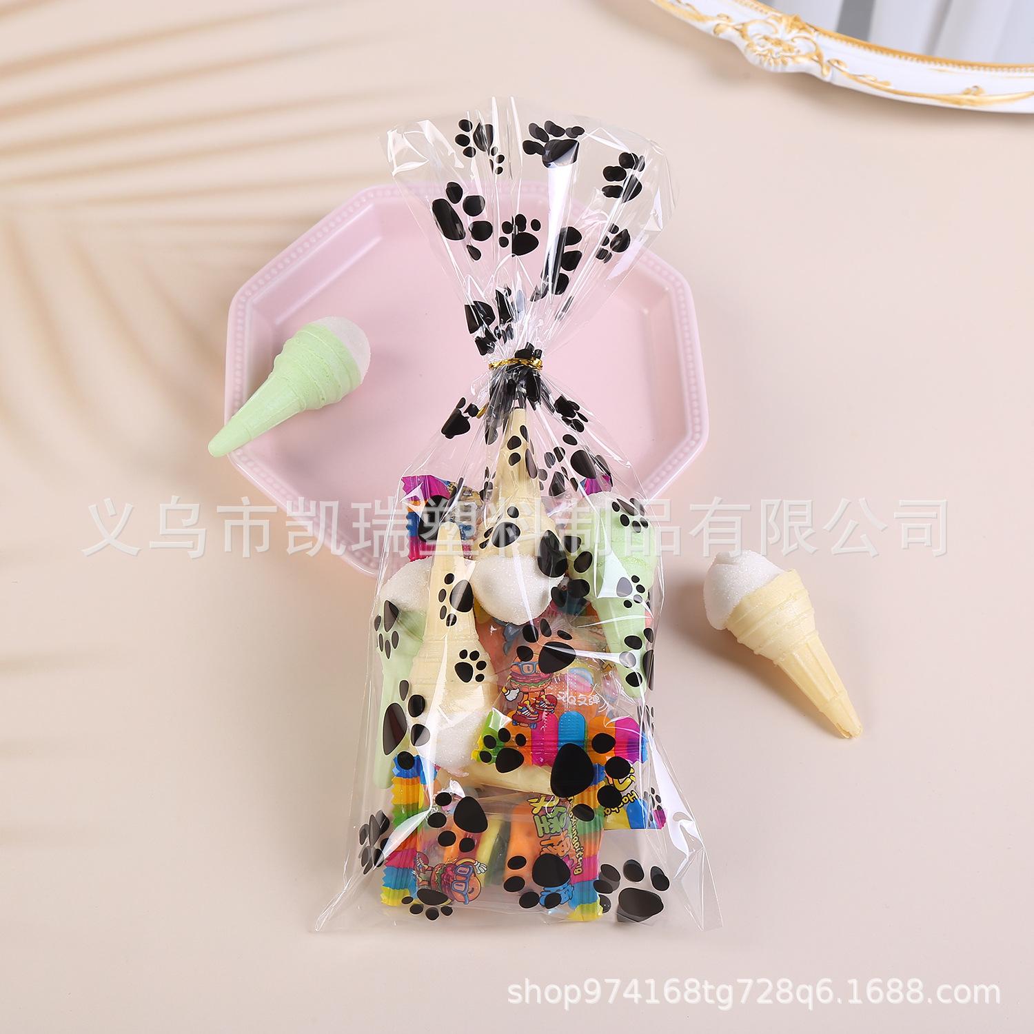 Bolsa de plástico transparente con estampado de garra de perro para hornear, ideal para atar bocadillos, artículos pequeños y dividir.