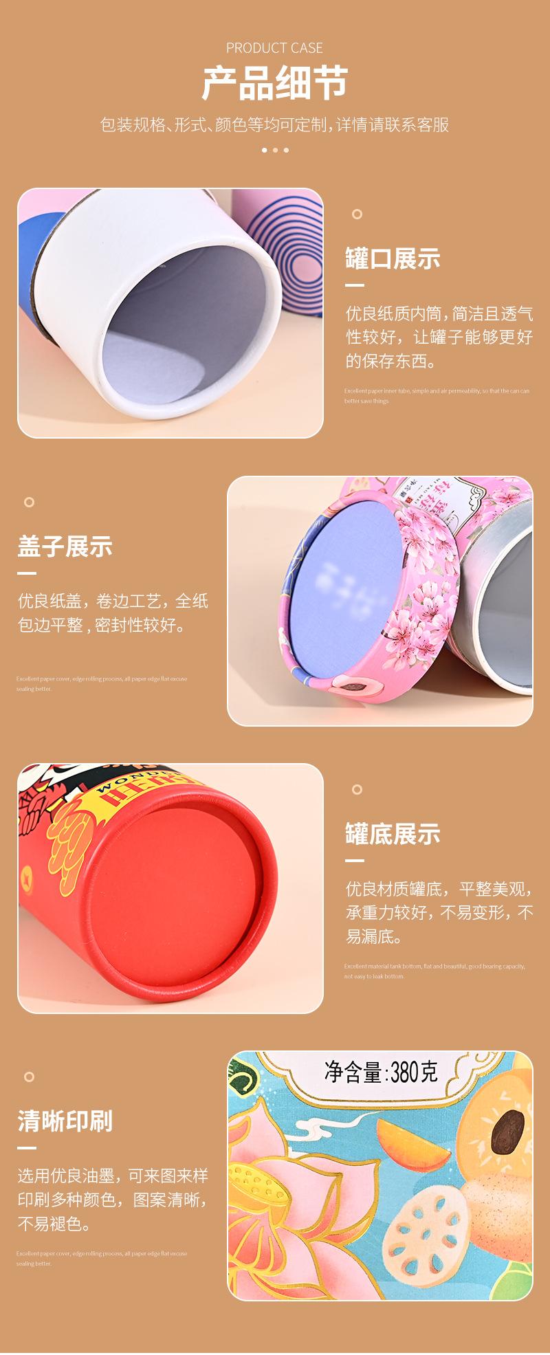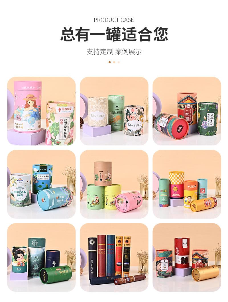 Latas de papel para alimentos de ocio se pueden imprimir con logotipo cilindro té comida embalaje de regalo impresión a color ropa joyería tubo de papel al por mayor